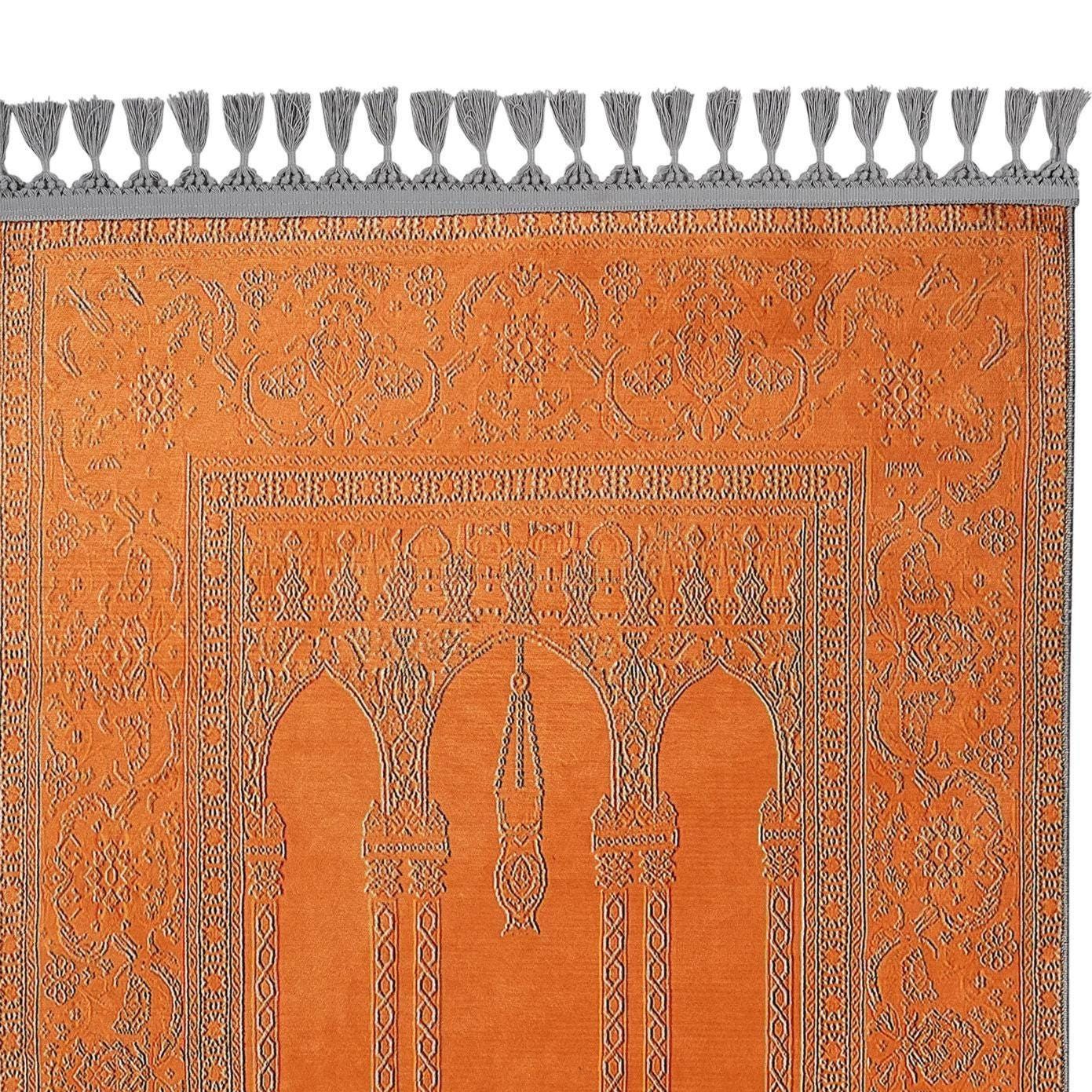 Elevate your daily prayers with this elegant solid orange Turkish prayer rug, designed with simplicity, comfort, and modern living in mind. Its minimalist style blends beautifully into any space — perfect for men and women seeking a clean, refined design with spiritual meaning.