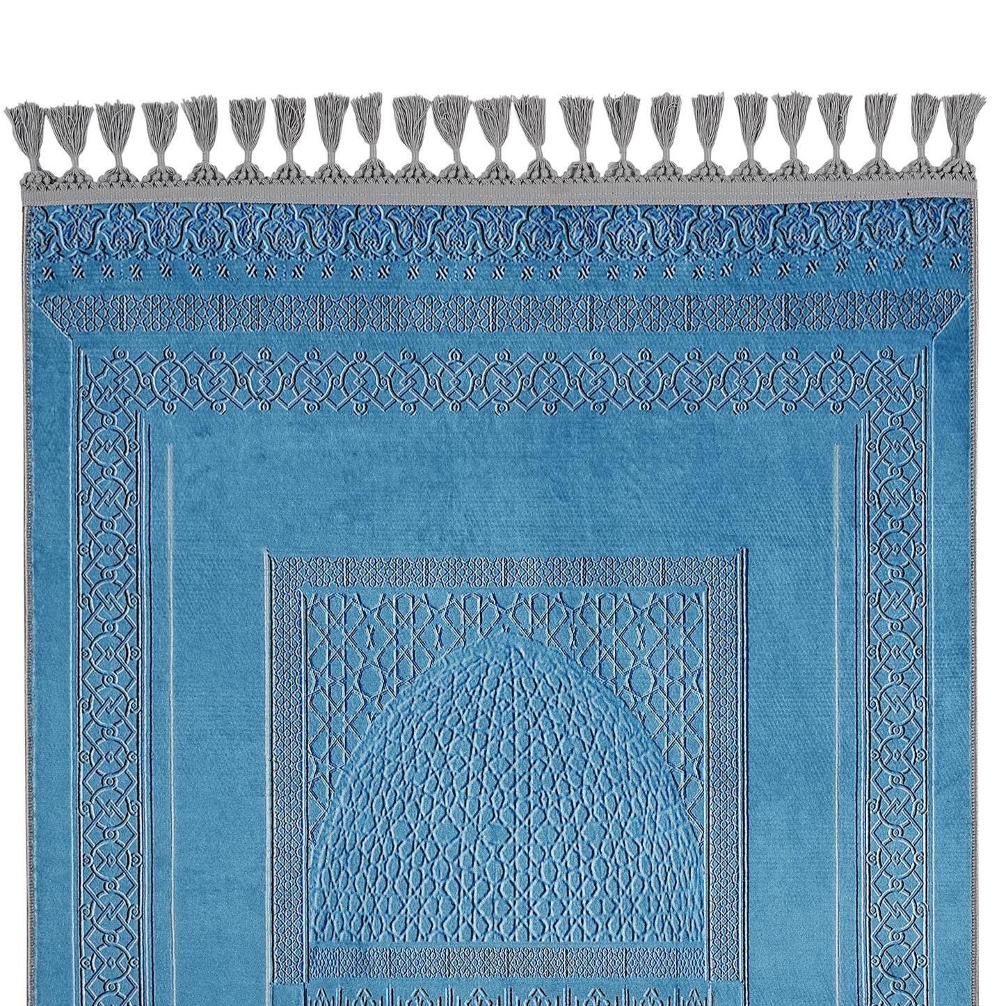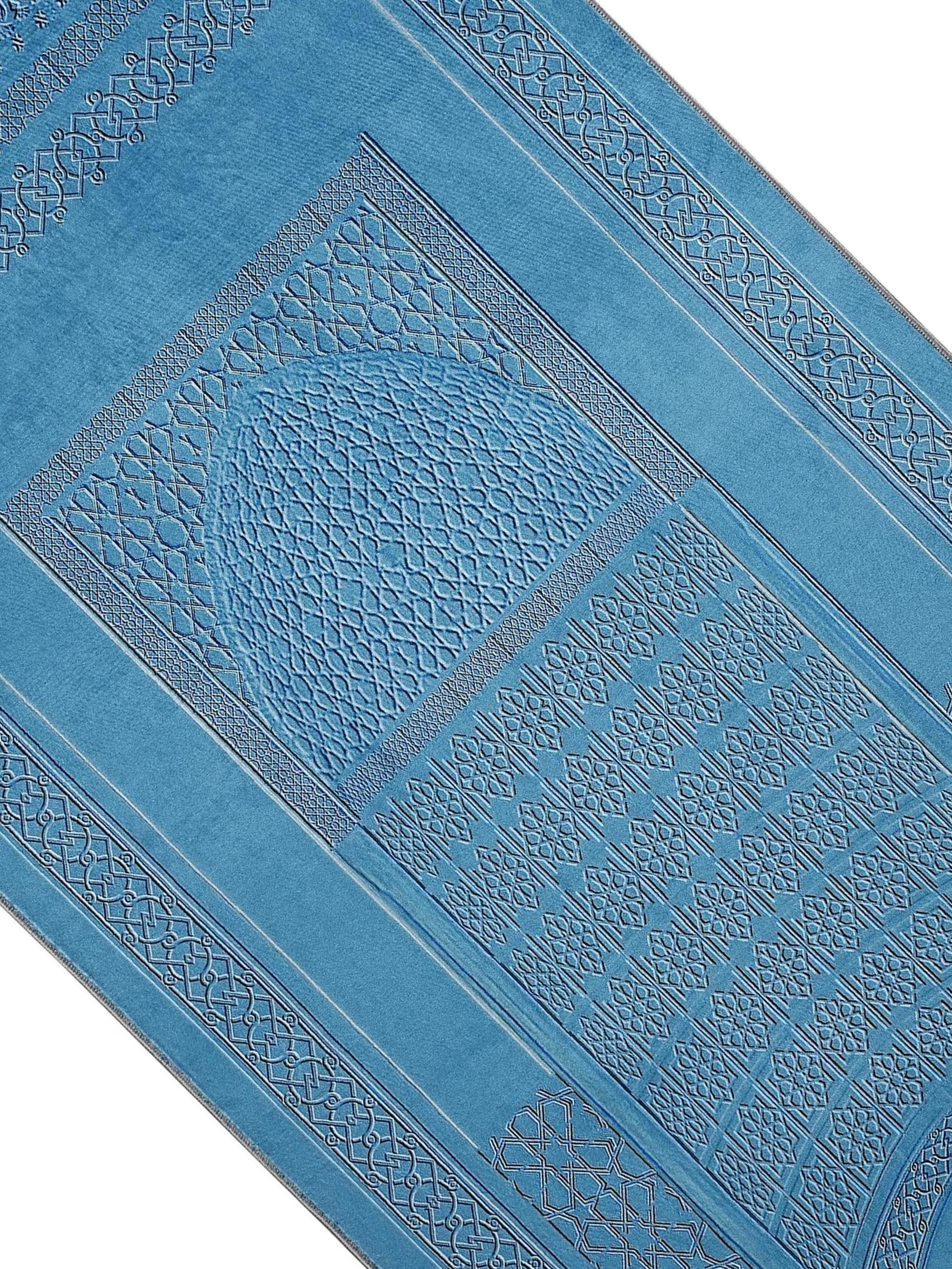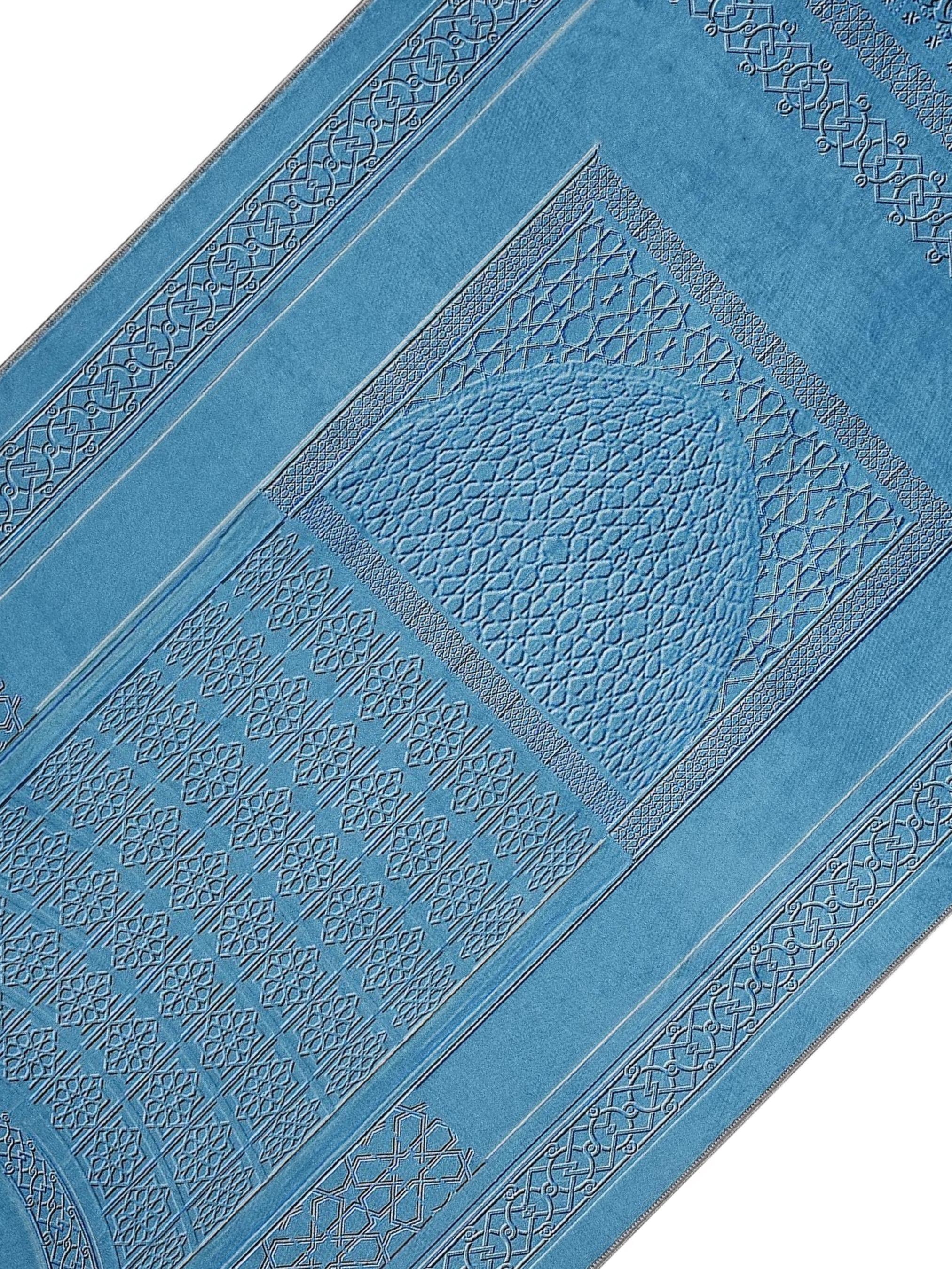 This premium Islamic prayer rug features a refined Turkish blue design with elegant detailing that blends tradition and simplicity. Crafted for comfort and focus during prayer, the soft surface supports the knees and adds serenity to your spiritual space. Its clean pattern and calming tones also make it suitable for modern home décor.