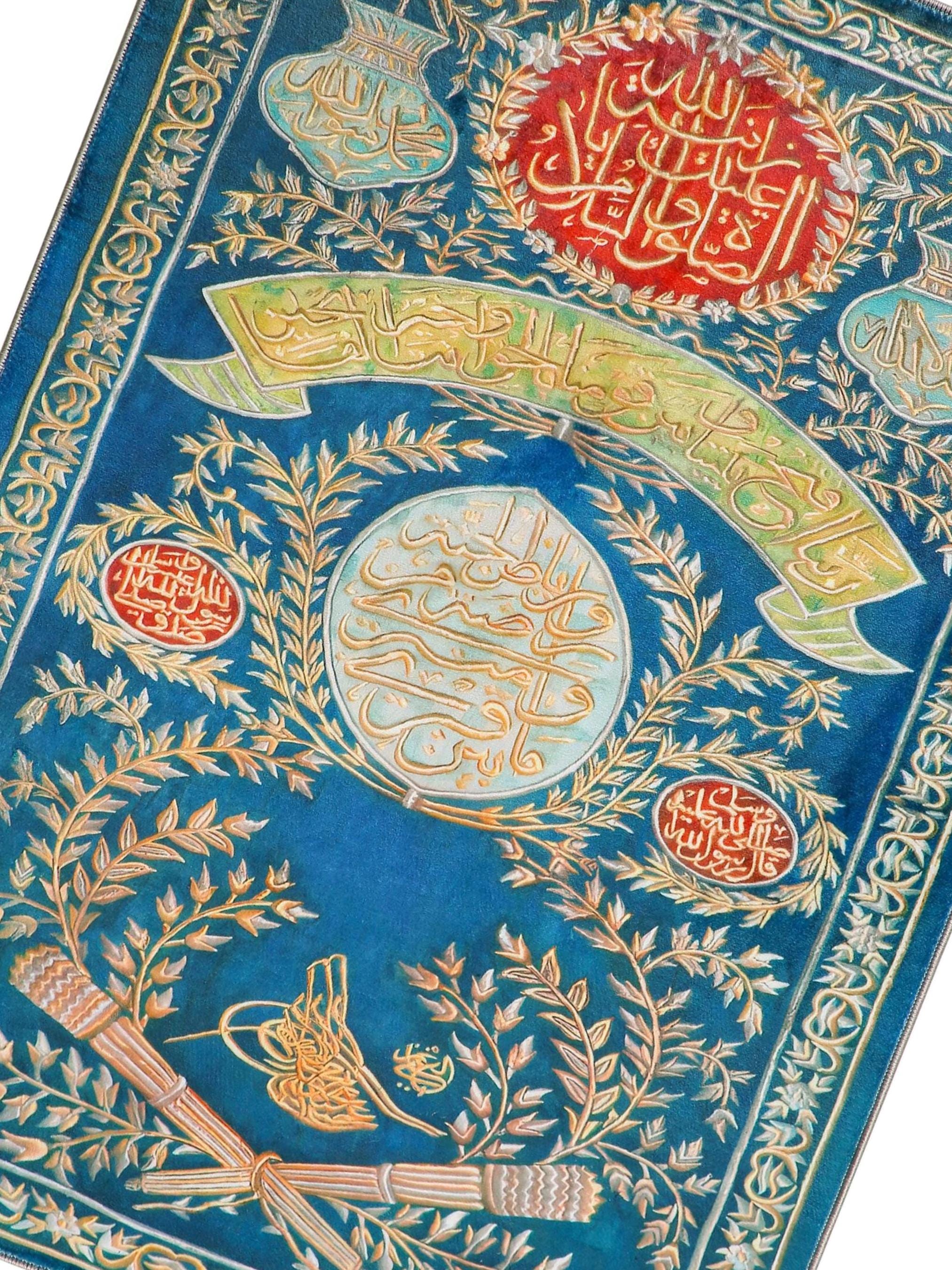 Bring spiritual elegance into your home with this Islamic wall rug featuring Arabic calligraphy in an Ottoman-inspired design. Printed on high-quality non-woven fabric, this piece blends tradition and modern artistry—perfect for creating a warm, sacred atmosphere in living rooms, prayer spaces, or offices