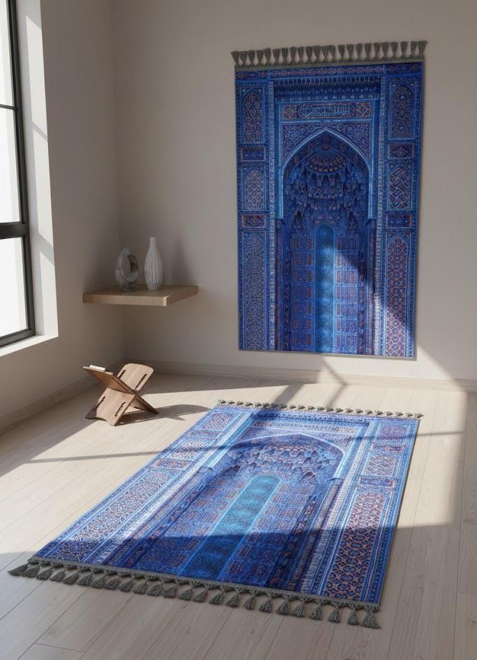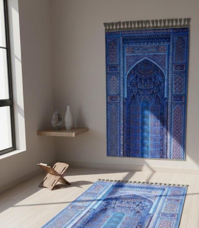 ✨ Experience ultimate comfort with our Blue Soft Islamic Prayer Rug. This premium Bamboo Muslim Janamaz is designed with a focus on gentle softness, providing a peaceful and cushioned space for your daily prayers.