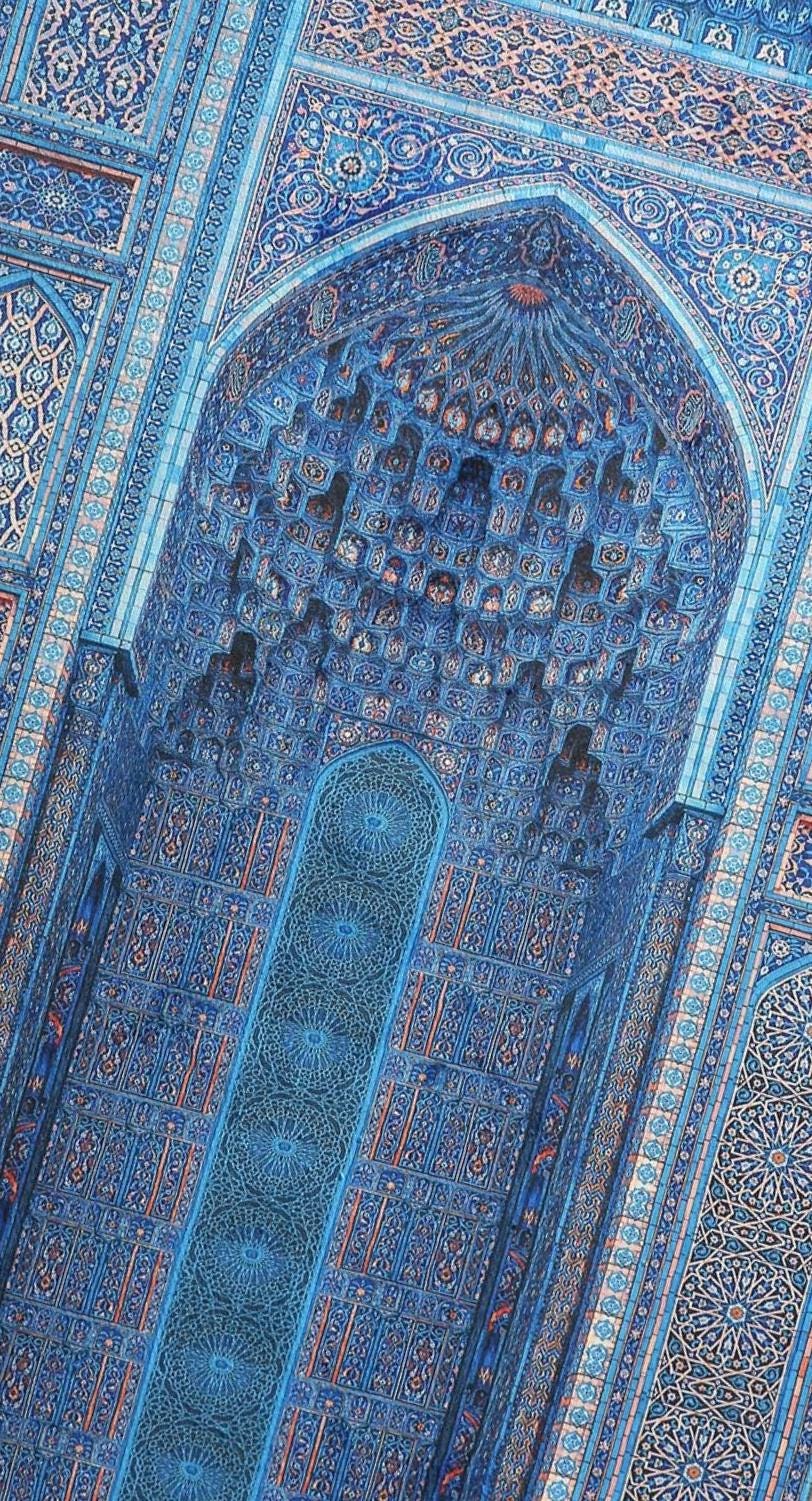• Elegant blue mihrab design inspired by Islamic architecture and tradition