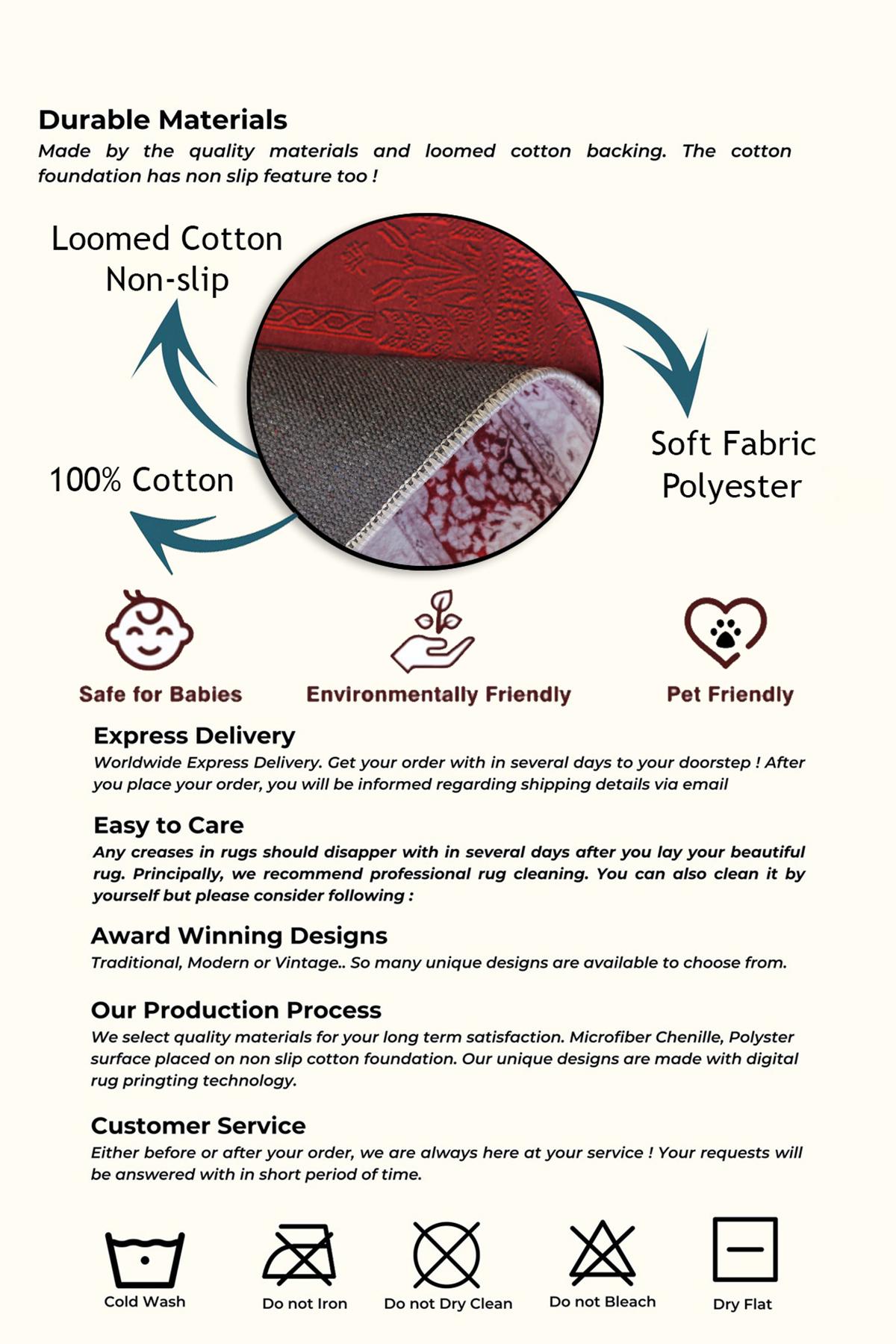 ✅ Backing: Non‑slip woven cotton – Secure on all flooring types