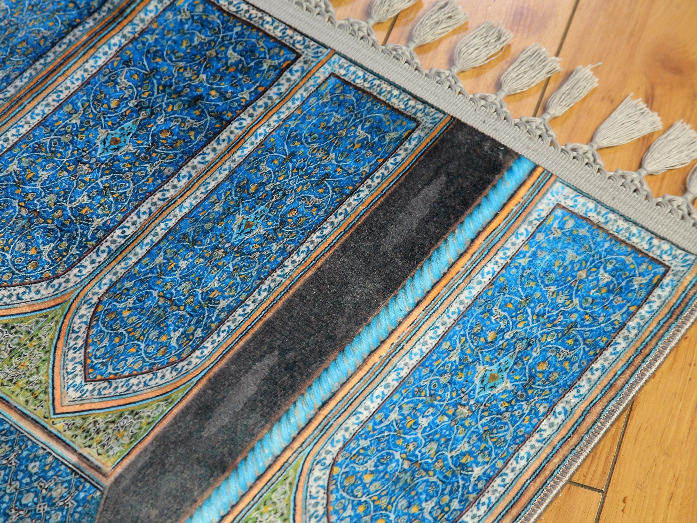 🎨 Design: Fade-resistant blue & green Ottoman arch mihrab pattern – Historic & elegant