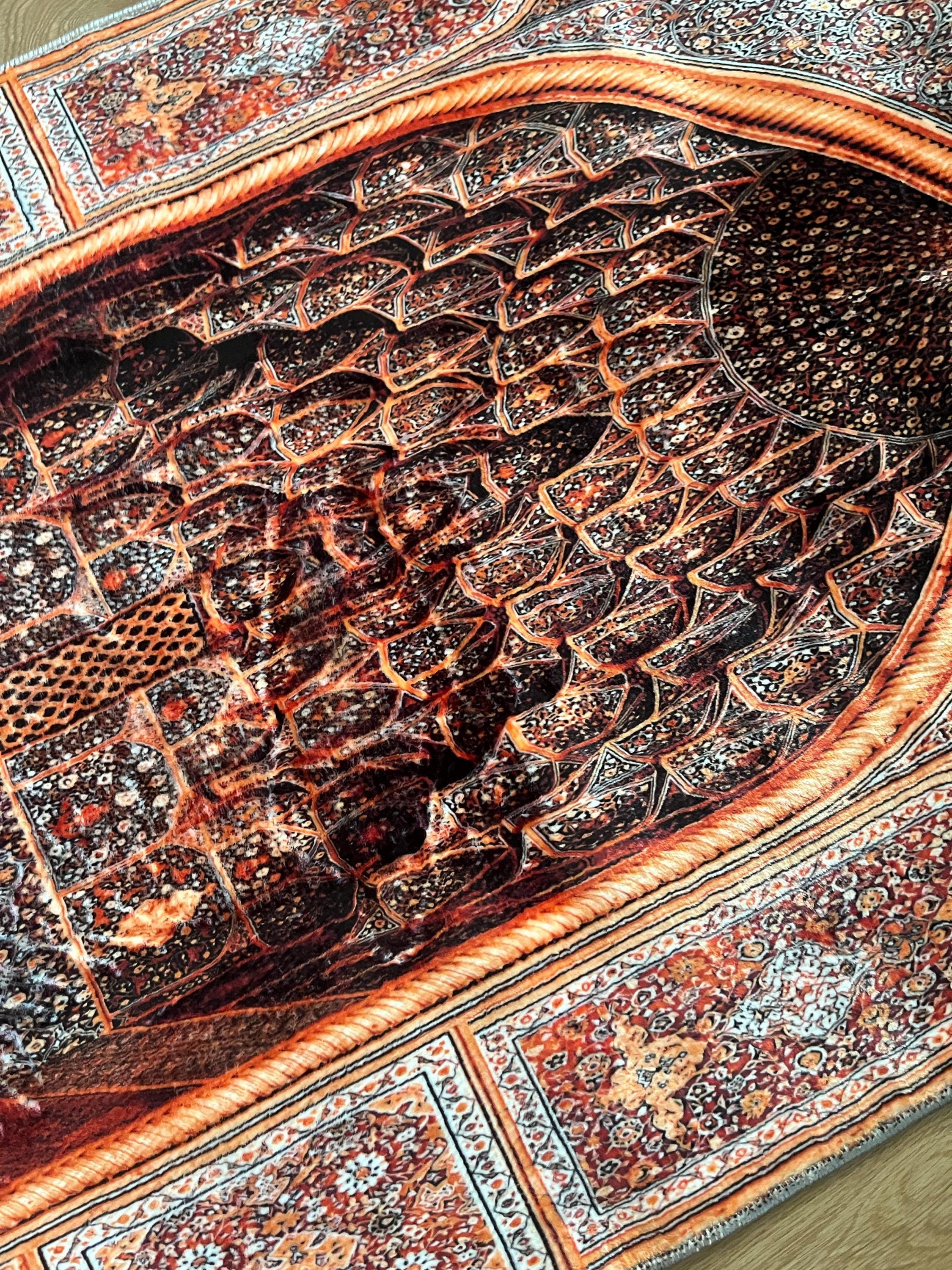 Muslim Prayer Rug ✨ Orange Ottoman Mihrab Prayer Mat | Premium Silky Soft Surface
