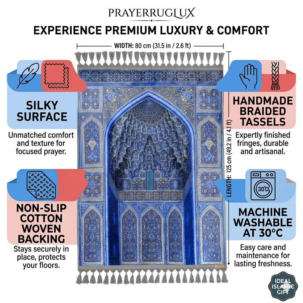 Our standard adult size is 2.6 × 4.1 ft (80 × 125 cm), ideal for daily prayers.