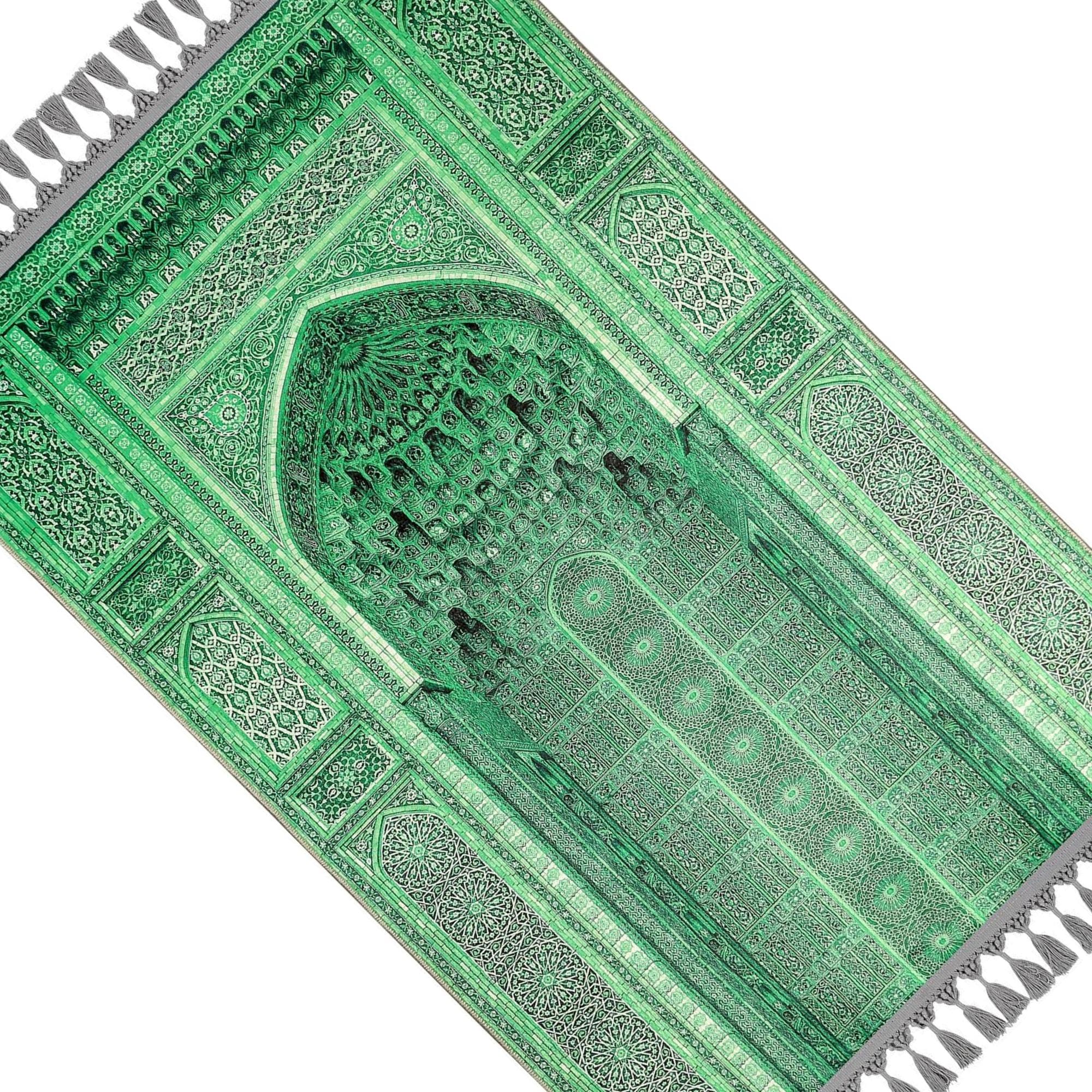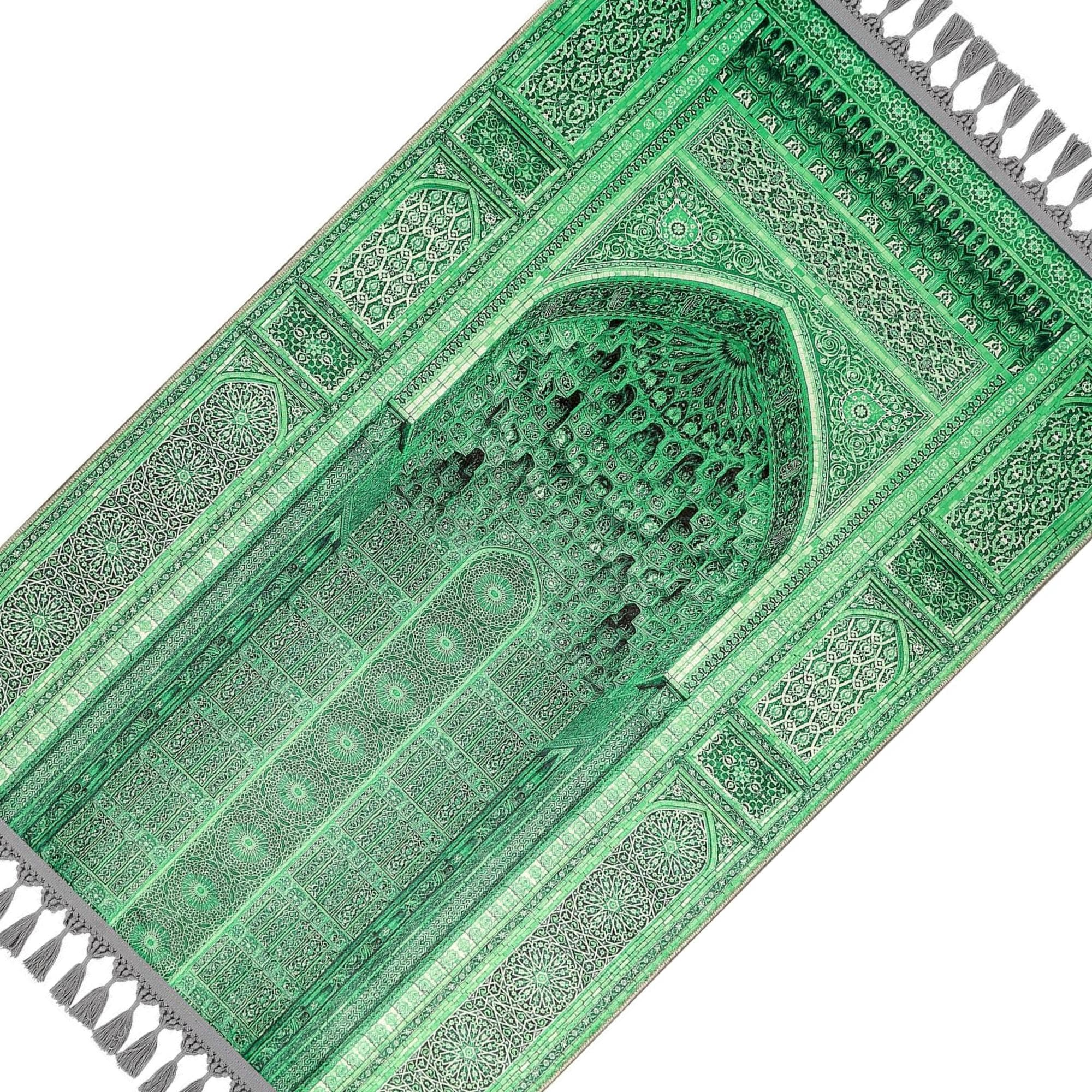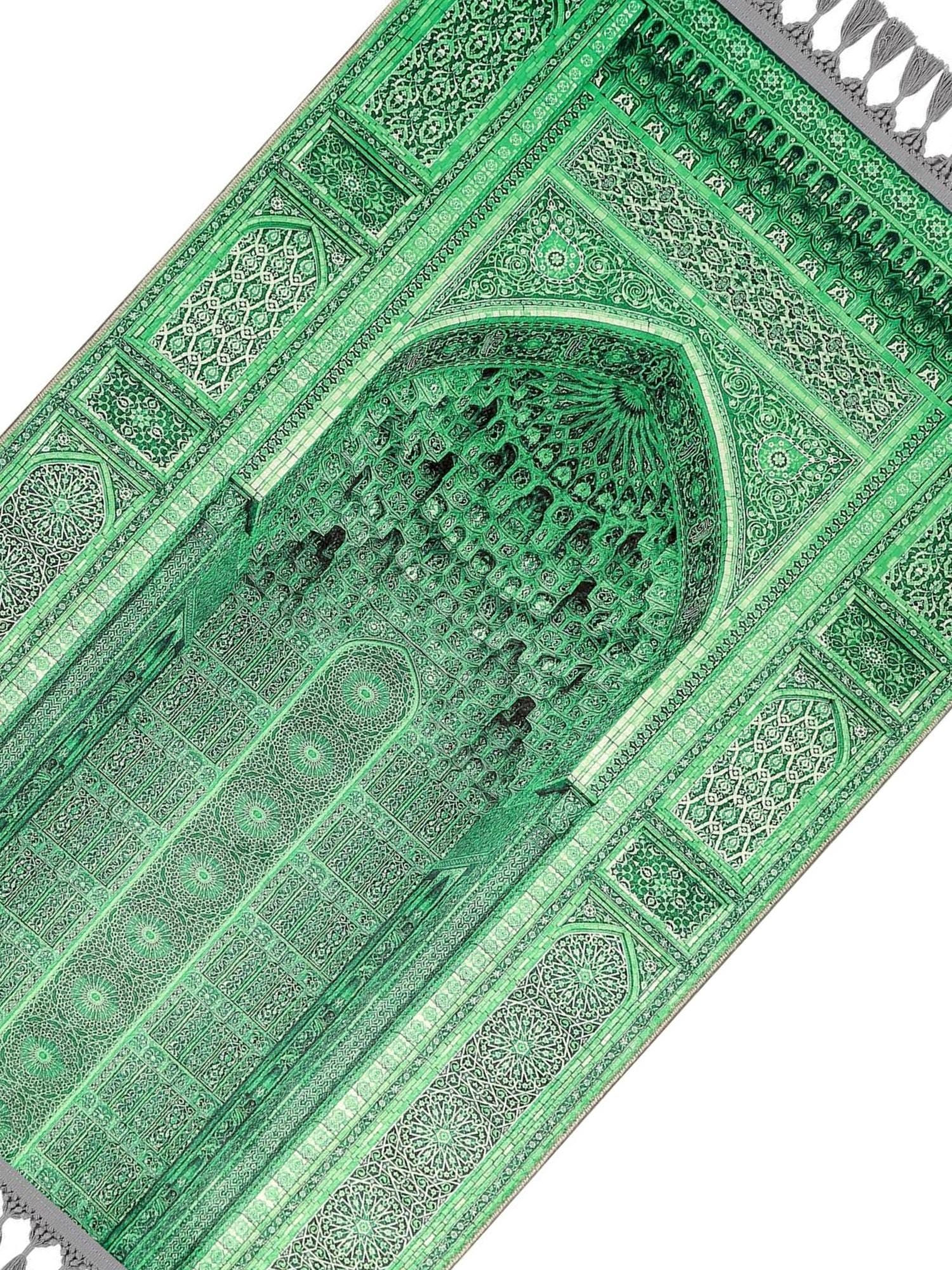 This Velvet Padded Islamic Prayer Mat features a traditional Green Mosque Mihrab with a Qibla direction motif, designed to bring elegance and spiritual harmony to your prayer space. Inspired by Ottoman mosque geometry, it blends sacred art with modern comfort.