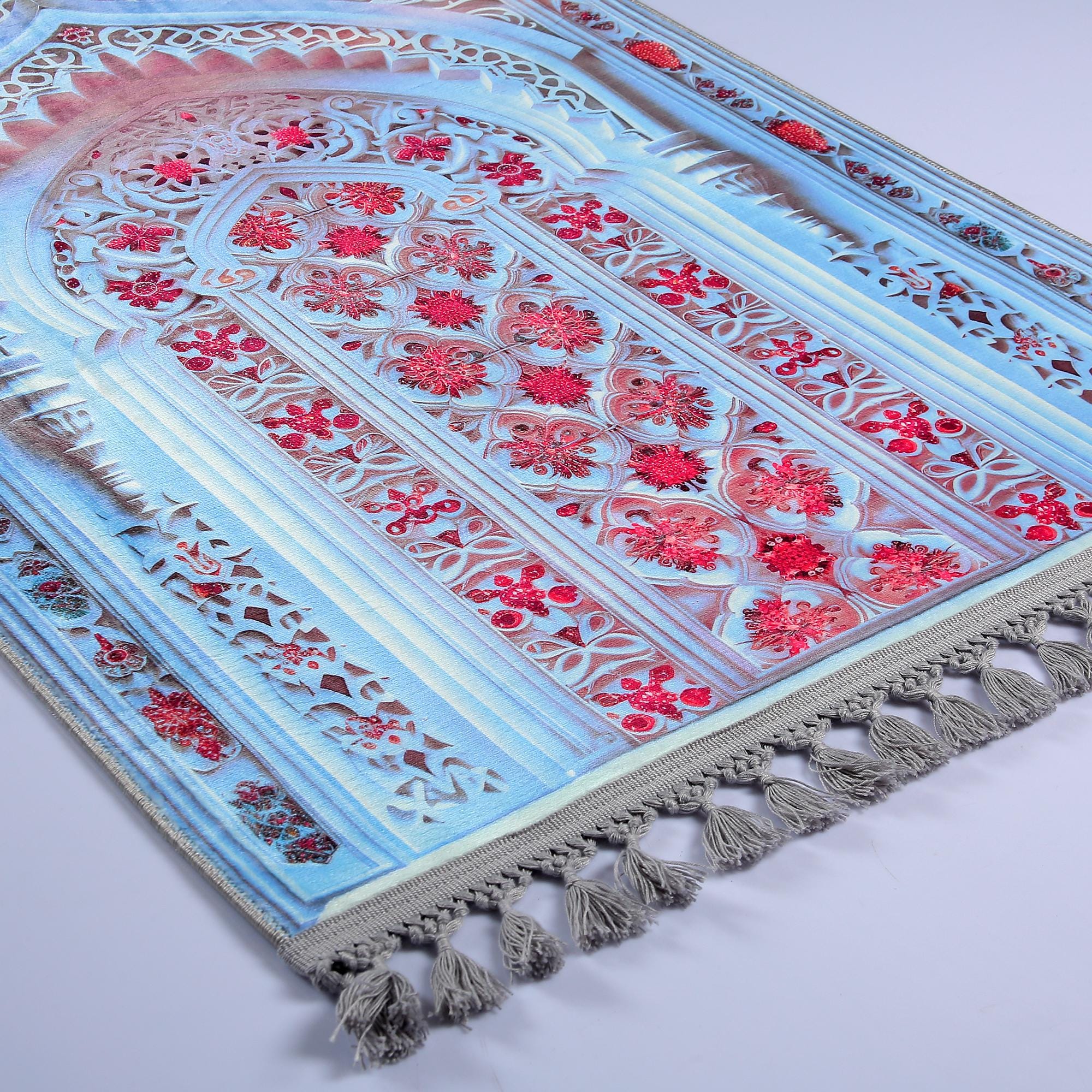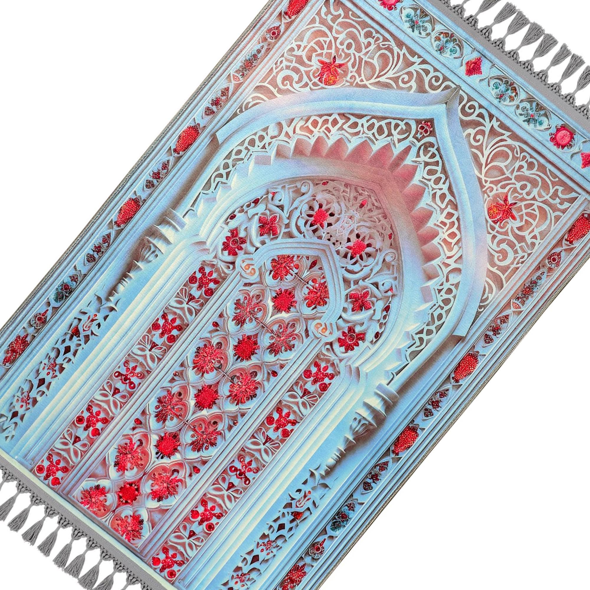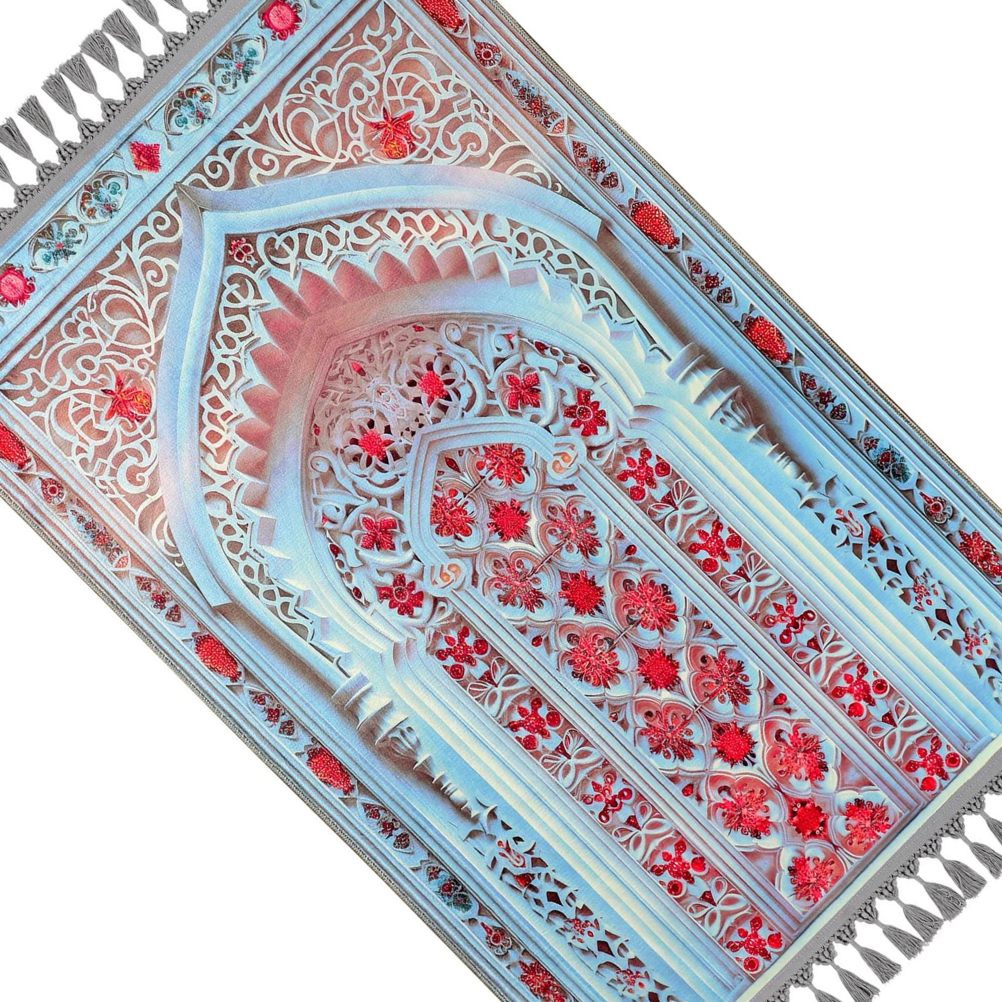 ✨ Features an intricate blue and red mihrab pattern inspired by historic Ottoman architecture, symbolizing spiritual serenity and heritage.