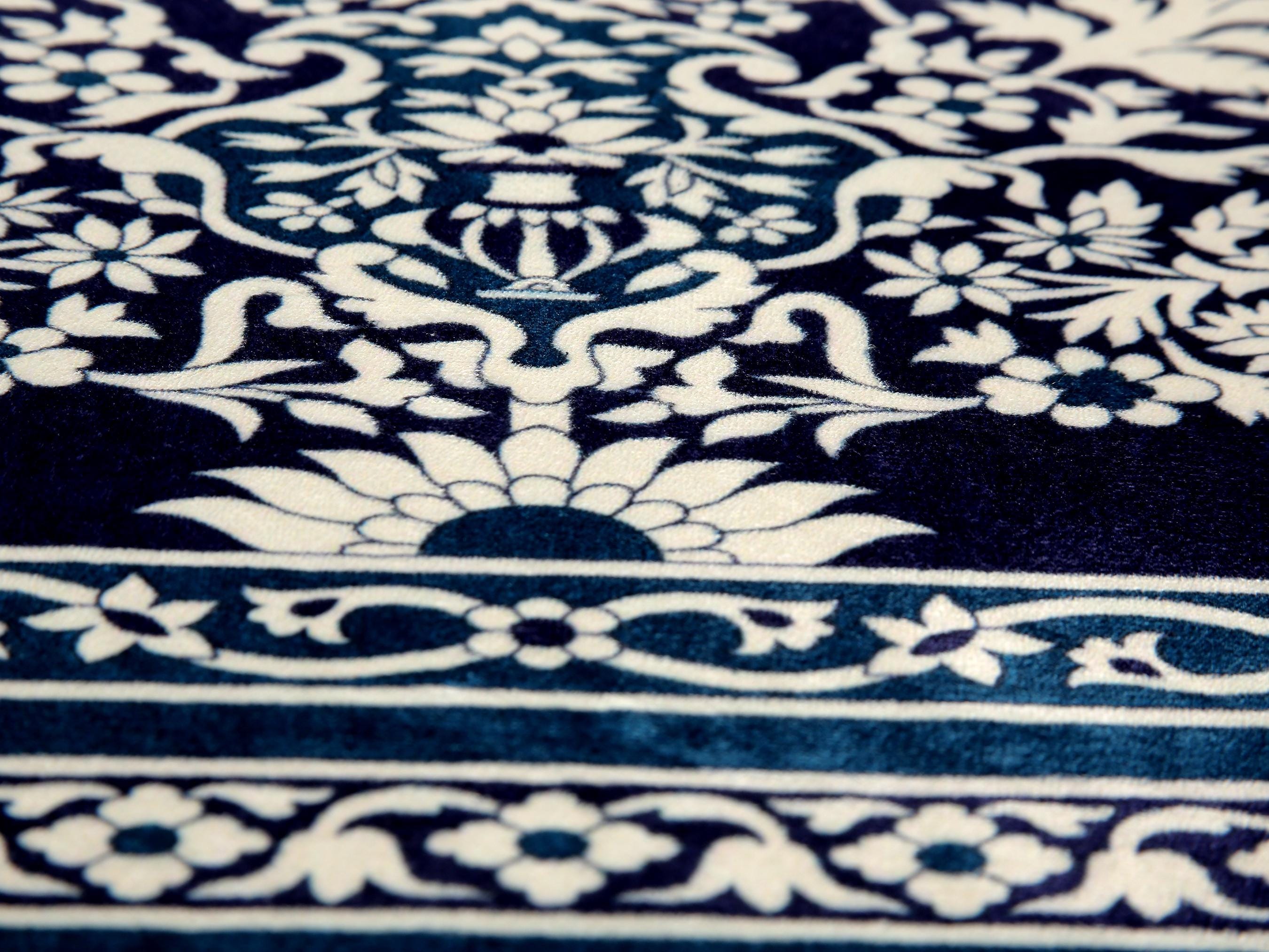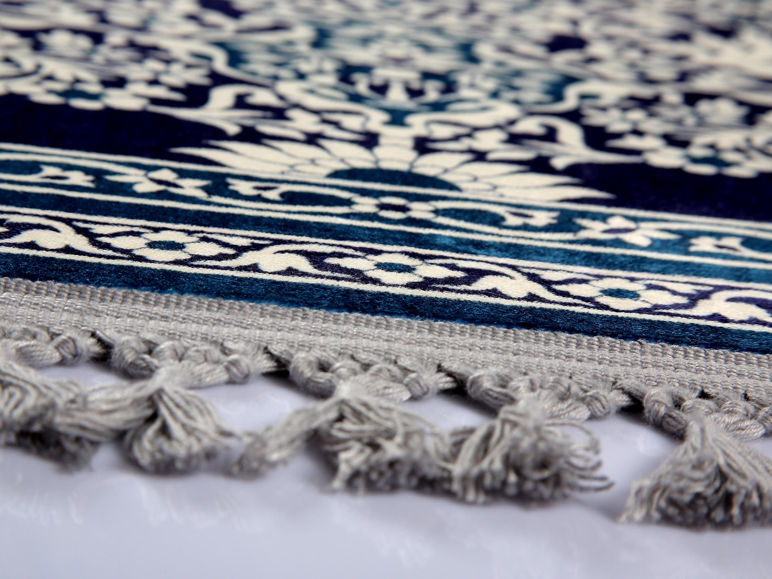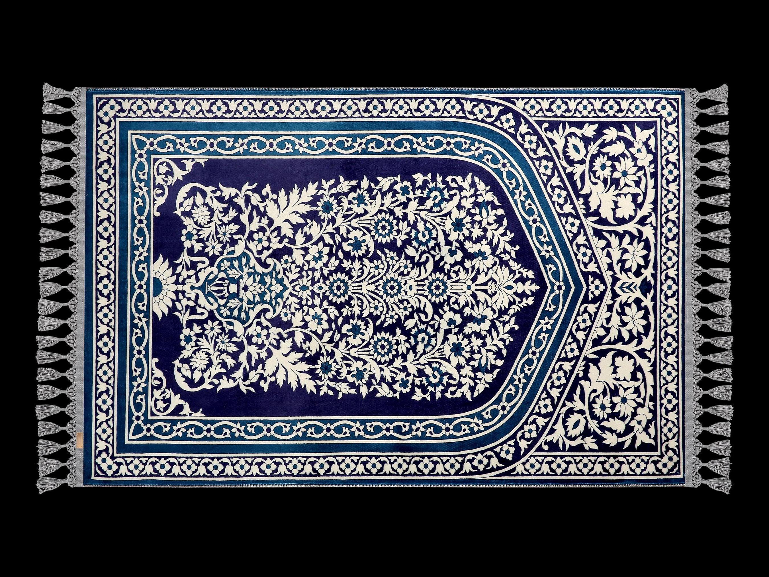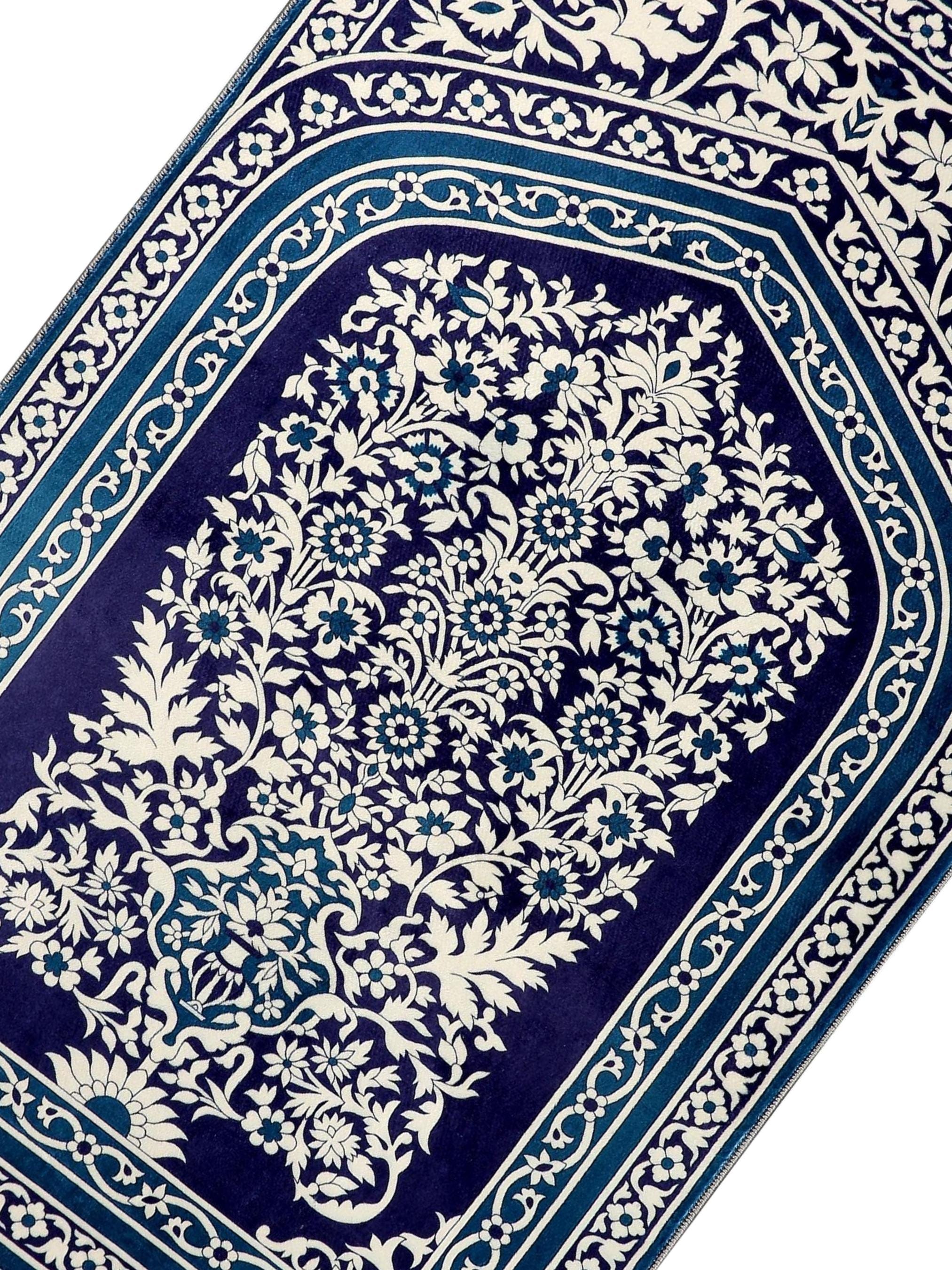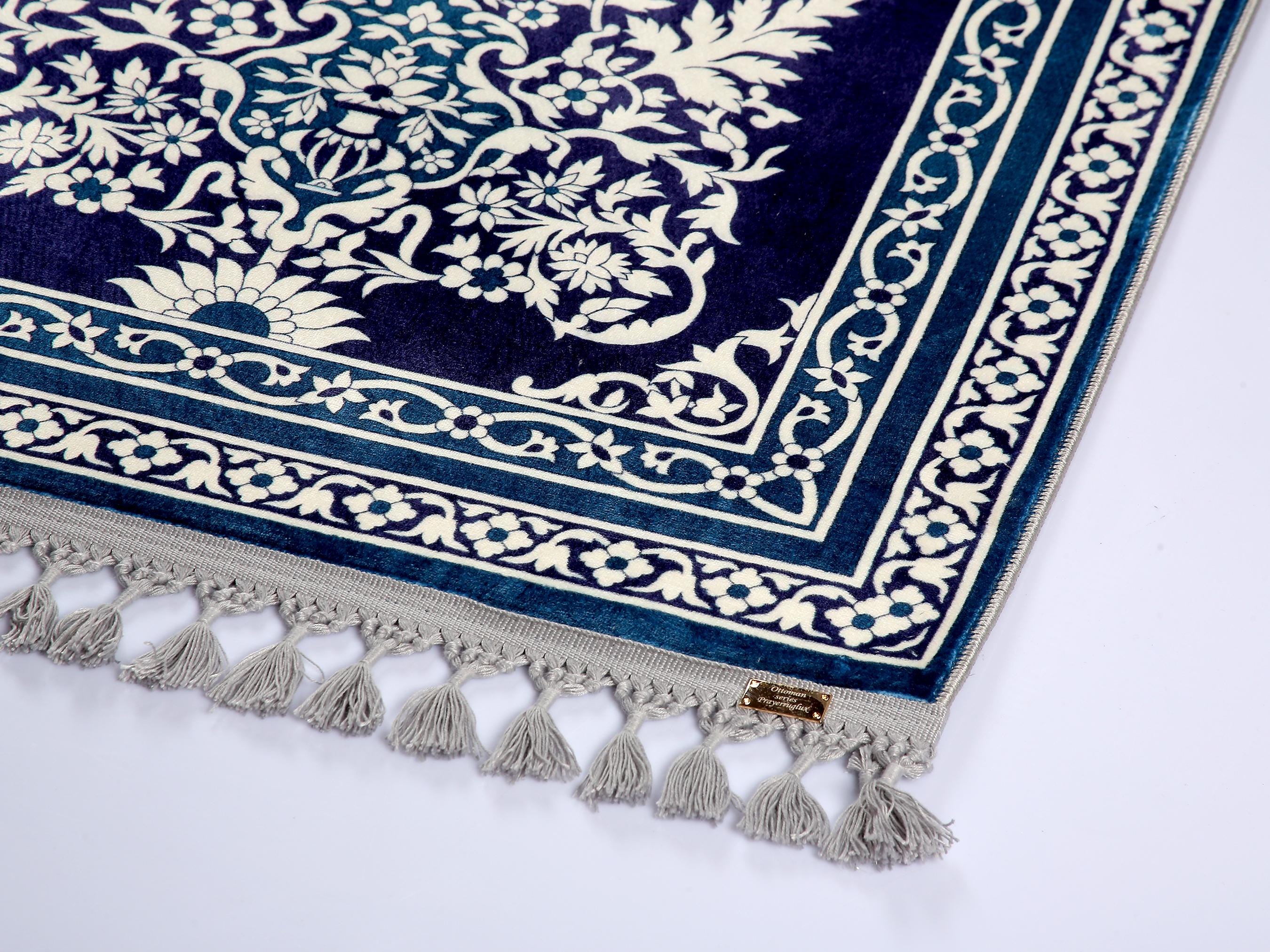 🤲 Luxury Prayer Rug – Elegant Turkish Blue Floral Carpet for Muslim Home