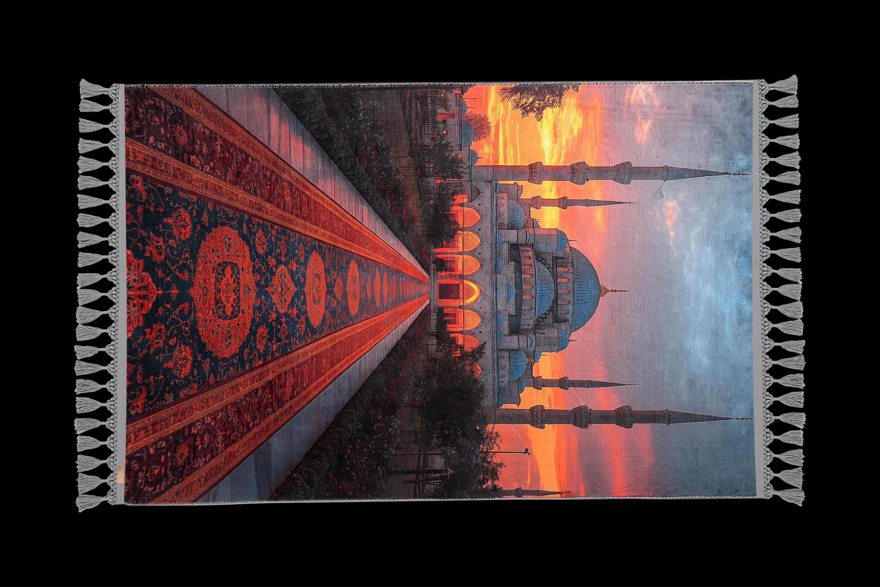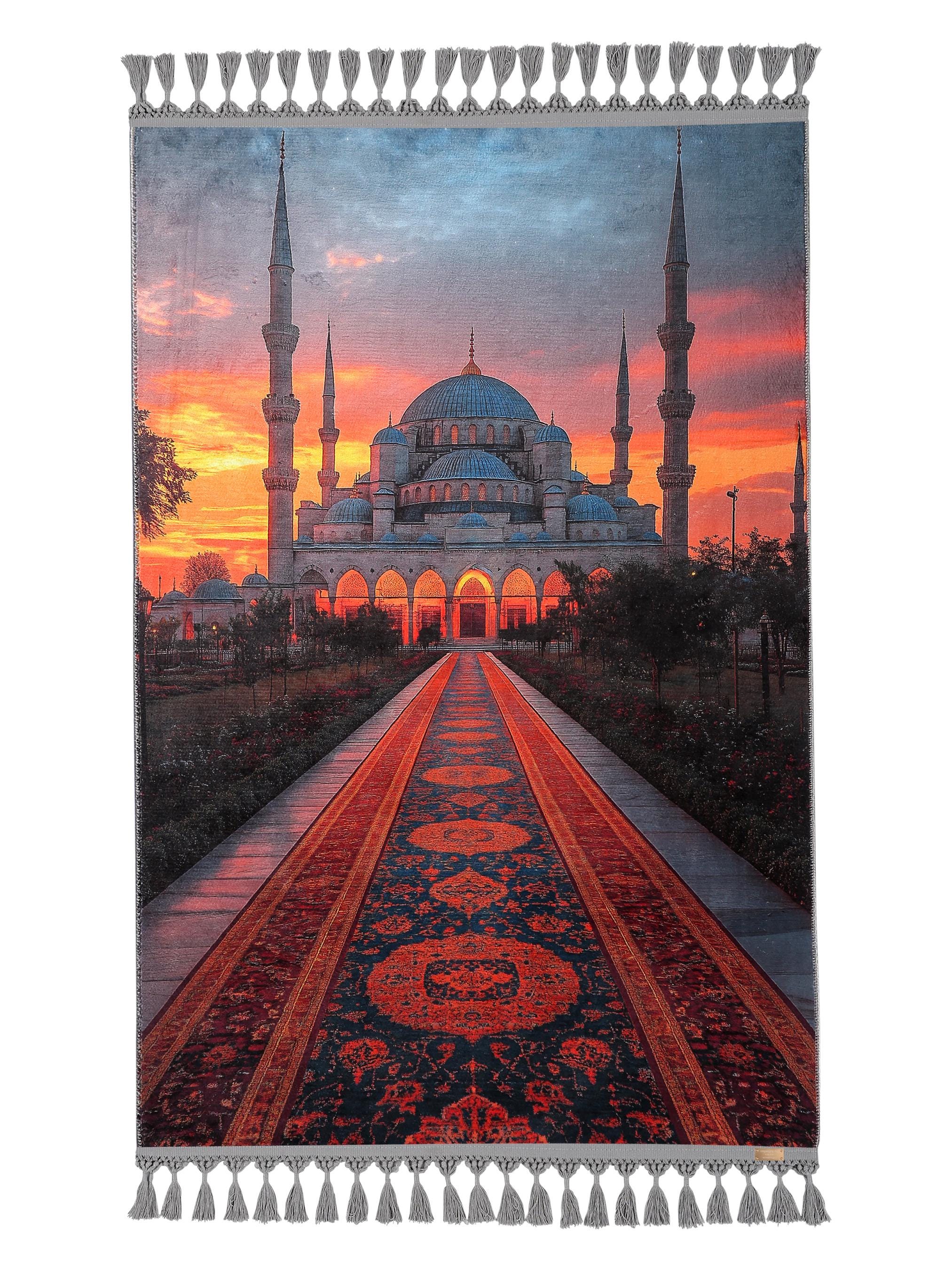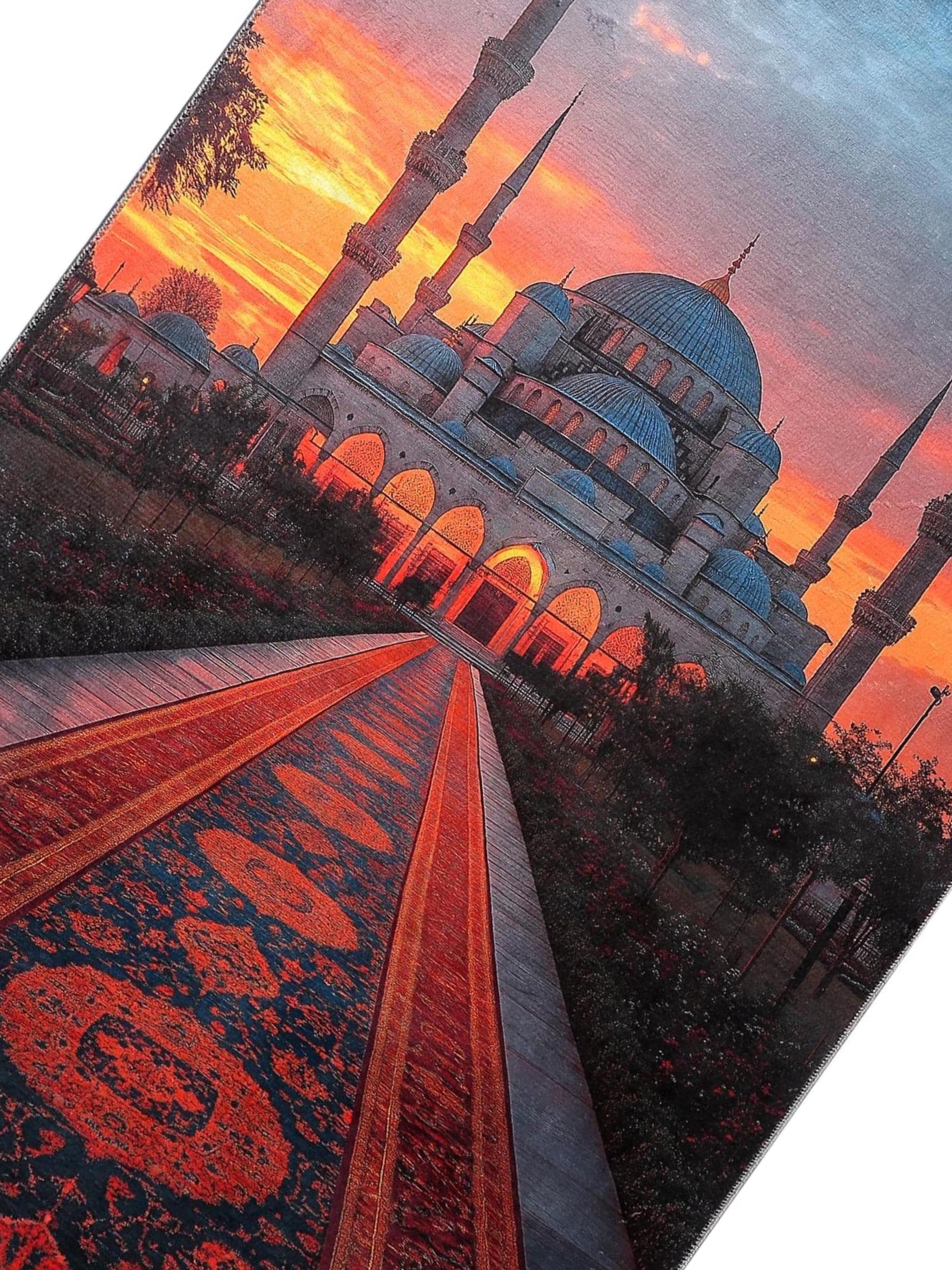This beautiful prayer rug features the iconic **Blue Mosque (Sultanahmet)** design, capturing the elegance and spiritual heritage of Istanbul. Perfect for enhancing your prayer experience and adding a touch of sophistication to your home décor, it can be used as a sejadah mat, wall hanging, or decorative floor piece.