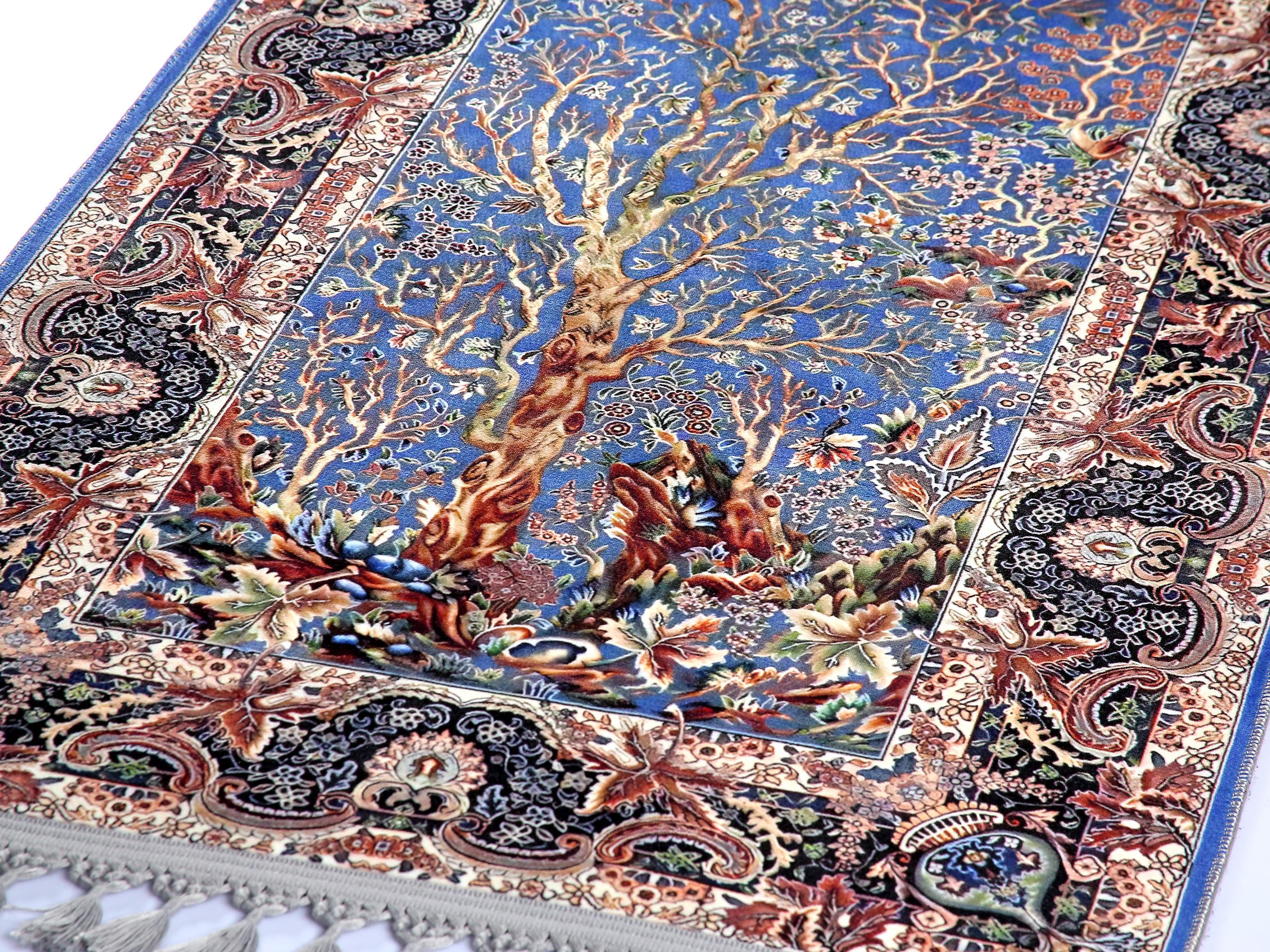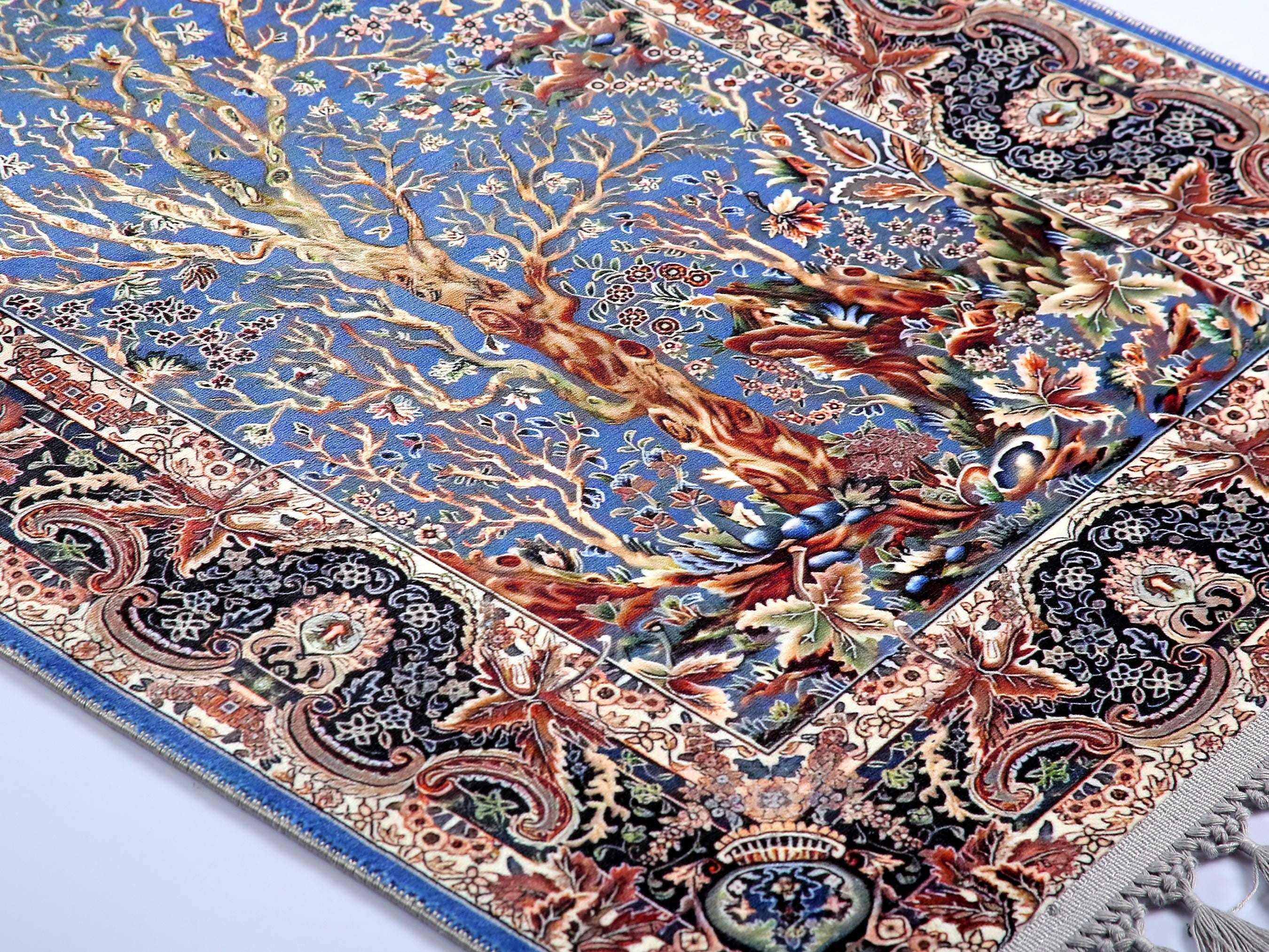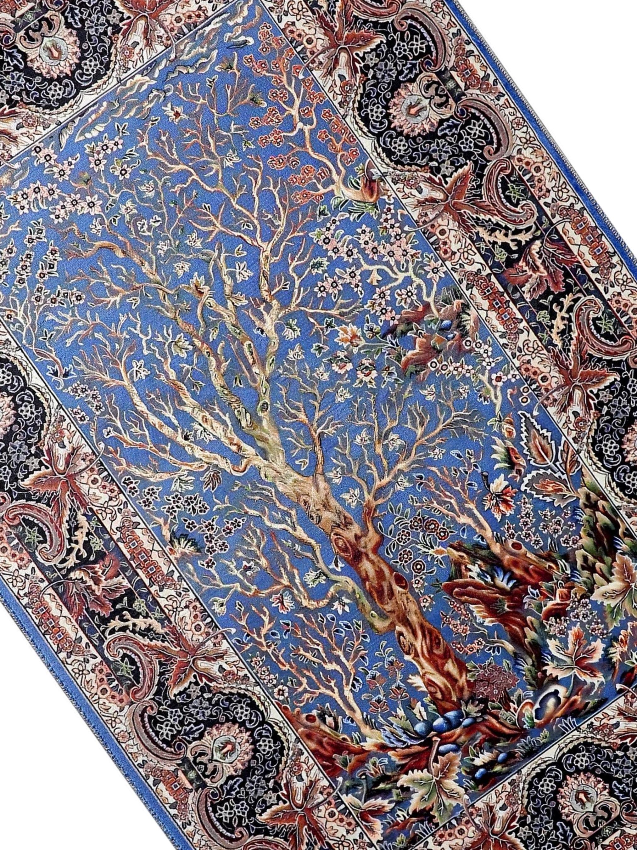 🤲 Luxury Prayer Rug – Blue Tree of Life Turkish Carpet for Elegant Muslim Homes