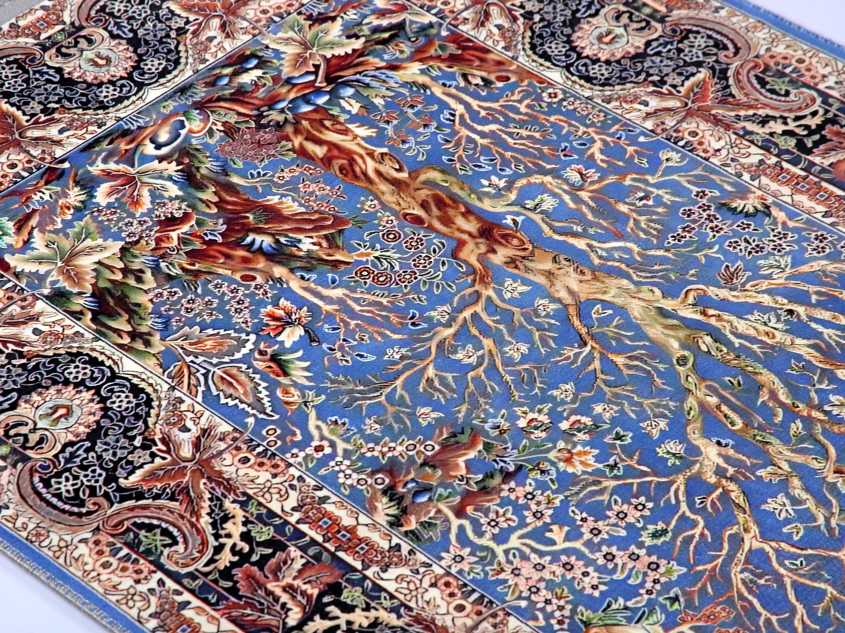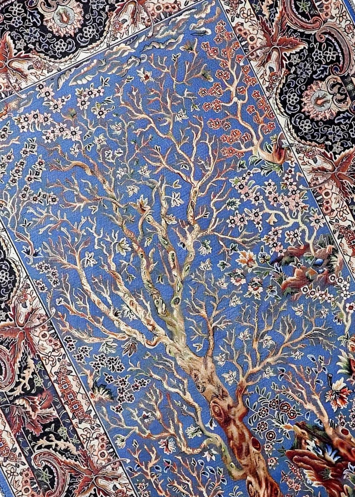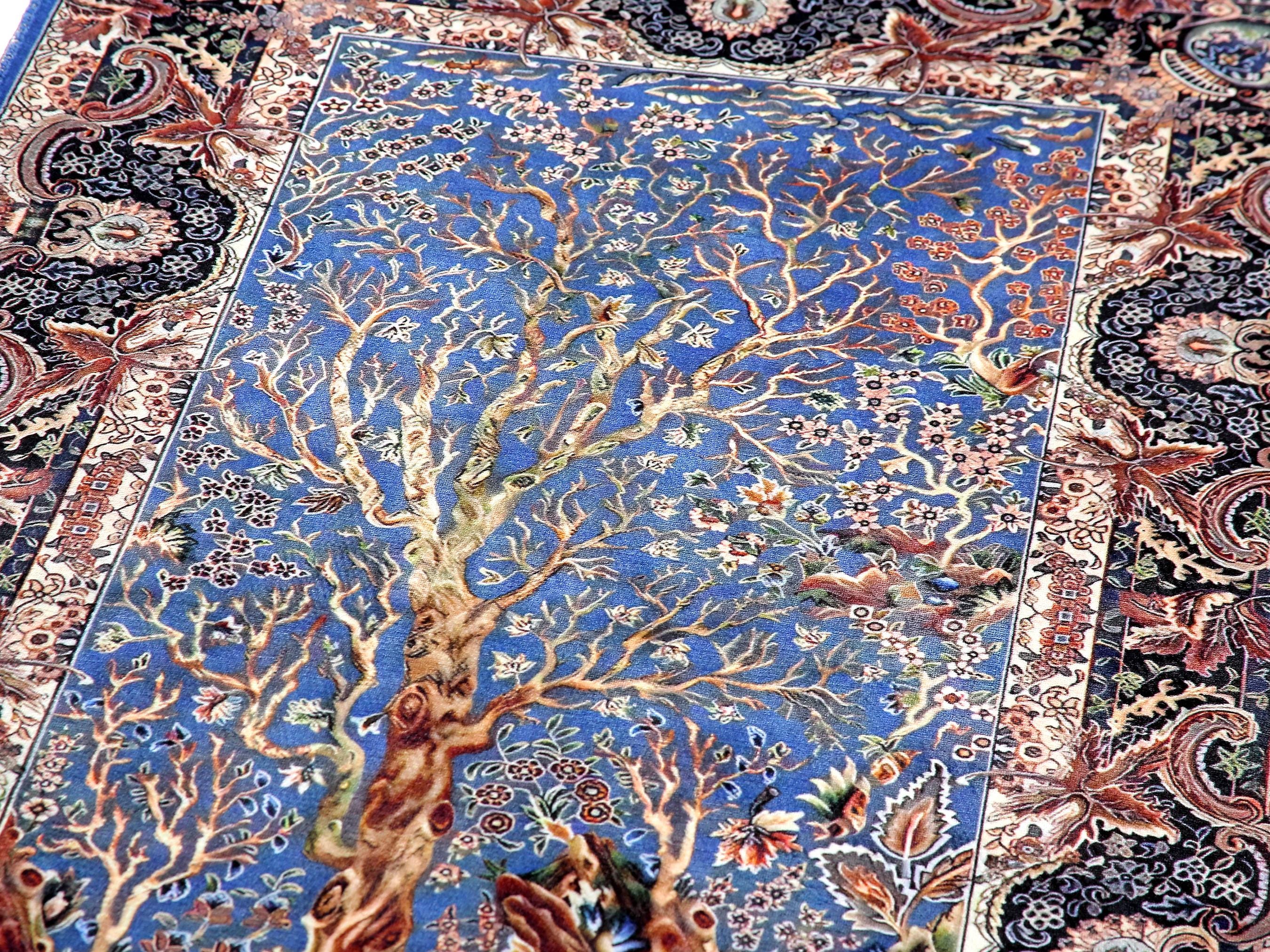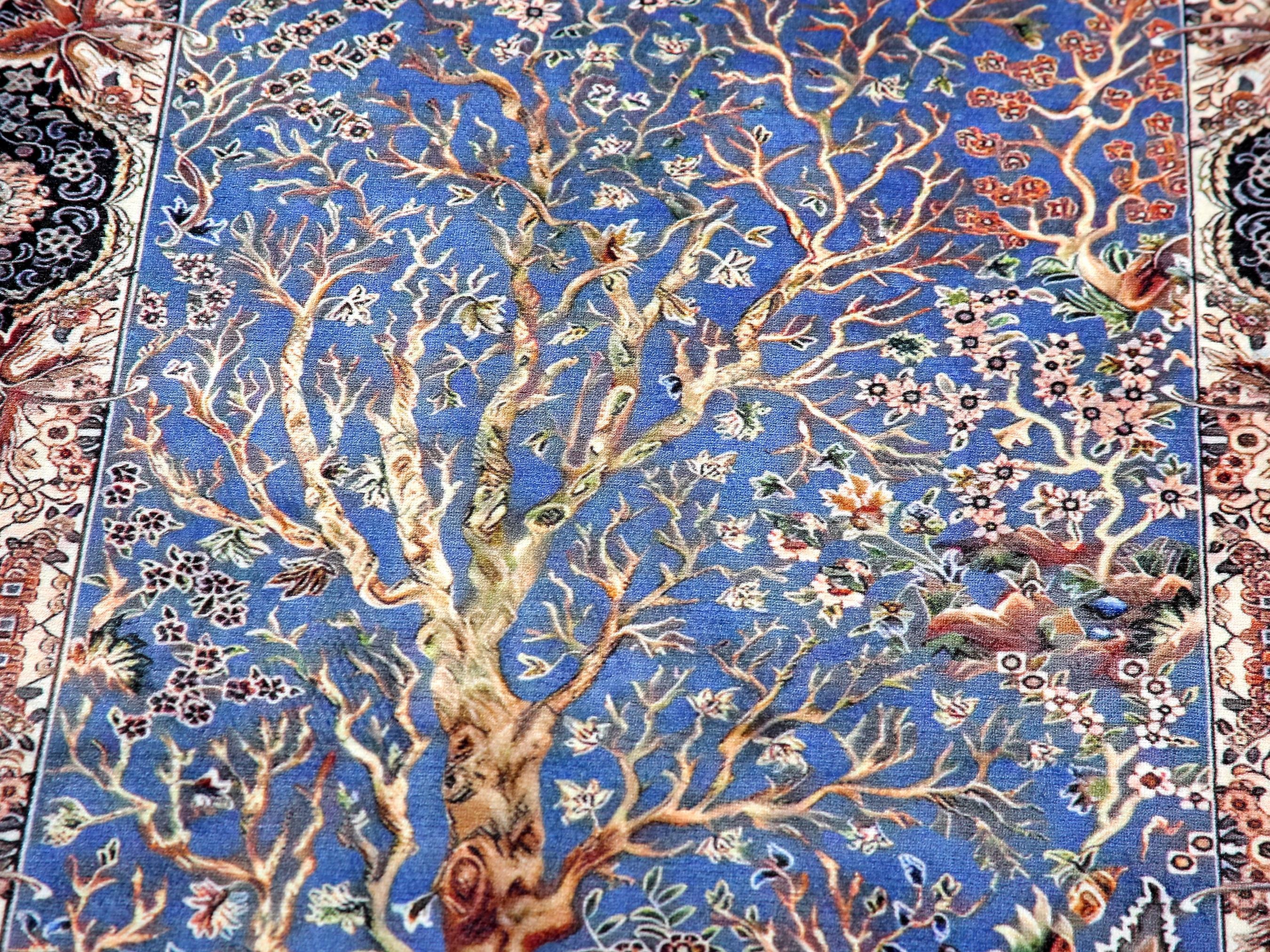 🤲 Luxury Prayer Rug – Blue Tree of Life Turkish Carpet for Elegant Muslim Homes