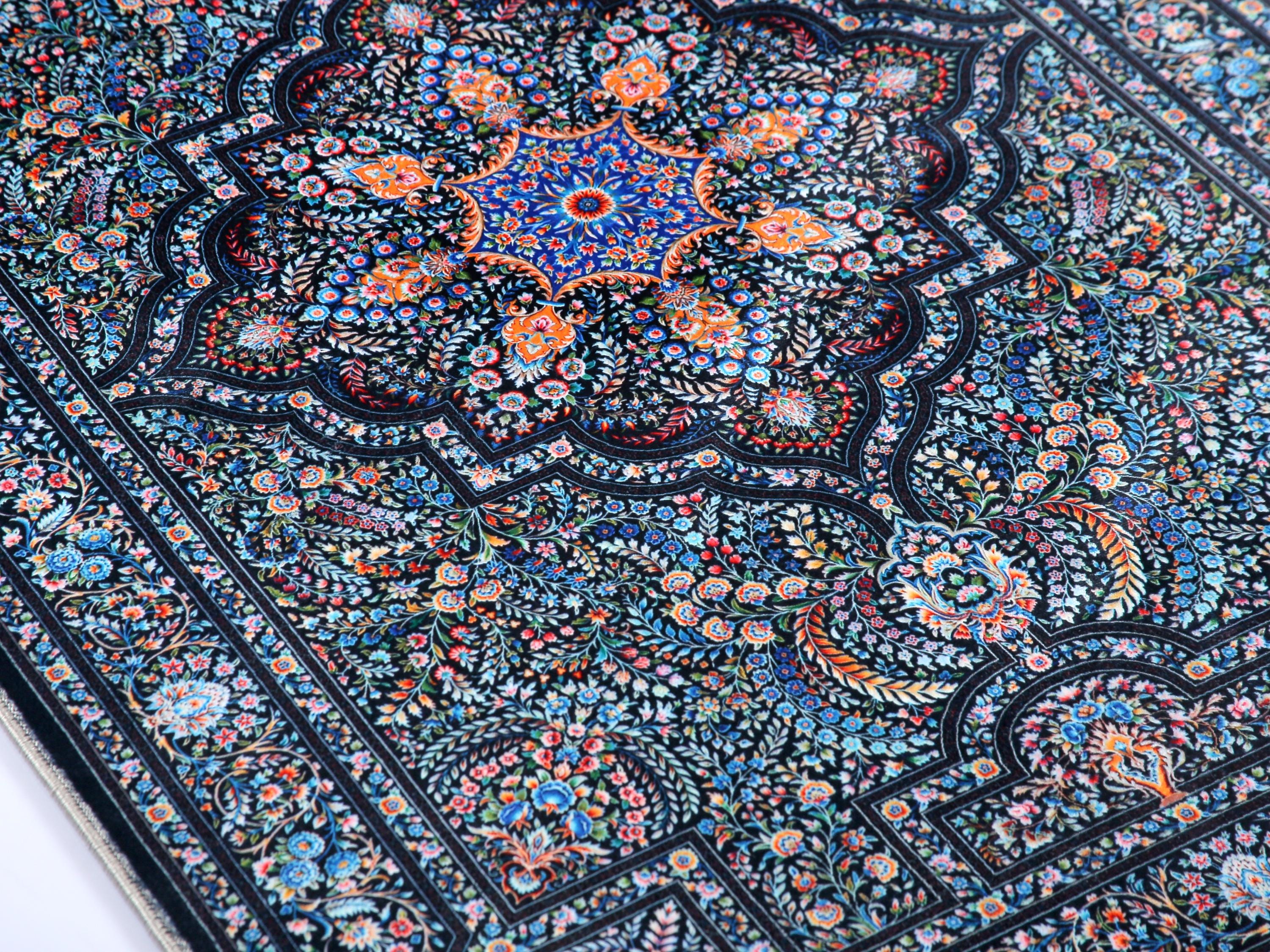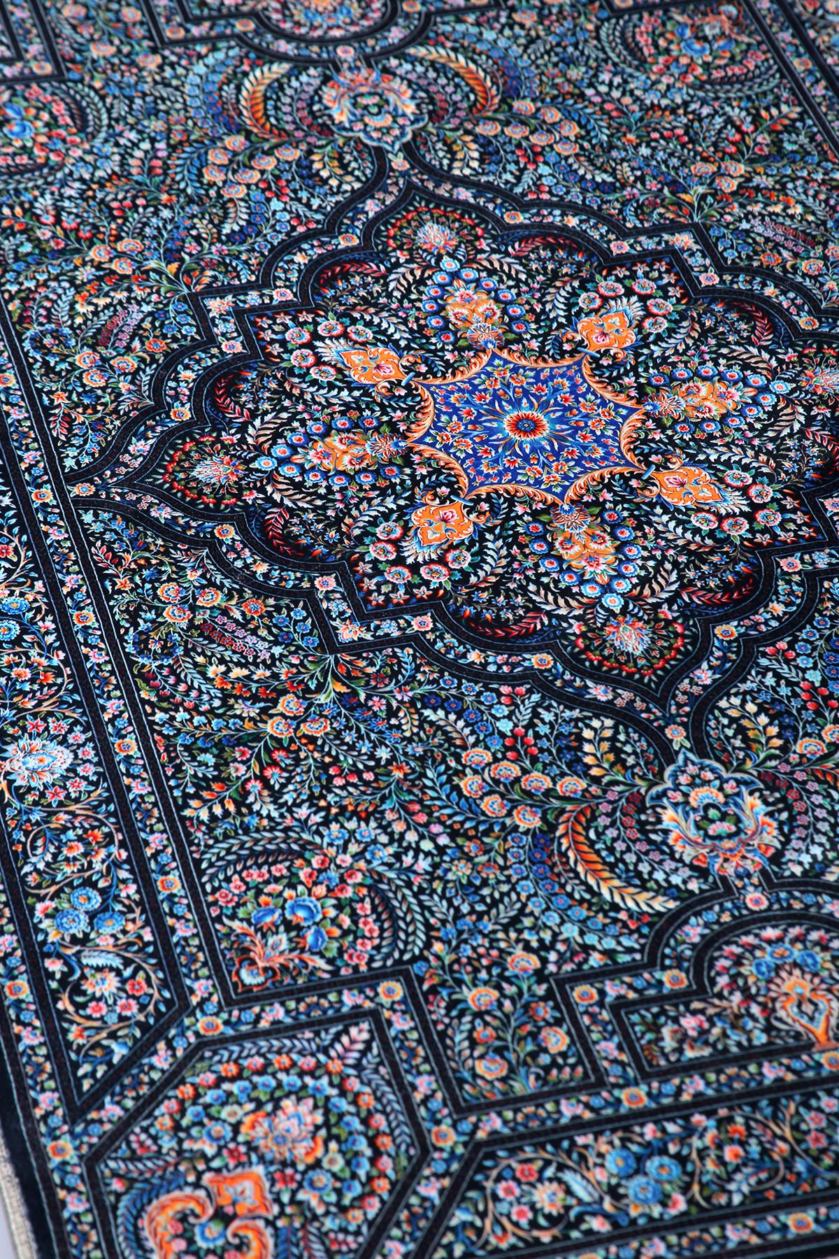 This dark blue floral rug beautifully combines traditional Turkish patterns with a modern touch, making it perfect for any space. Whether used as a prayer rug or as a luxurious carpet in your living room, bedroom, entryway, or office, its soft texture and elegant design create a welcoming atmosphere. Perfect balance of tradition and modern design – loved by all ages.