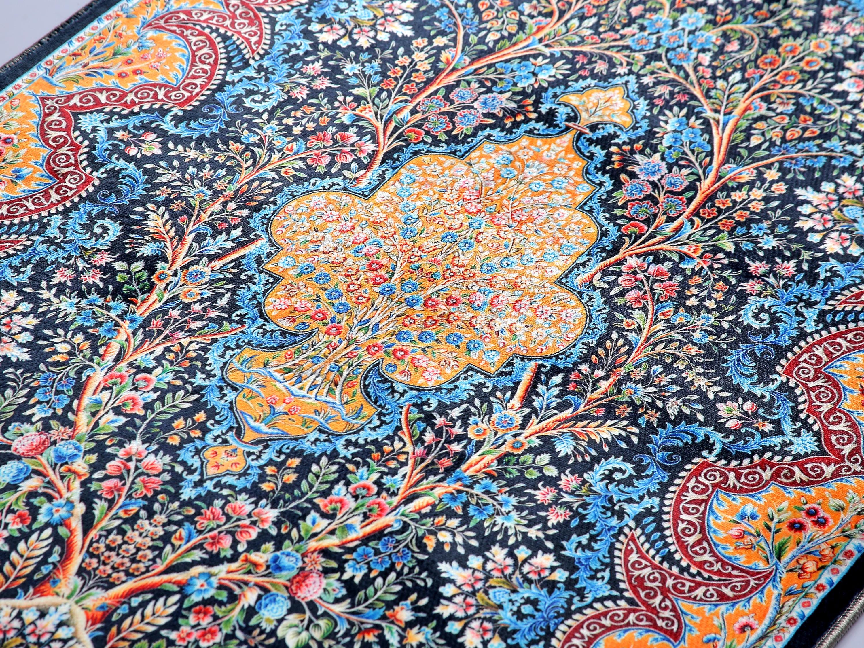 β¨ Features intricate navy and yellow floral mihrab pattern inspired by historic Ottoman architecture, symbolizing spiritual serenity and heritage.