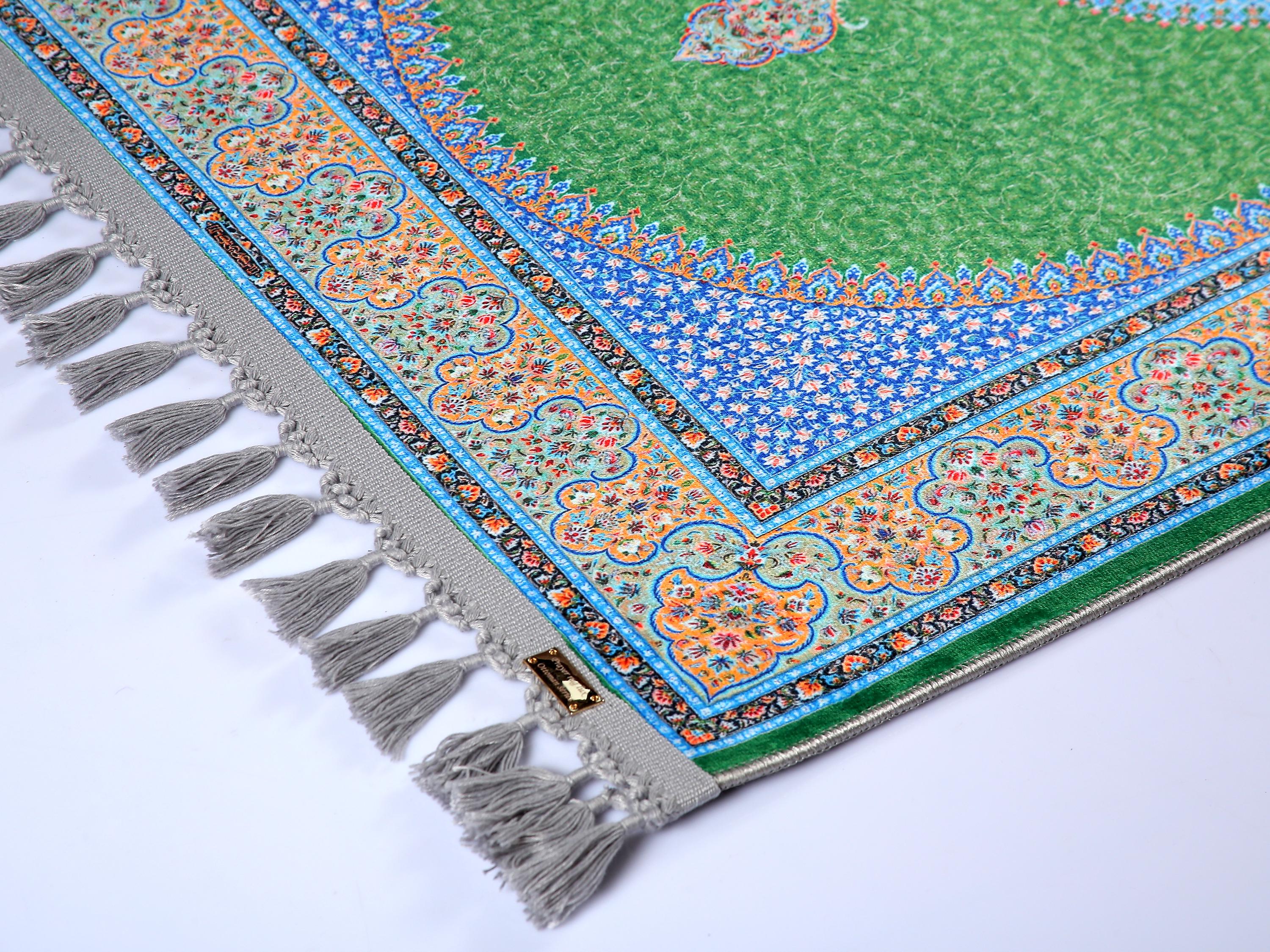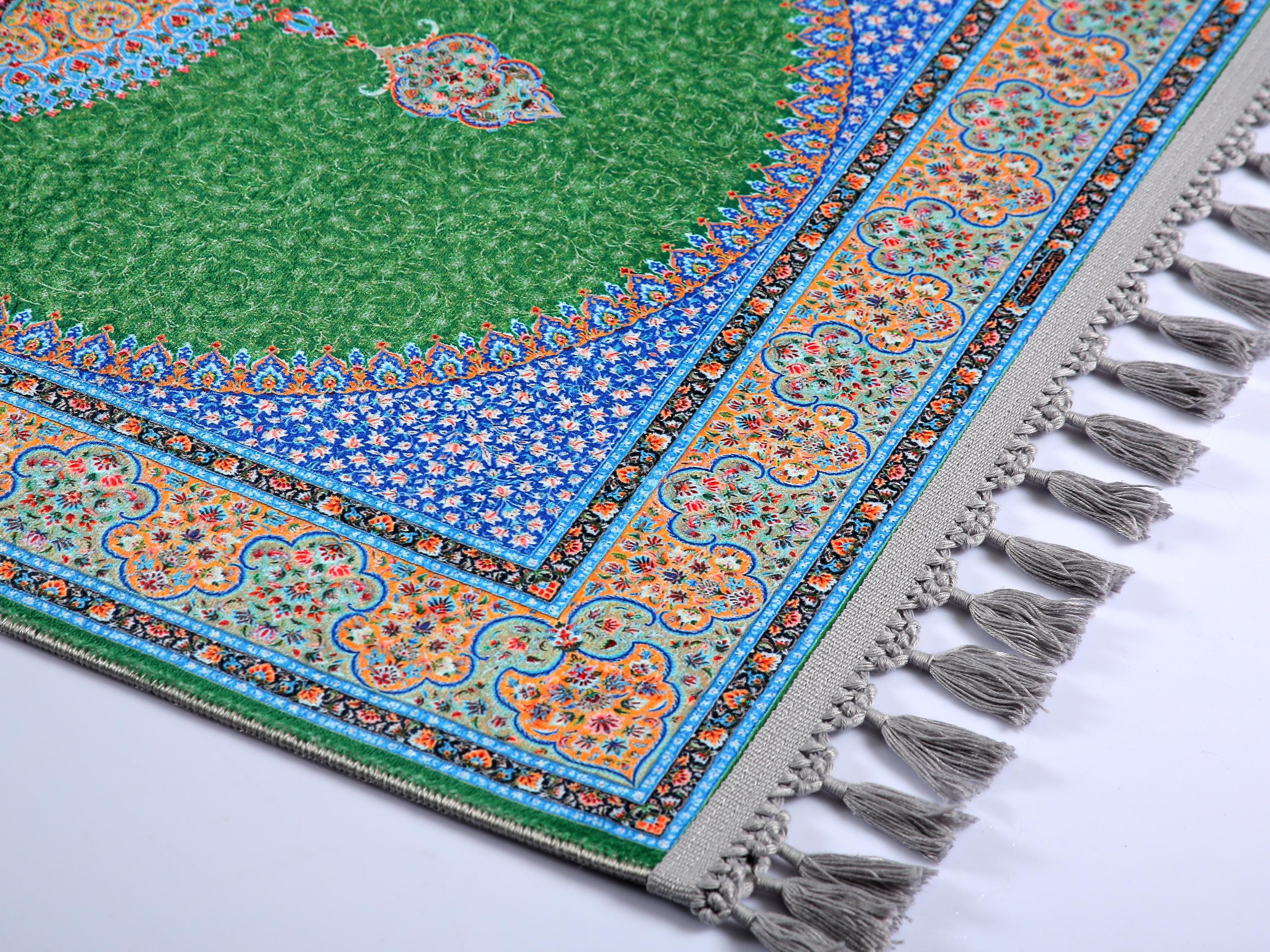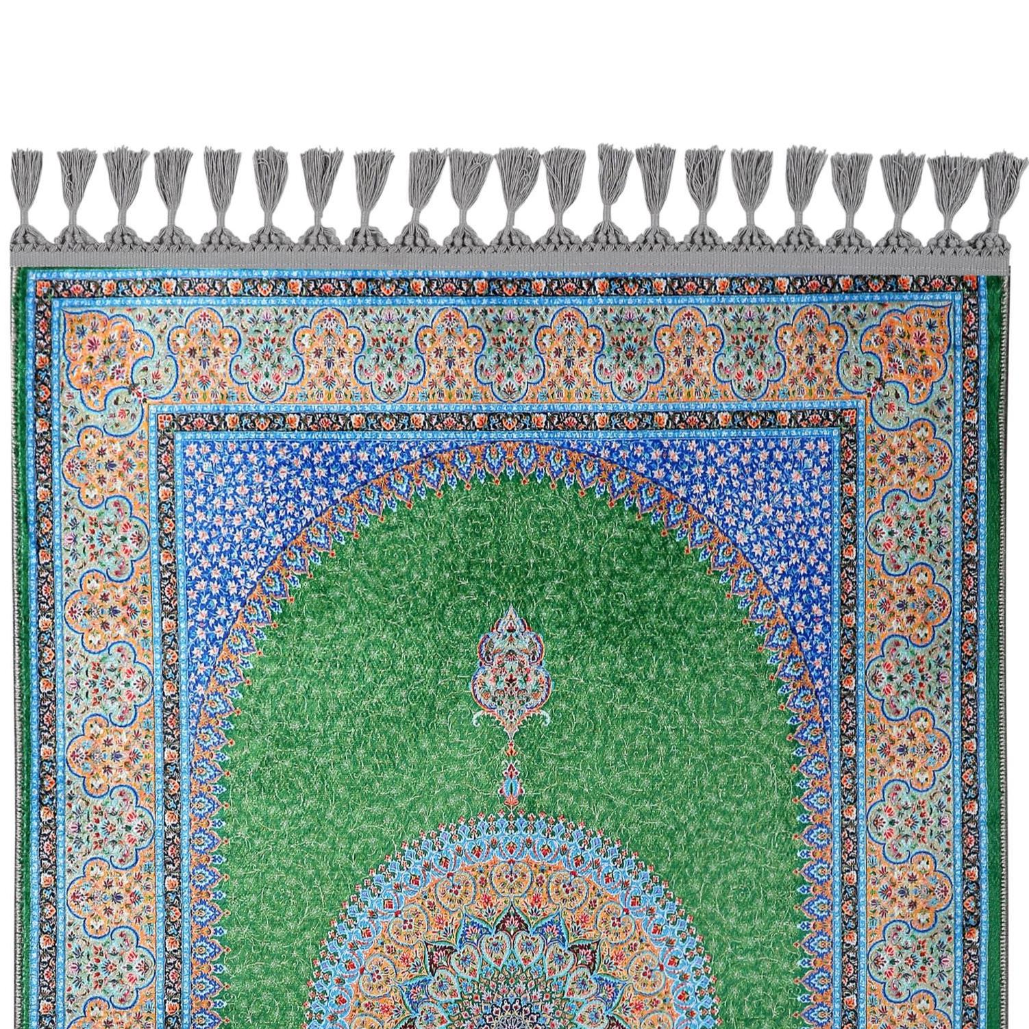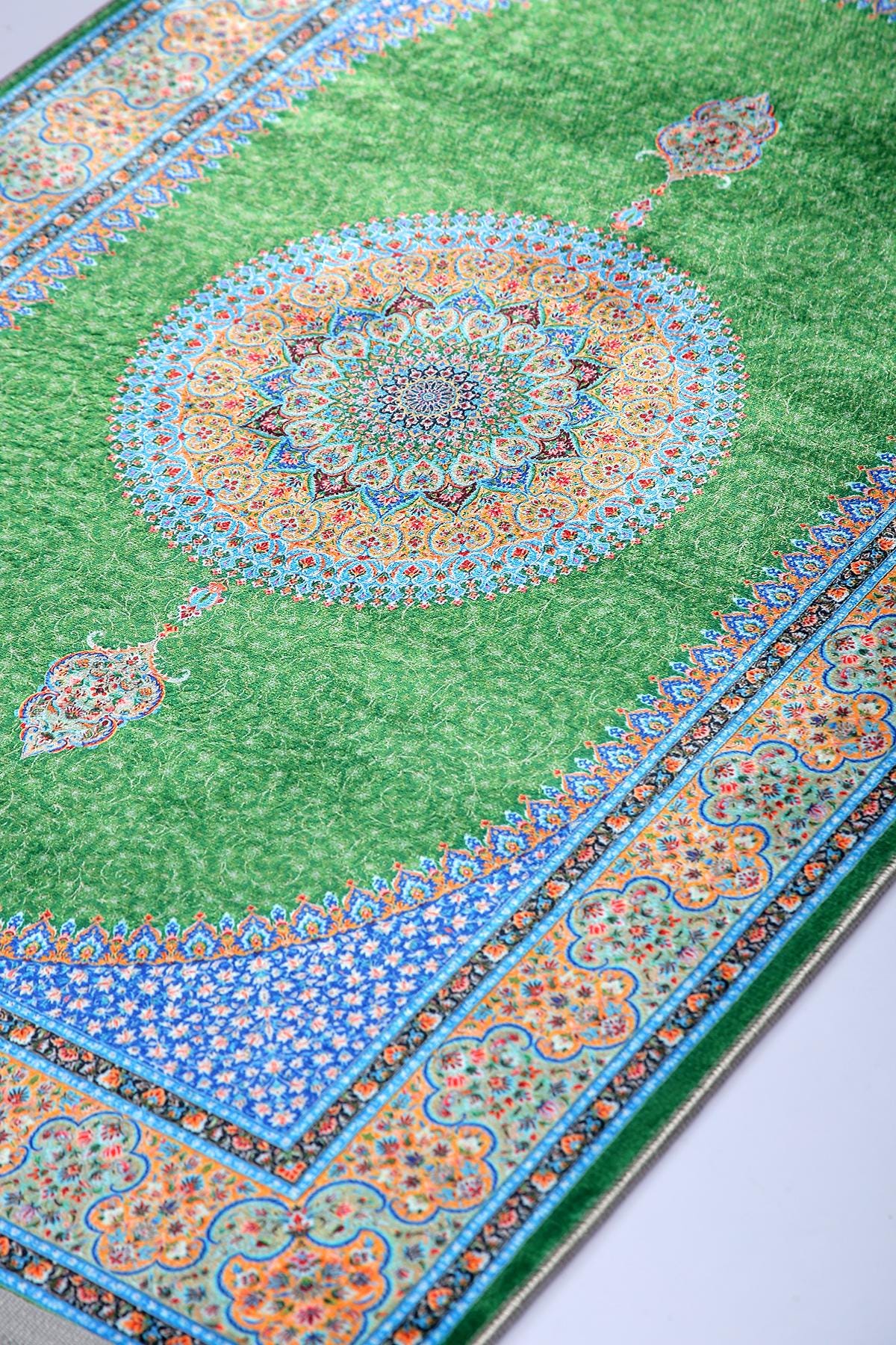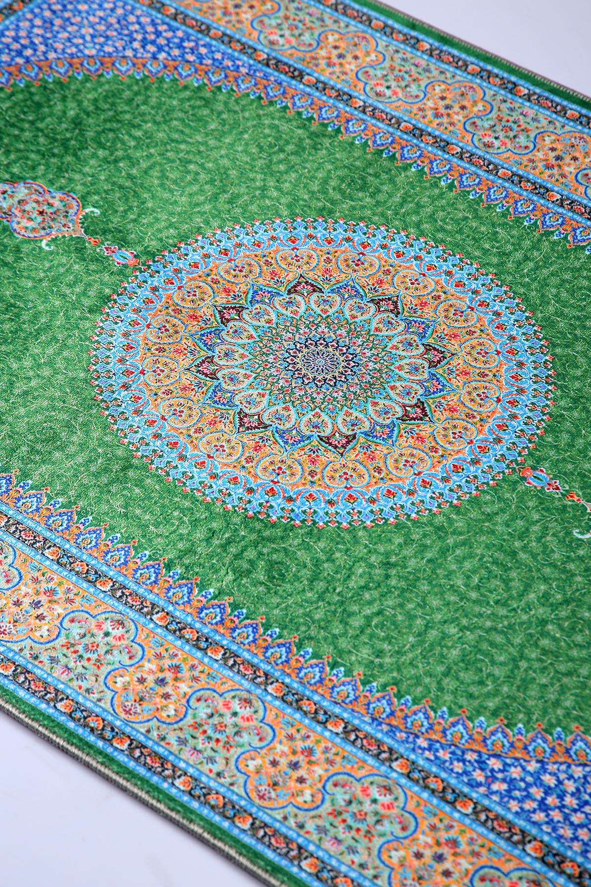 Luxury Turkish Prayer Rug – Green Medallion Islamic Carpet for Living Room and Home Decor