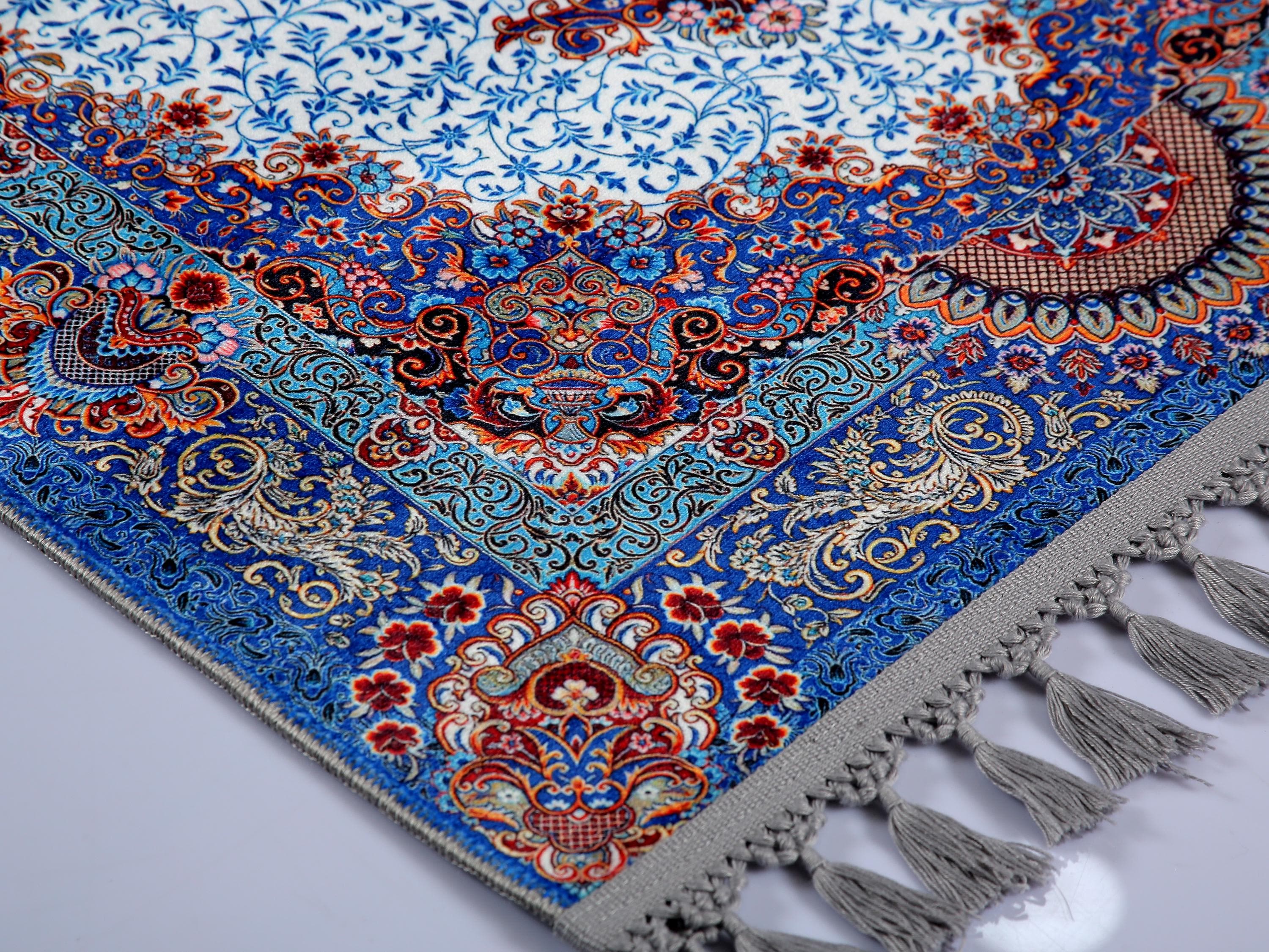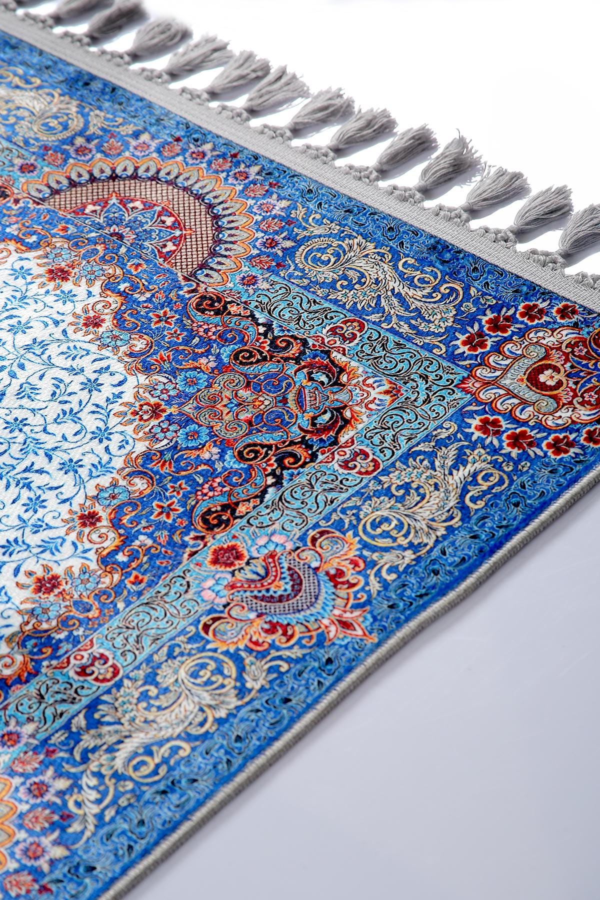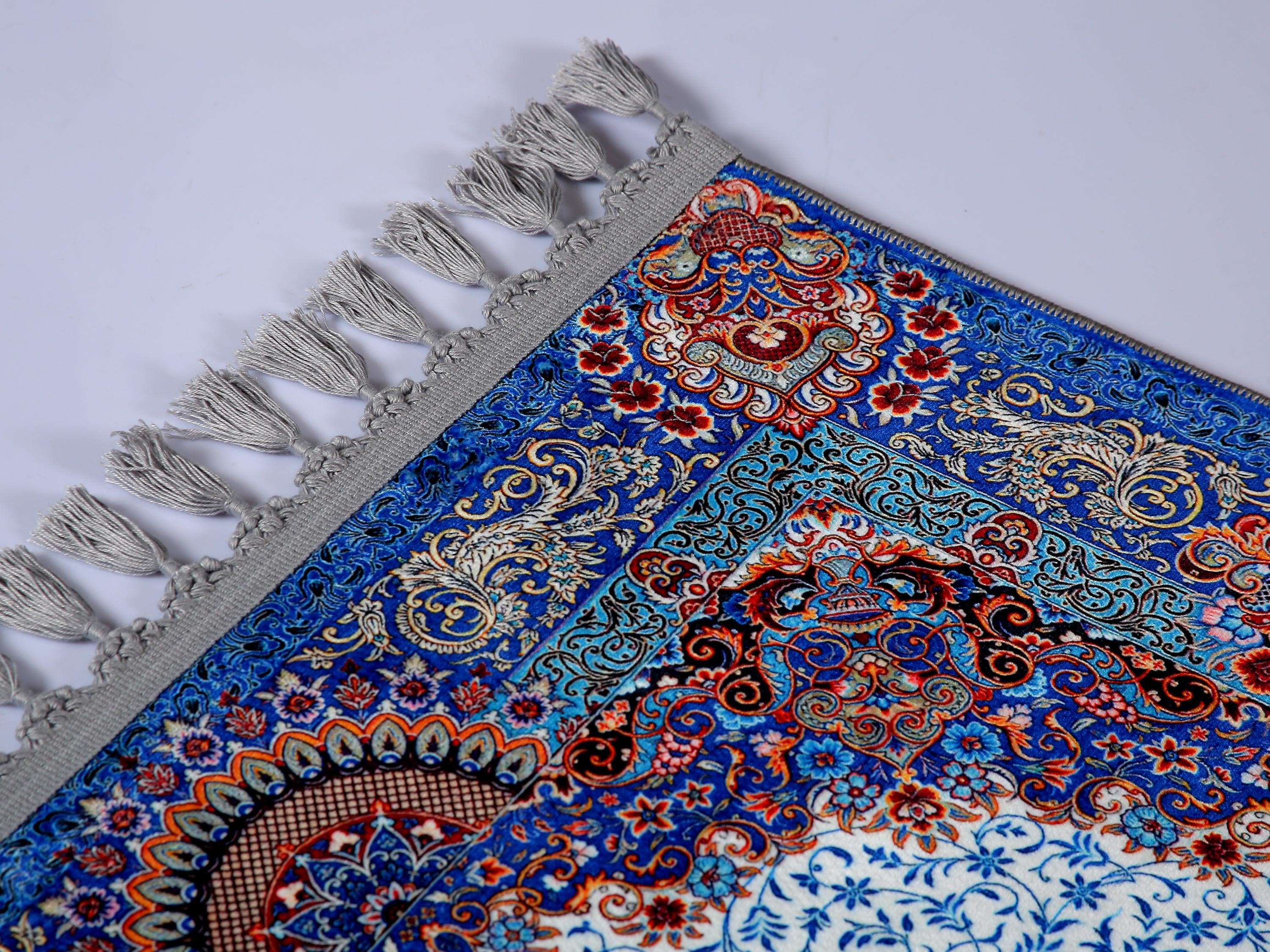 Elegant blue‑red floral patterns add warmth and sophistication to prayer spaces, living rooms, offices, or hotel lobbies. Soft chenille surface offers knee‑friendly comfort during prayer or meditation.