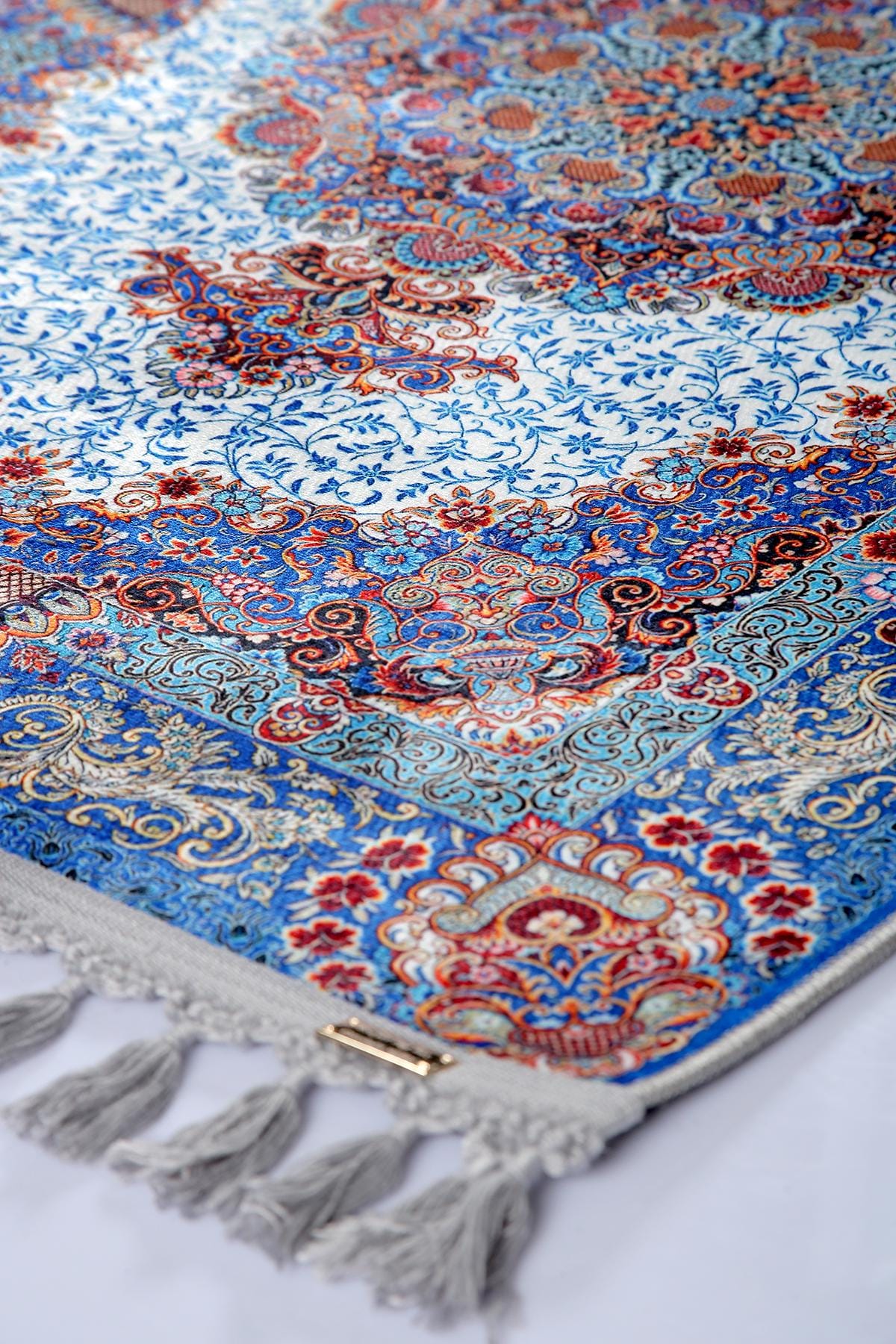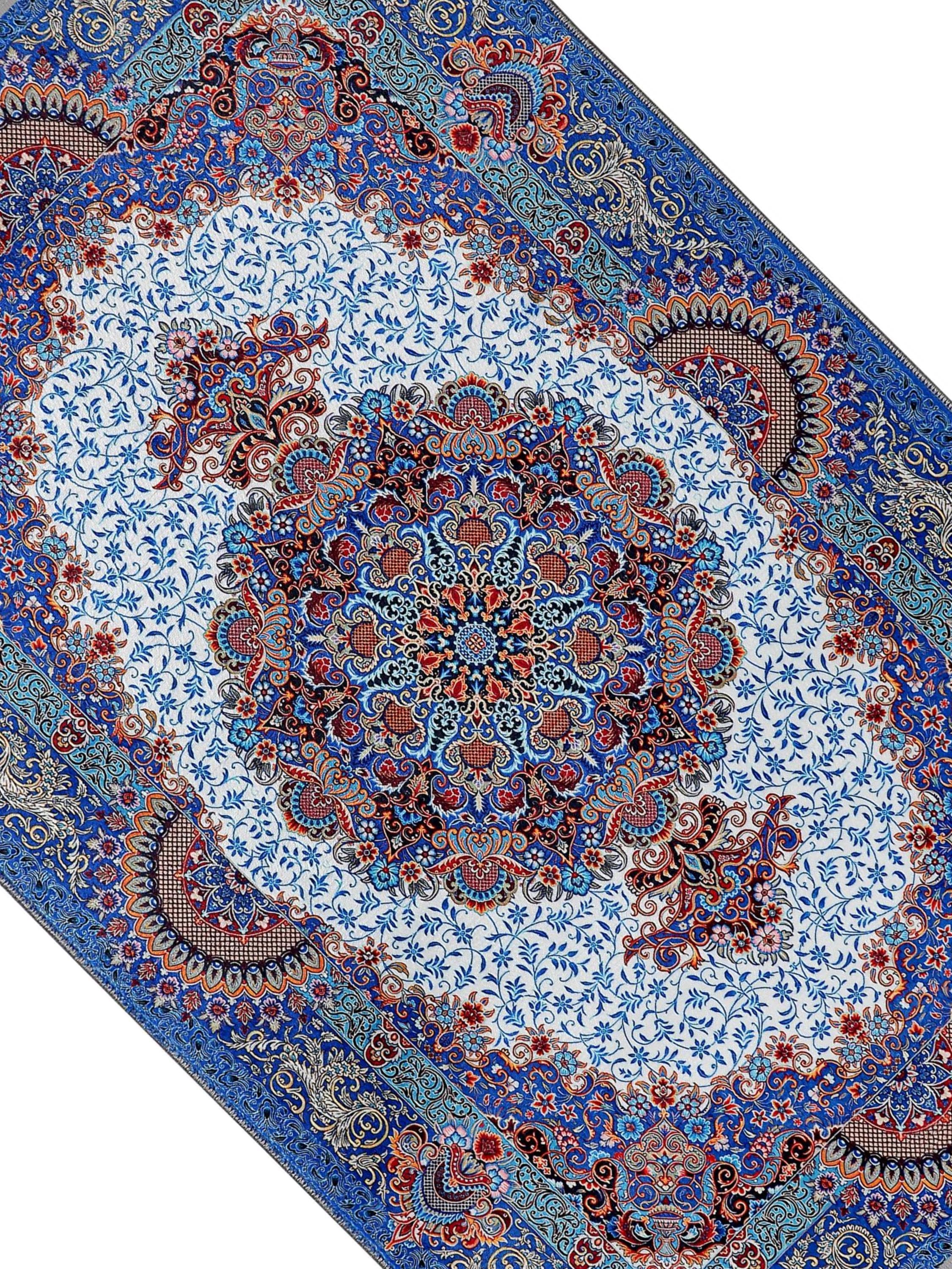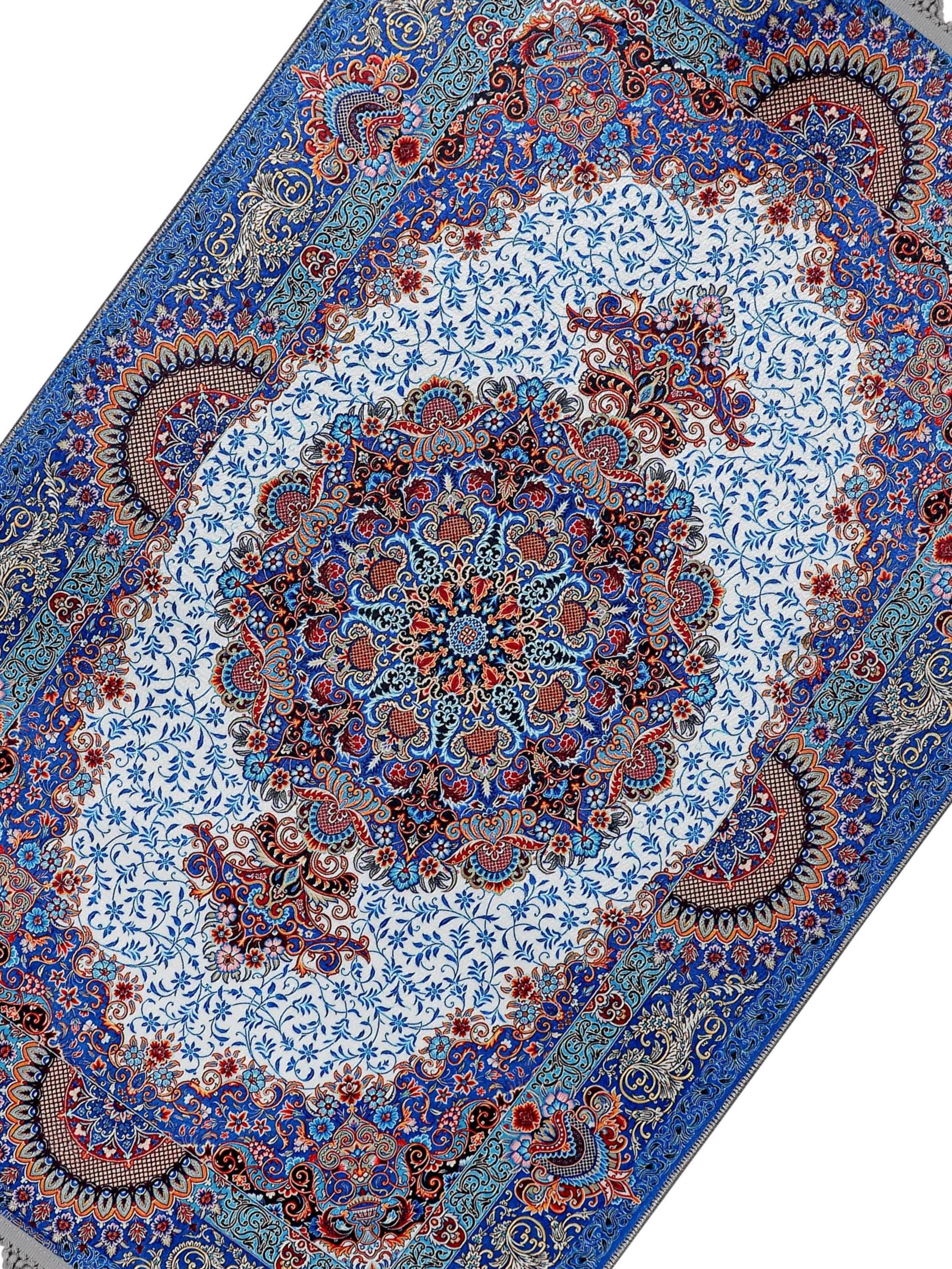 Elegant blue‑red floral patterns add warmth and sophistication to prayer spaces, living rooms, offices, or hotel lobbies. Soft chenille surface offers knee‑friendly comfort during prayer or meditation.