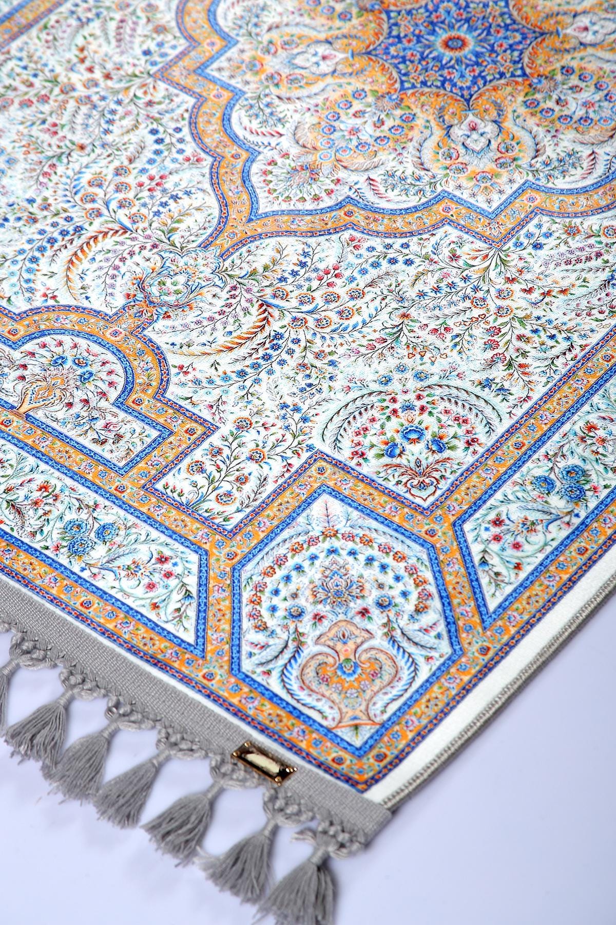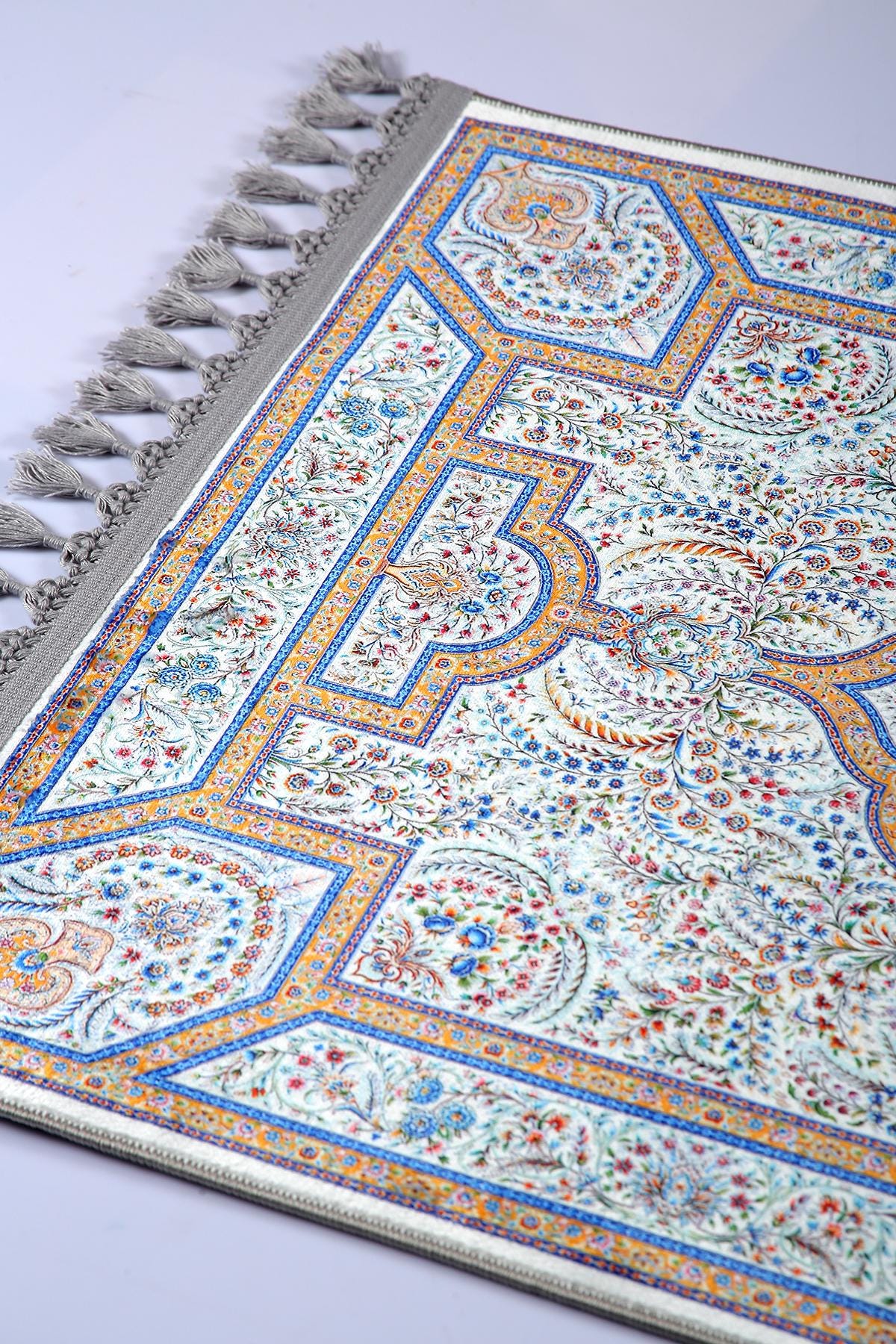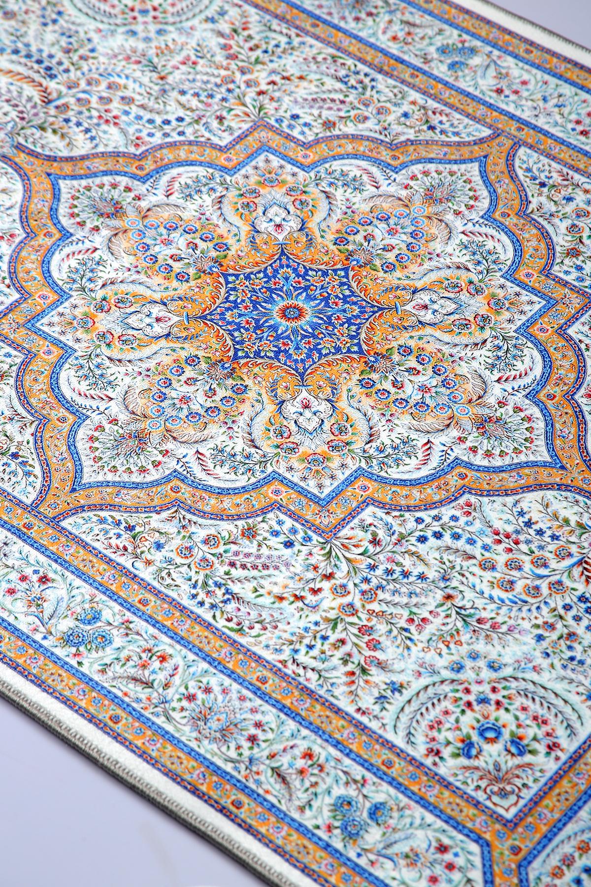 🕌 Luxury White & Blue Turkish Area Rug – Islamic Floral Medallion Carpet for Elegant Home Décor