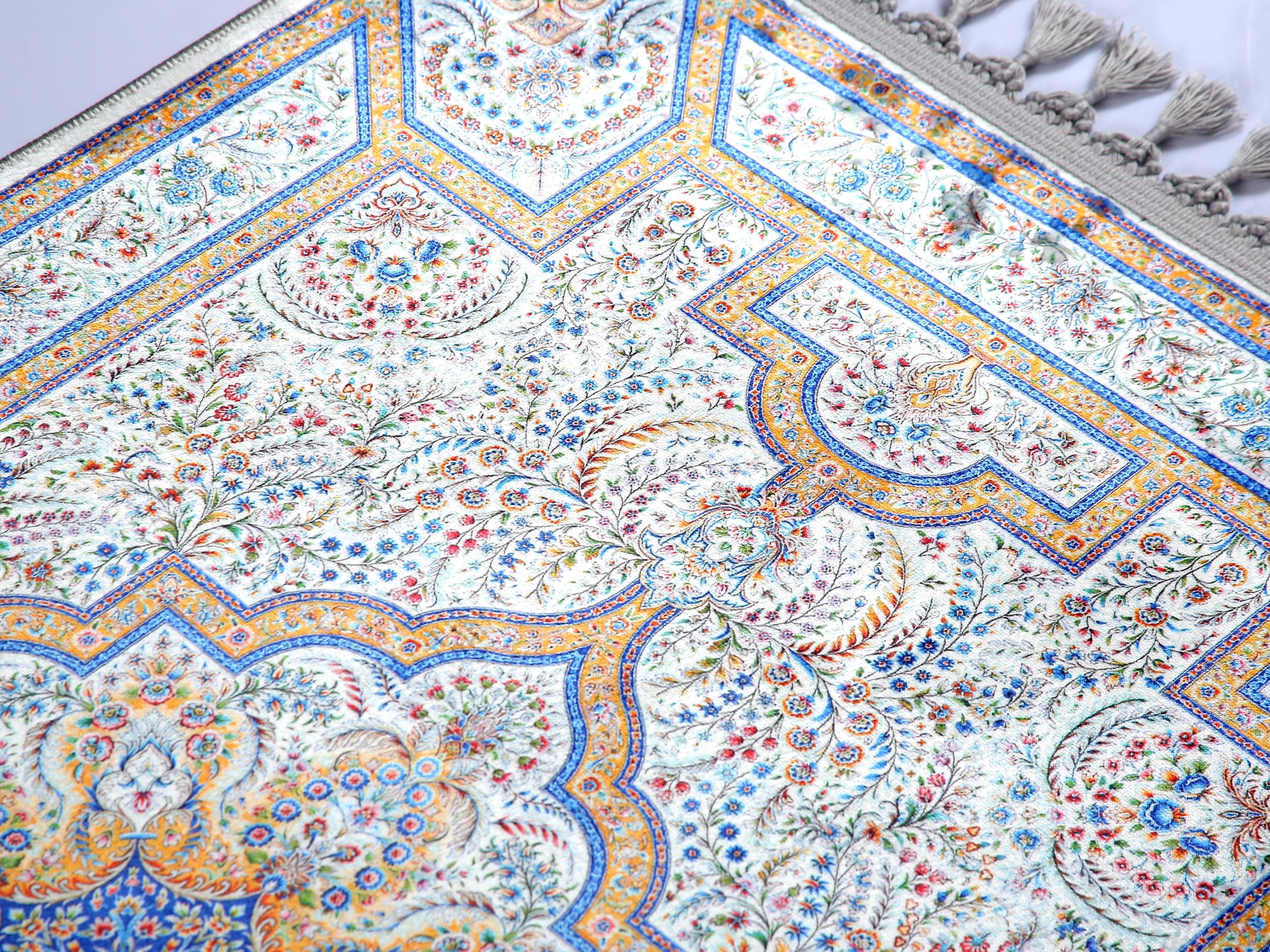 Our Turkish prayer rugs are not handmade. They are crafted using high-resolution digital design and modern printing techniques, preserving the look, feel, and spirit of traditional Turkish craftsmanship.