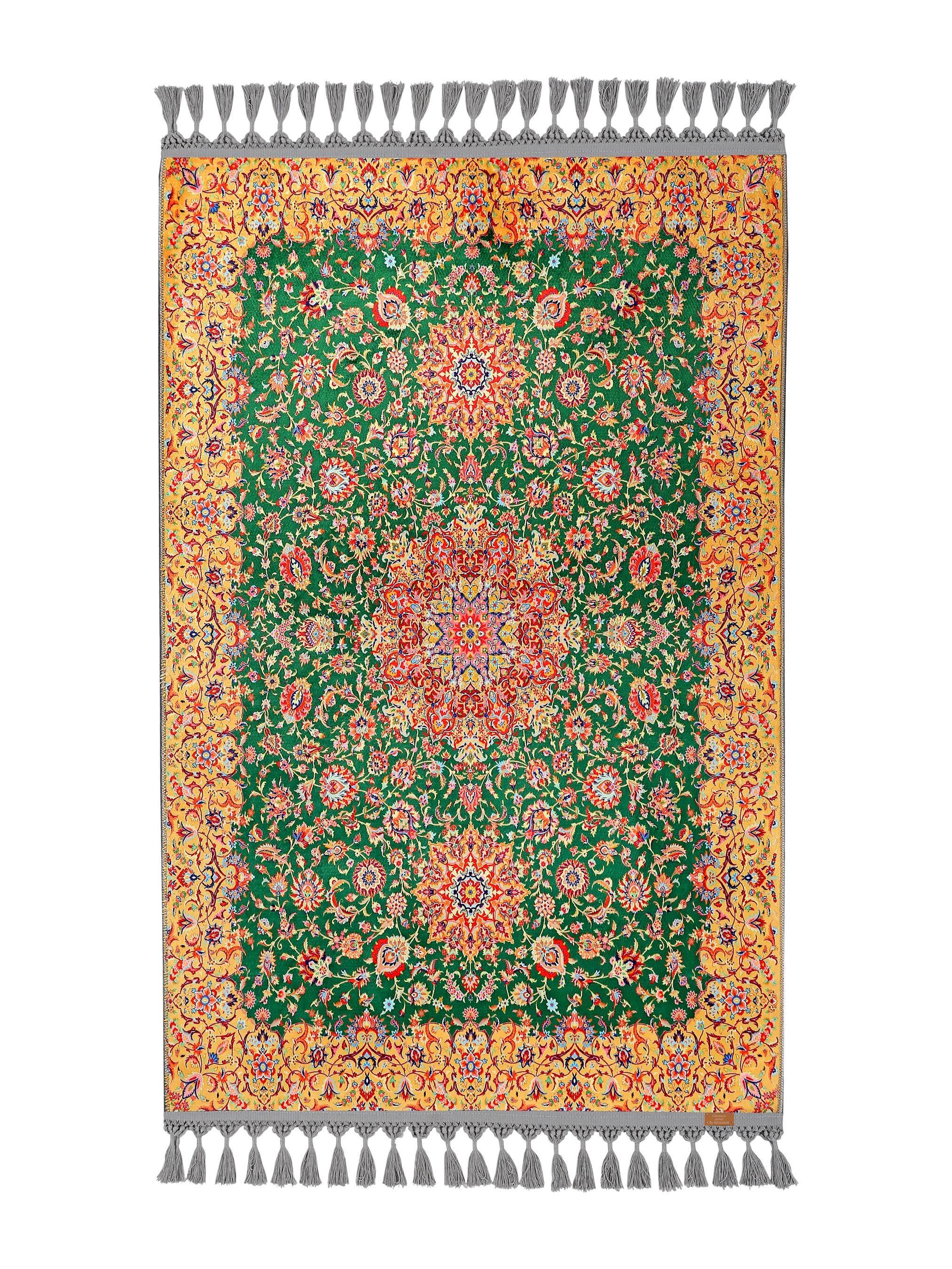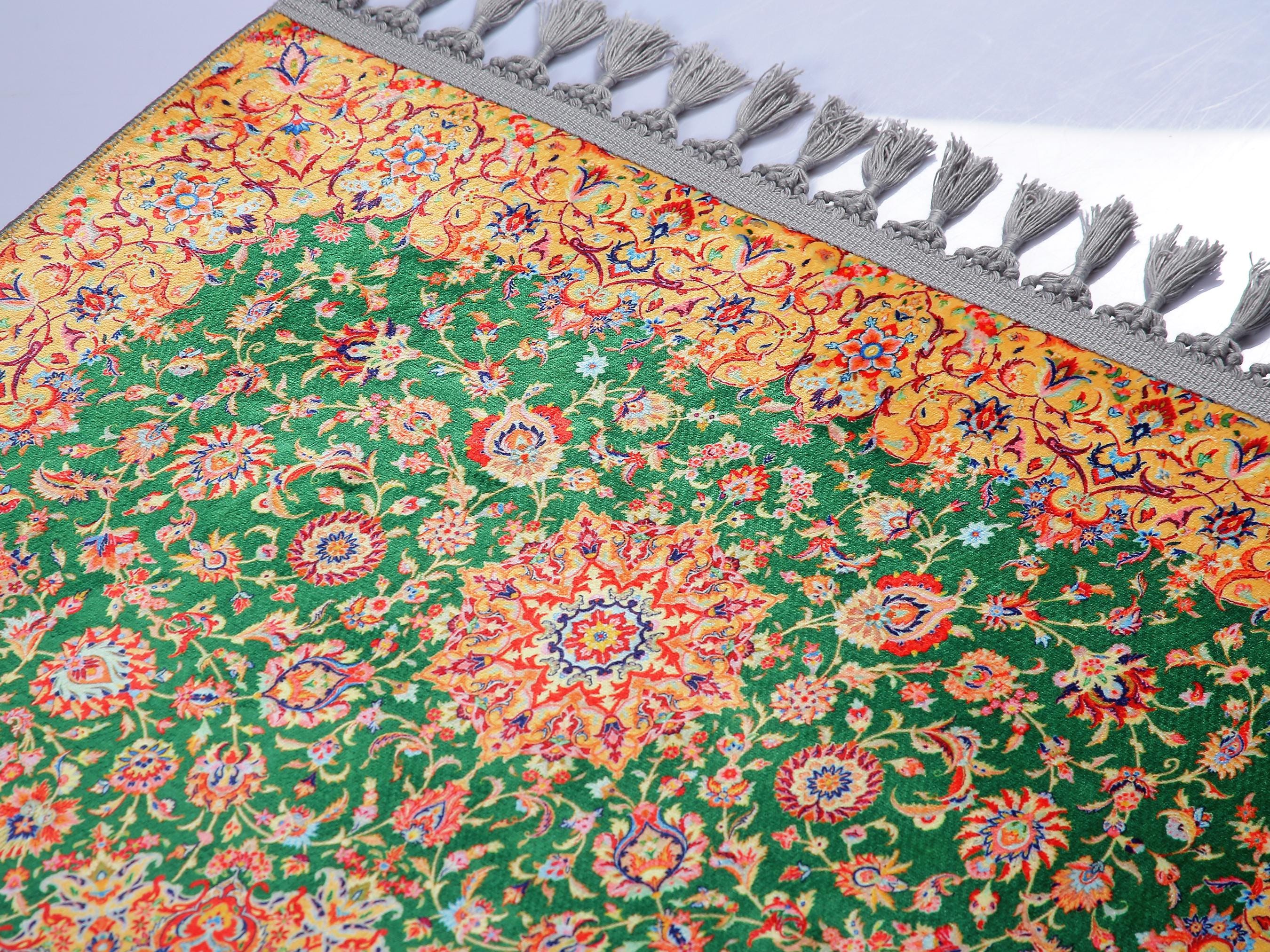 Muslim Prayer Rug in Yellow & Green β Ideal for Bedroom, Living Room, Entry, wall Rug