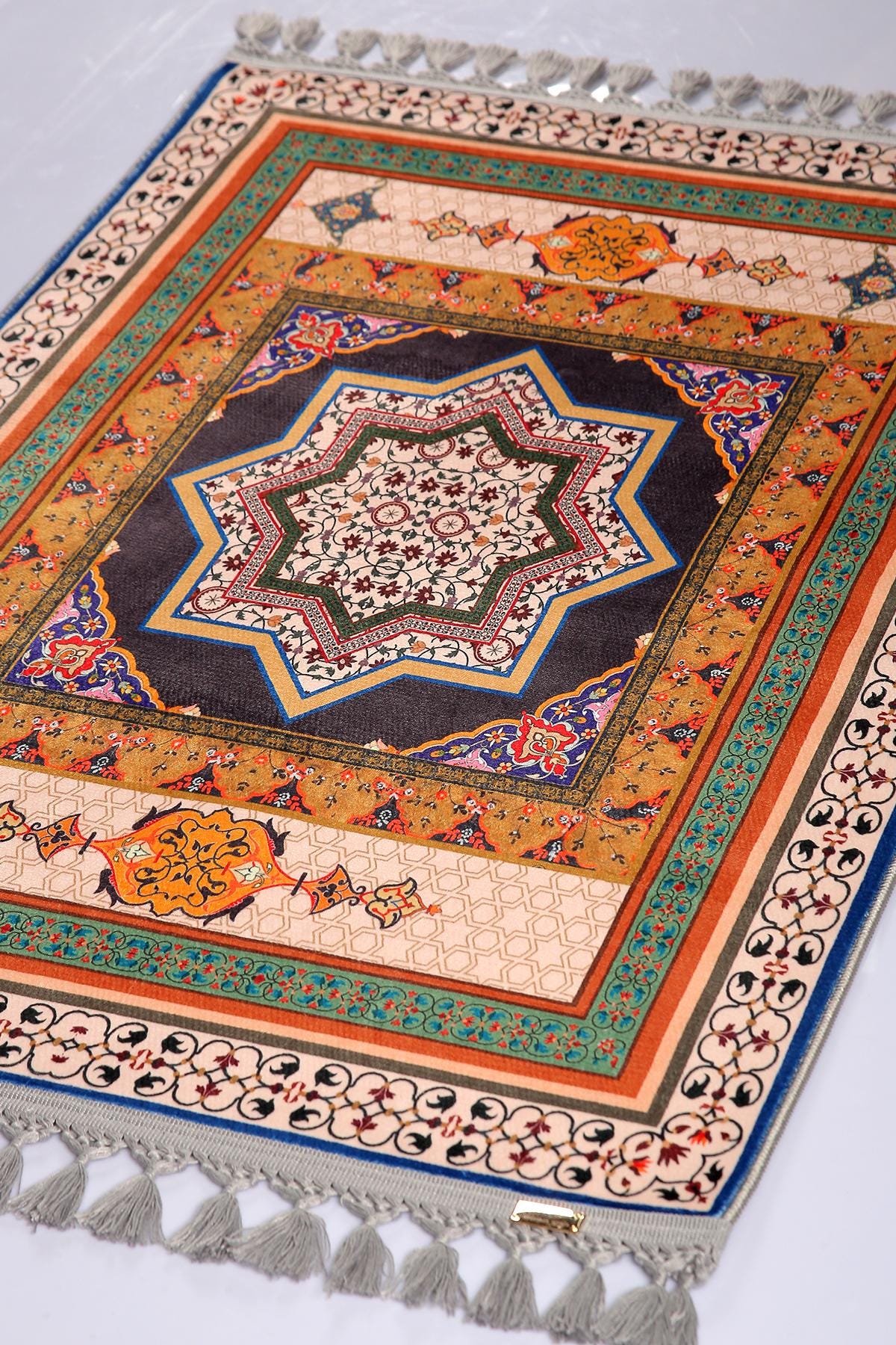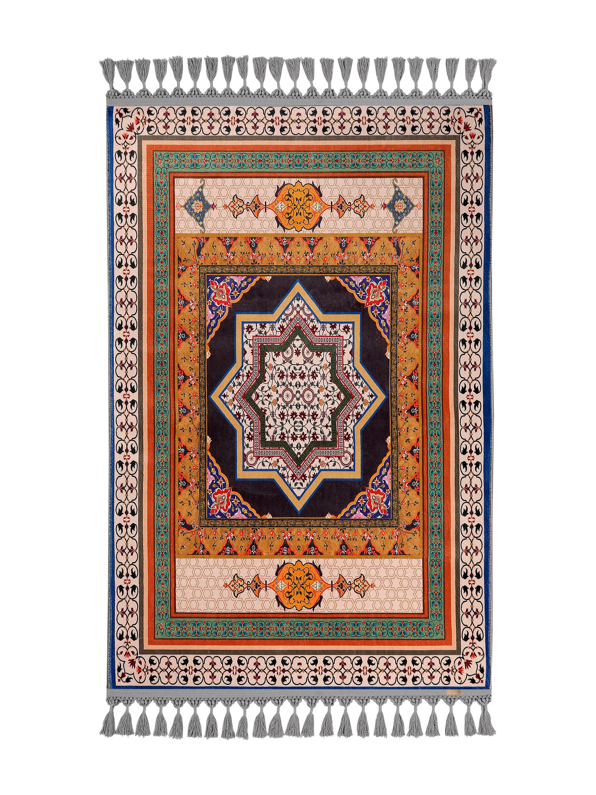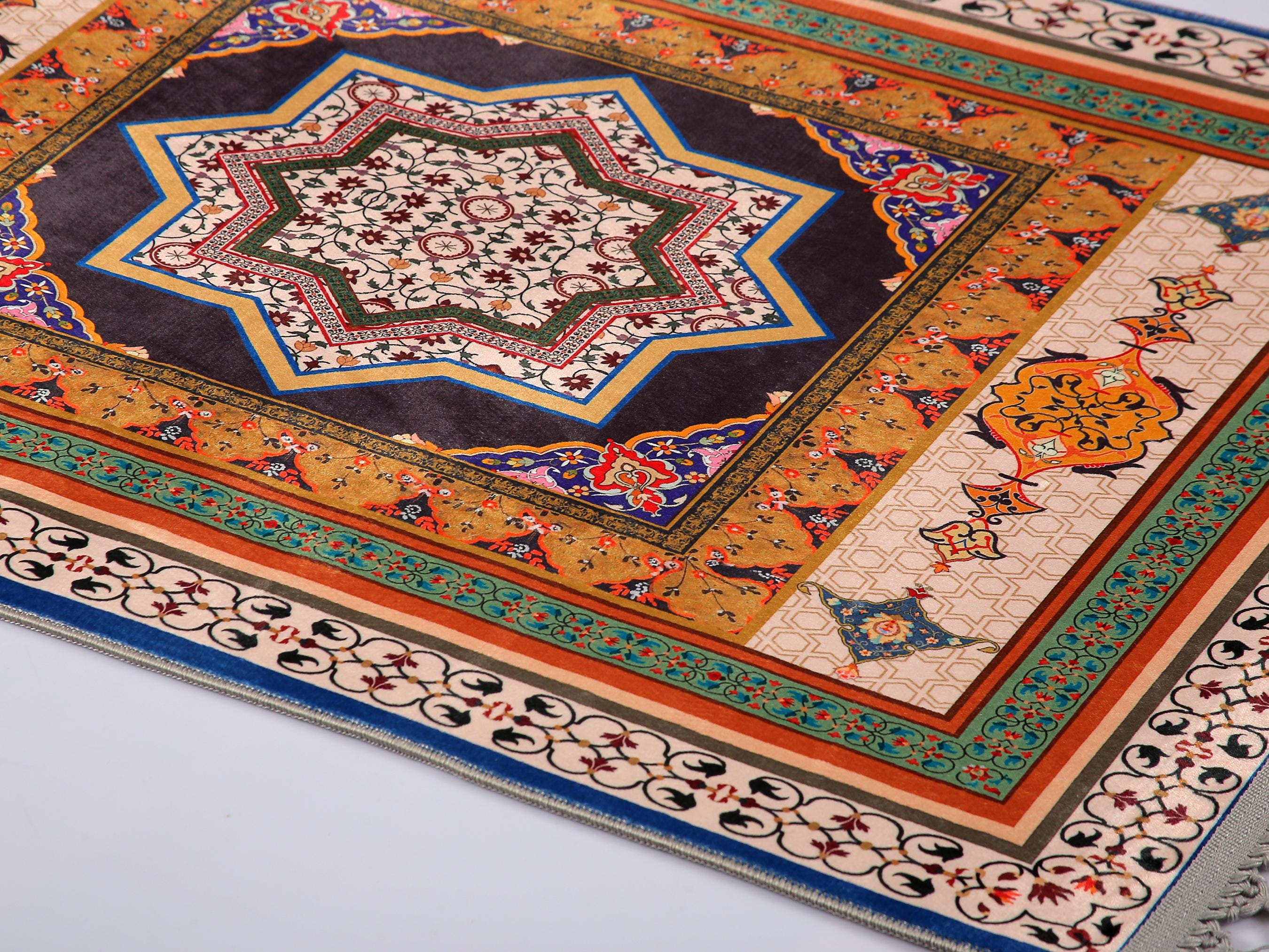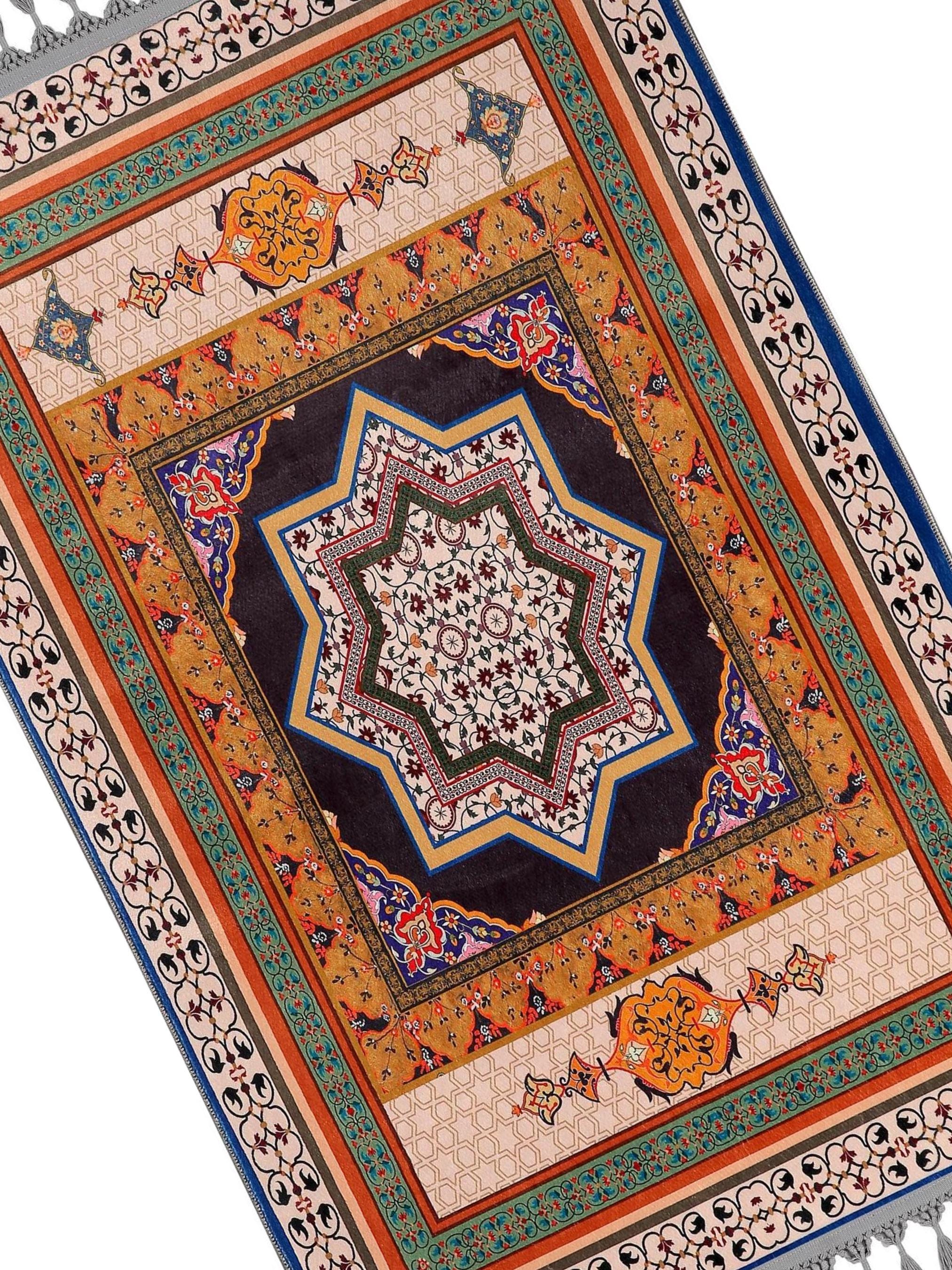 Luxury Prayer Rug – Orange Brown Star Islamic Wall Tapestry