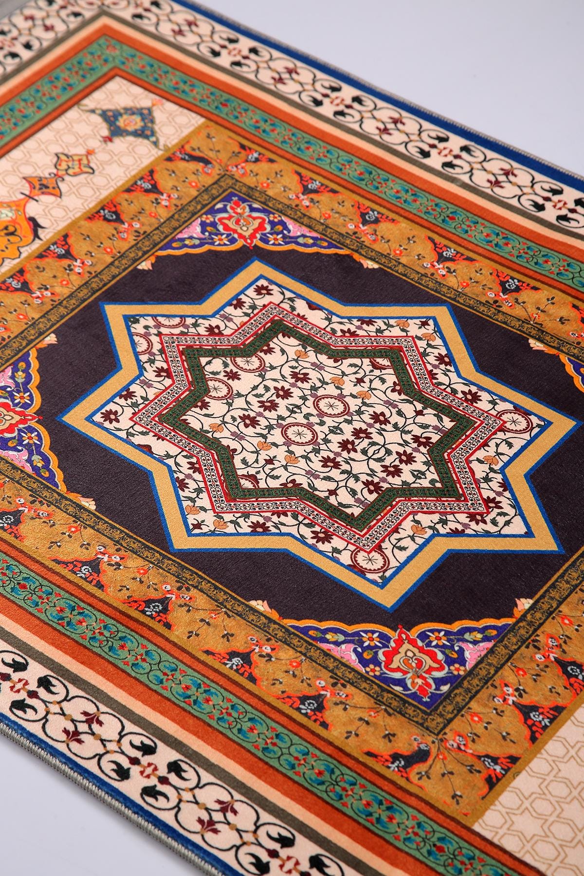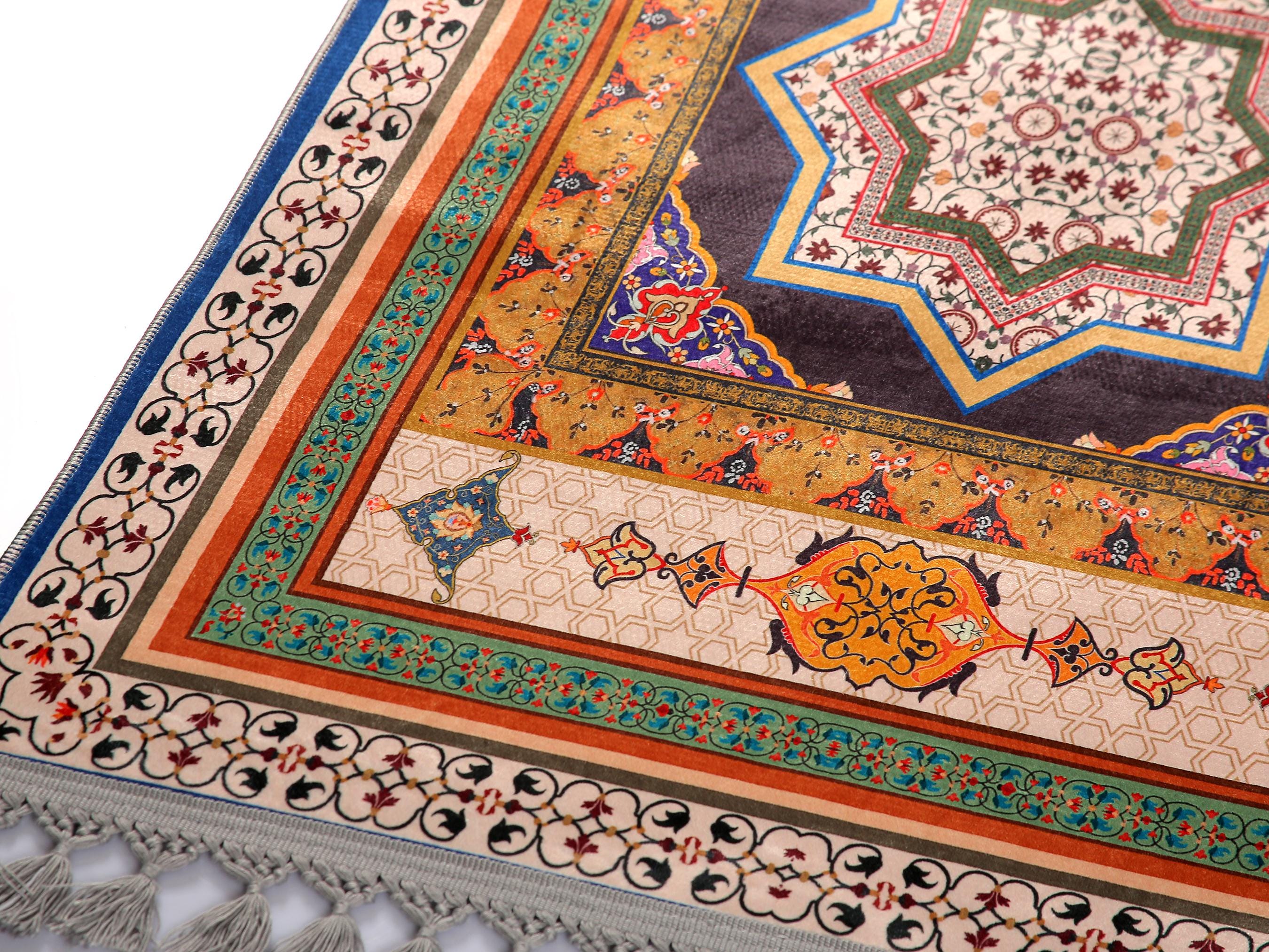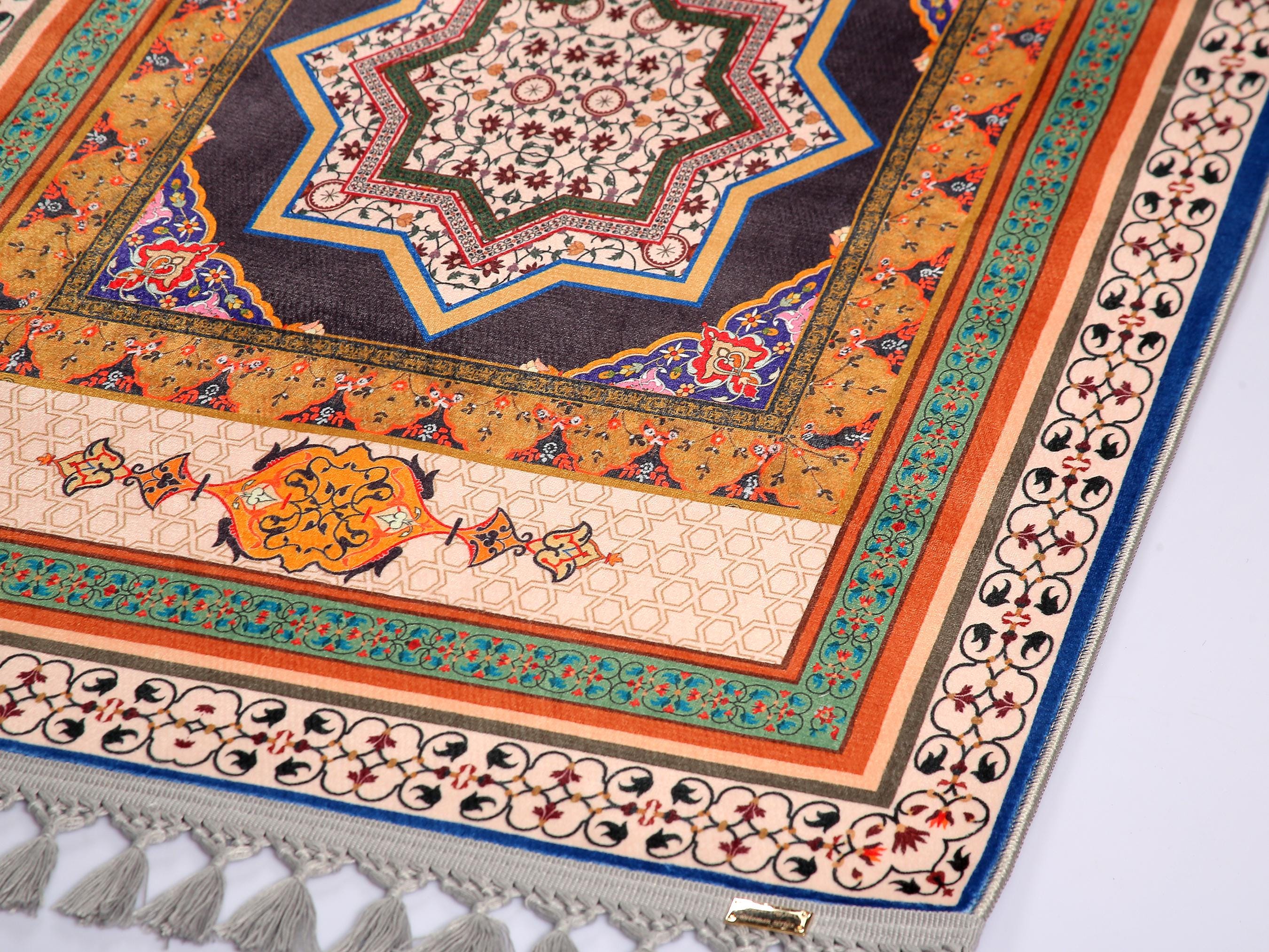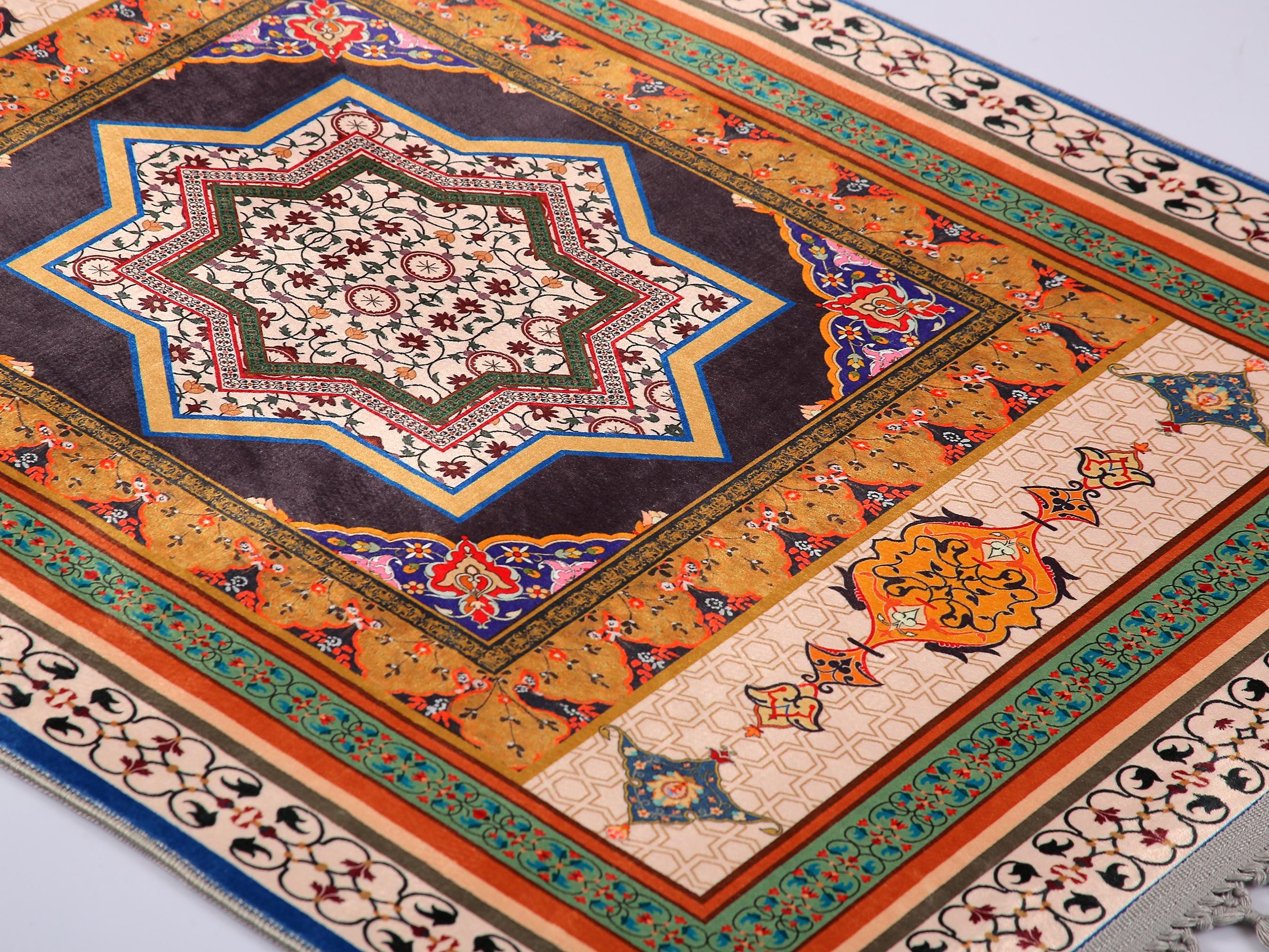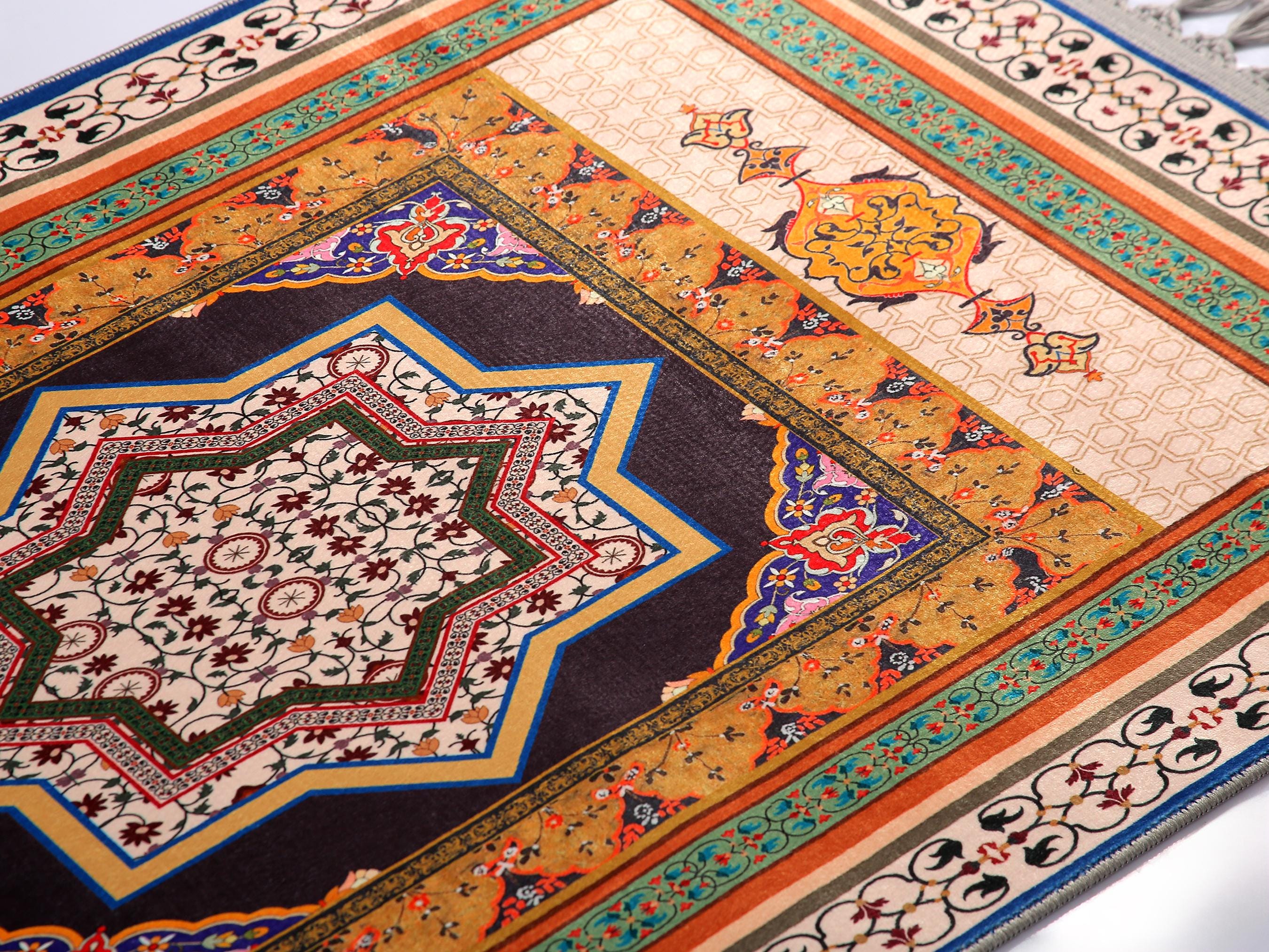 Luxury Prayer Rug – Orange Brown Star Islamic Wall Tapestry