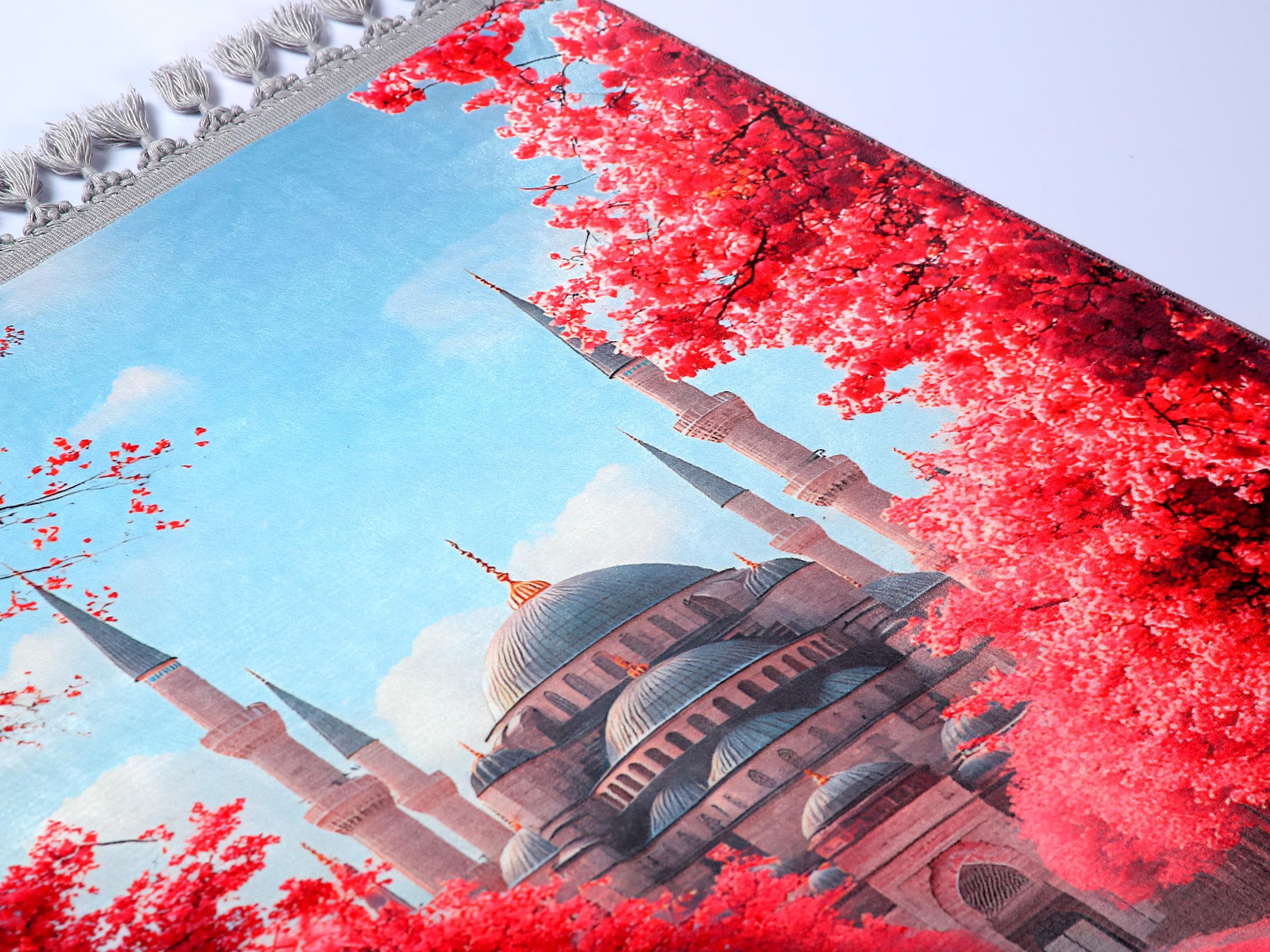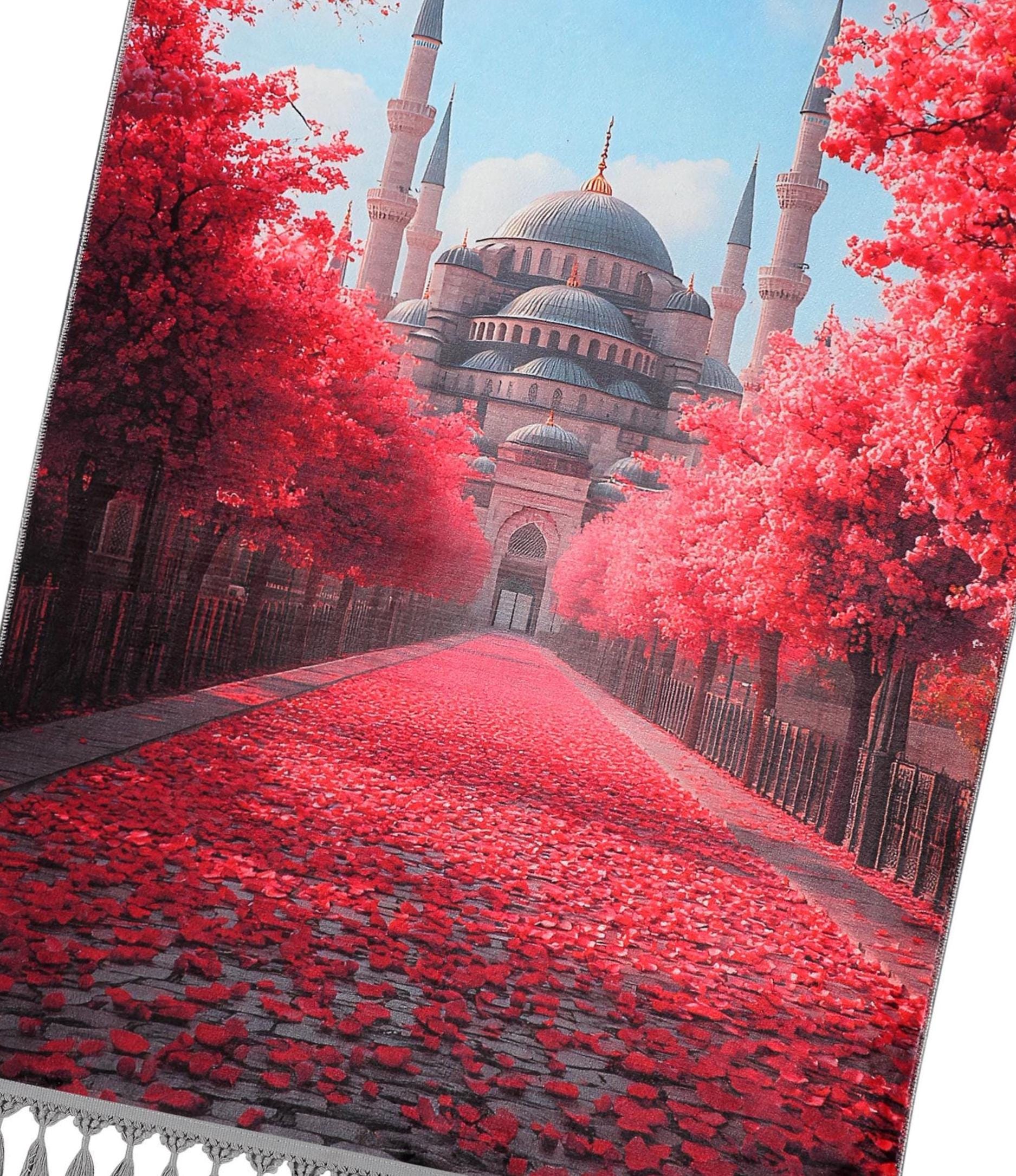 ✨ Bring a piece of Istanbul into your home with this ultra-soft Turkish prayer rug showcasing the iconic Blue Mosque framed by vibrant red trees. Designed for dual use as a prayer mat or a stunning wall tapestry, it’s perfect for adding elegance and spirituality to any space—living rooms, bedrooms, prayer rooms, or offices.