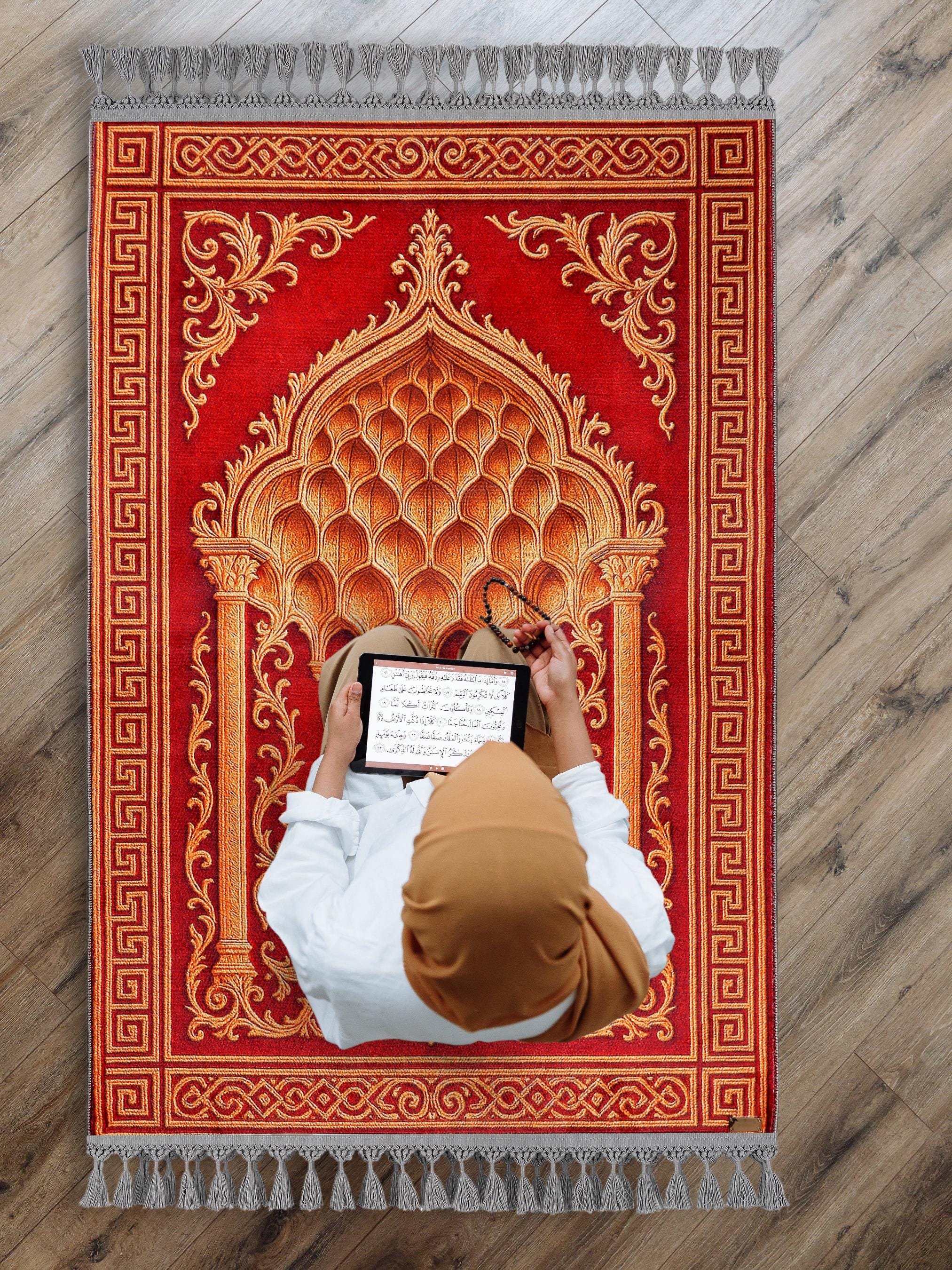 ✨ Bring timeless elegance and spiritual meaning into your home with this stunning Red Golden Islamic Prayer Rug. Perfect as a daily prayer companion or as a luxurious wall tapestry for your sacred spaces.