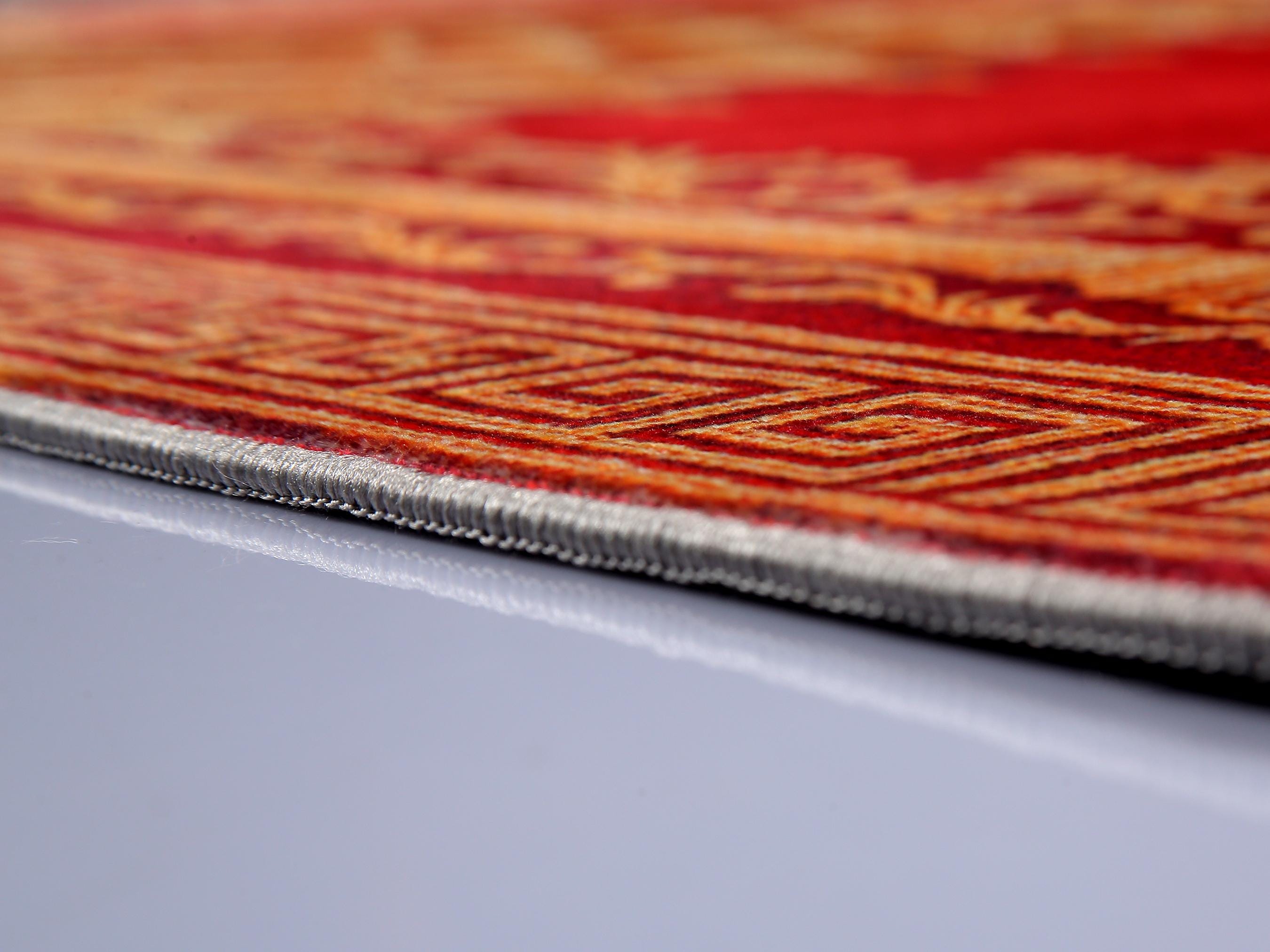 ✅ Surface: Soft chenille texture with vibrant red and golden design