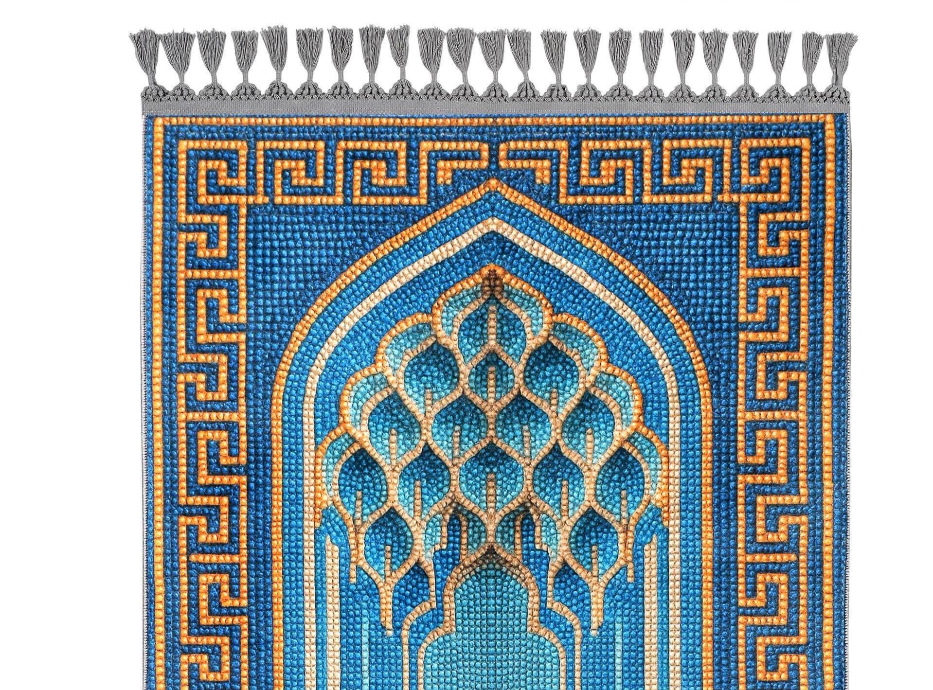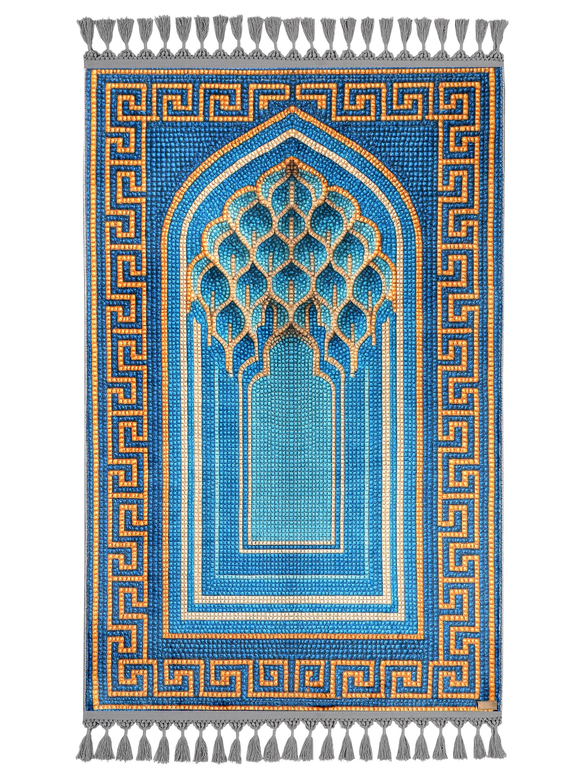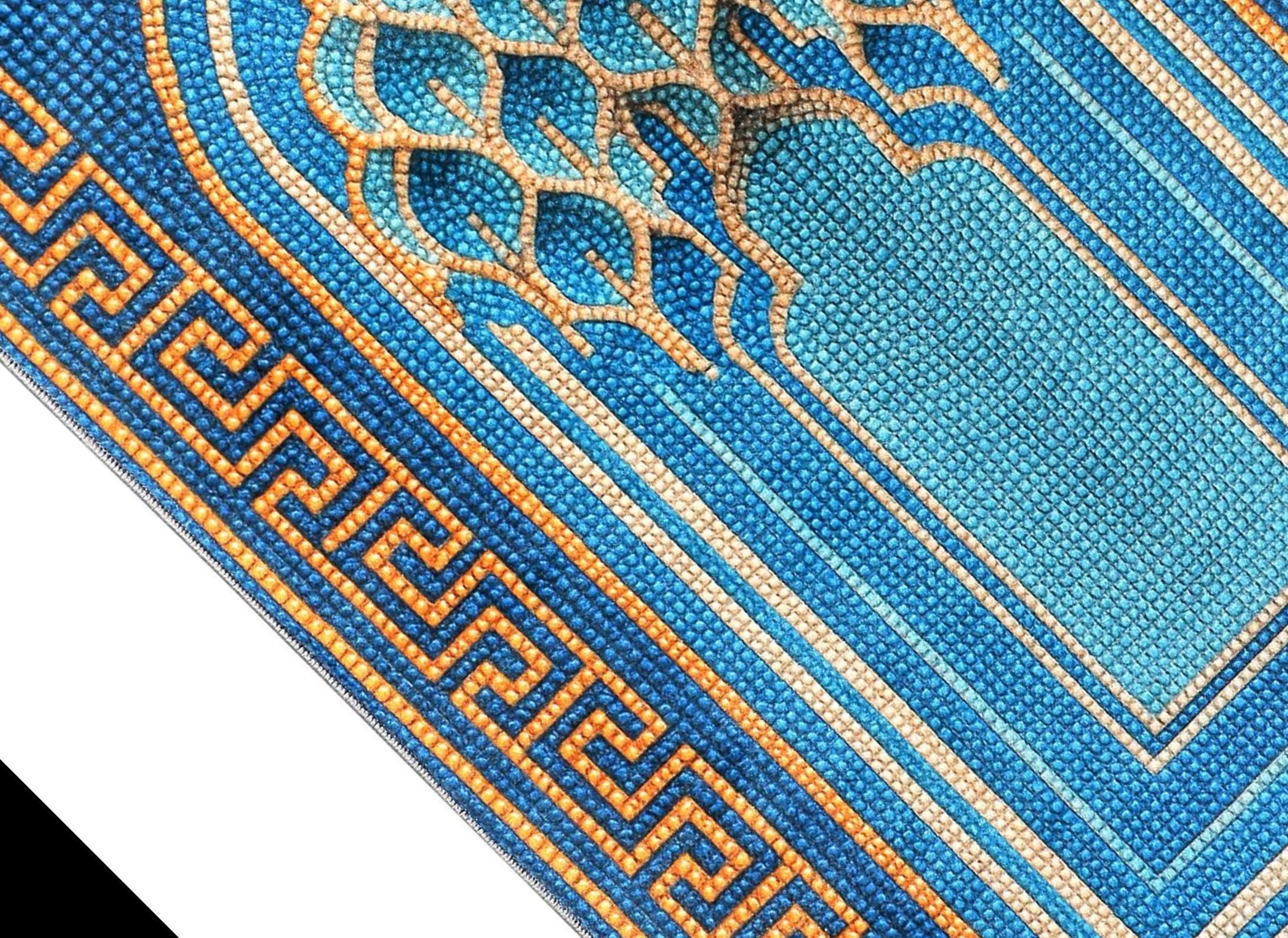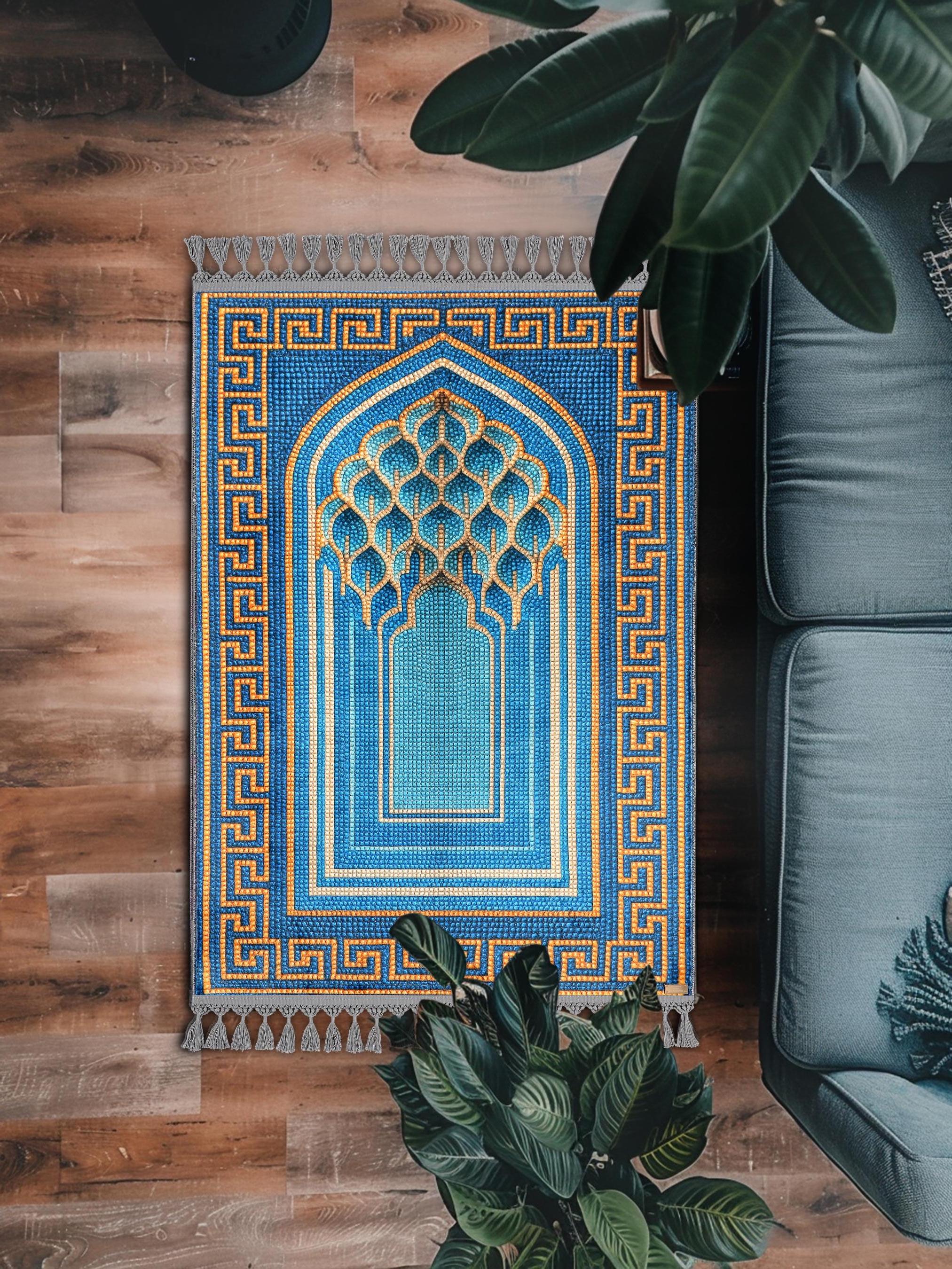 Luxury Prayer Rug & Wall Hanging – Blue Golden Islamic Mat for Prayer Room & Home Décor