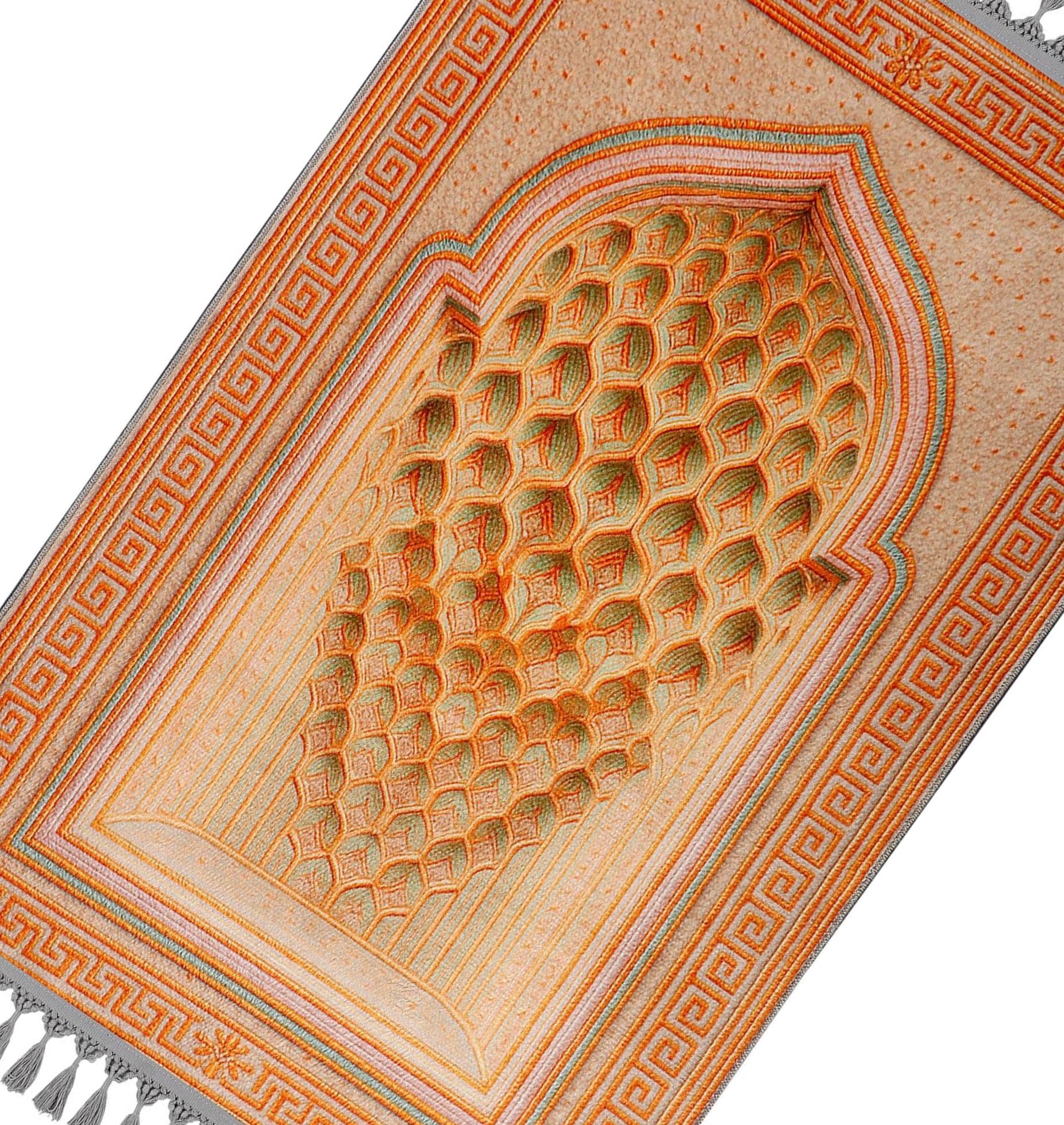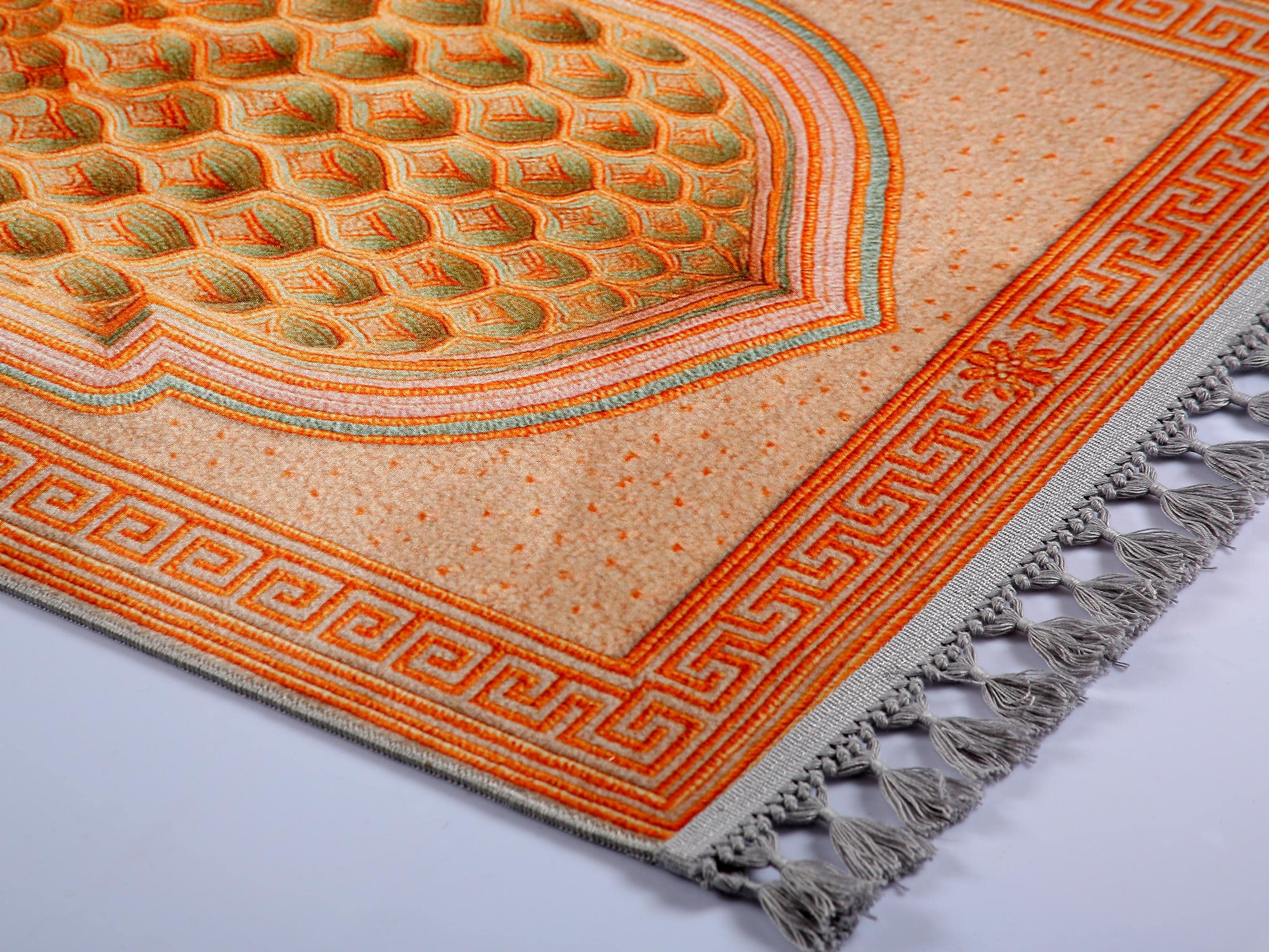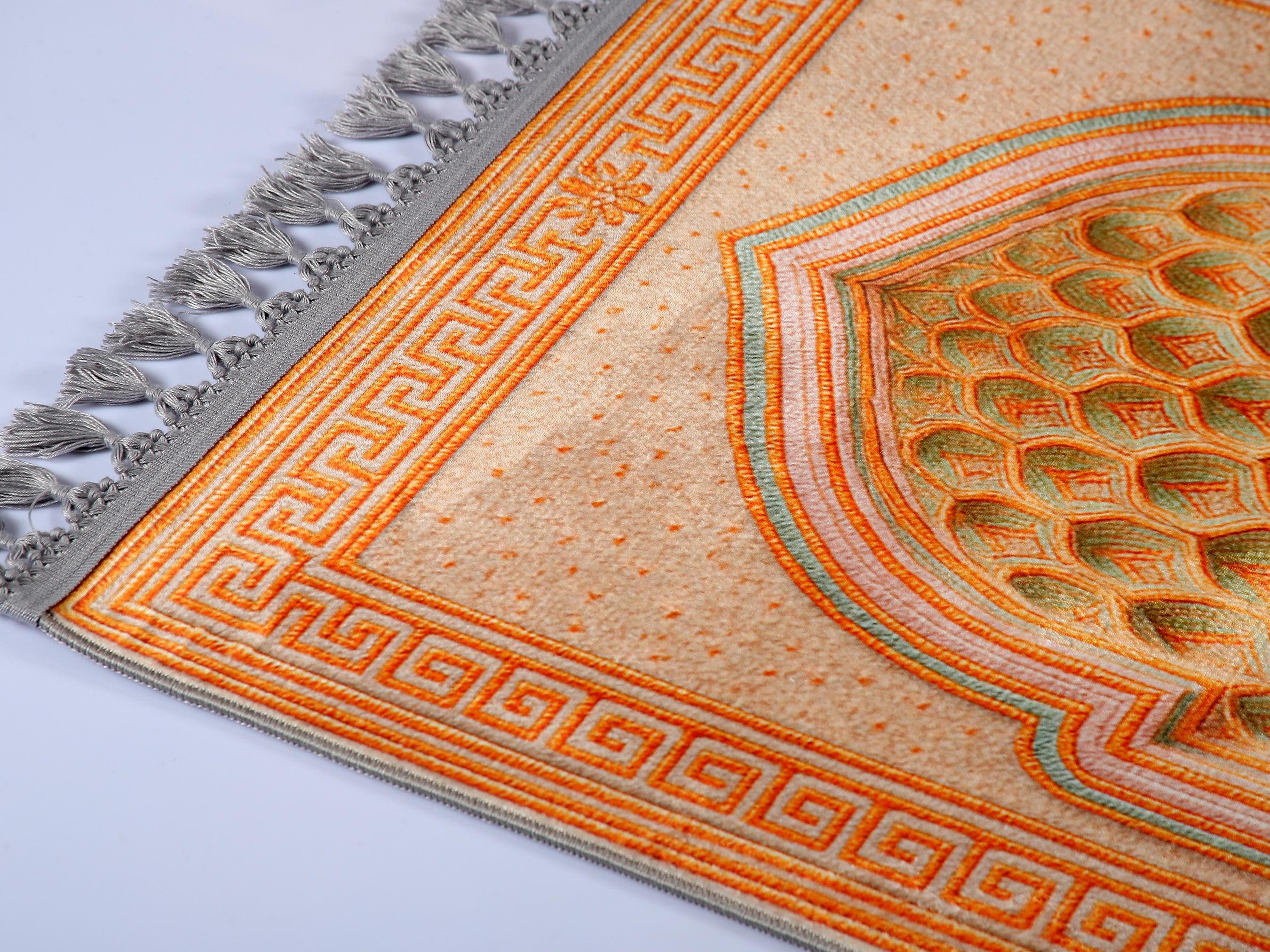 Luxury Prayer Rug & Wall Hanging – Beige Orange Islamic Carpet for Prayer Room & Home Décor