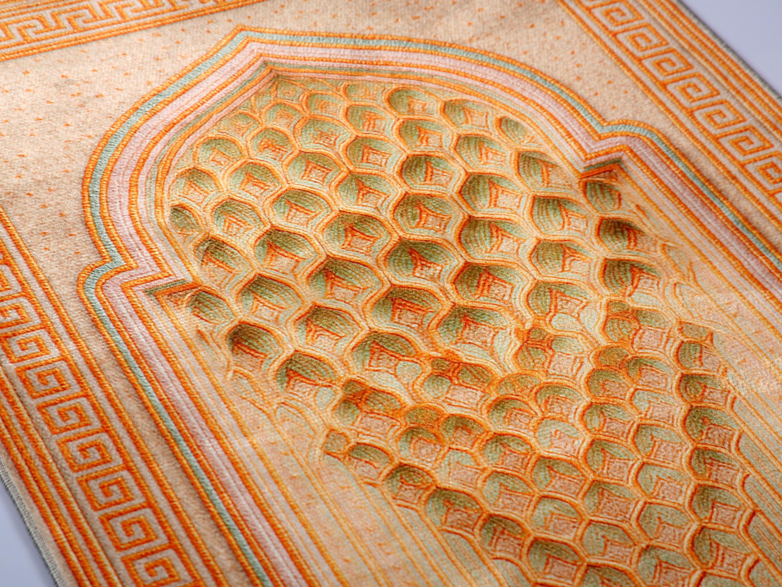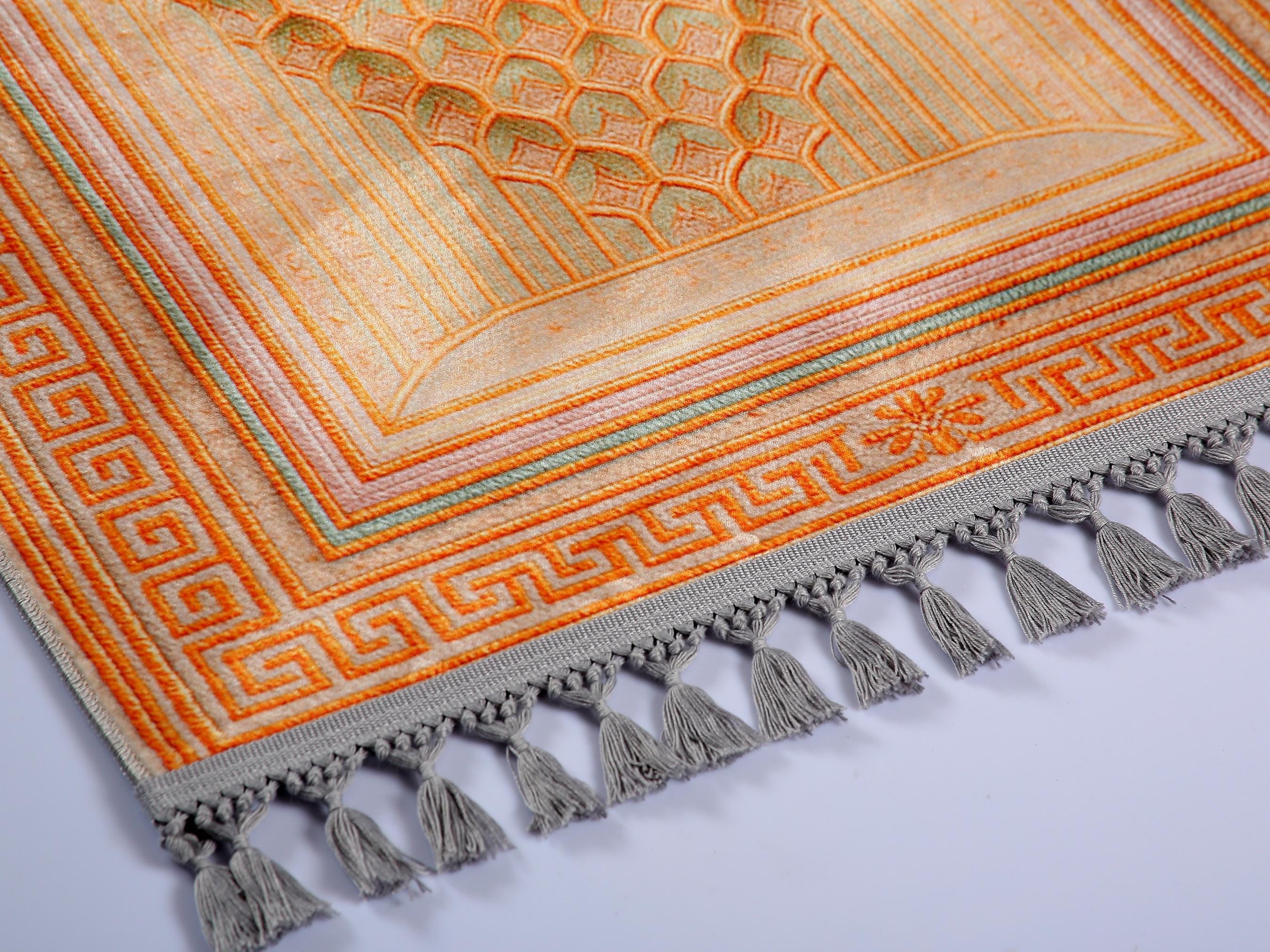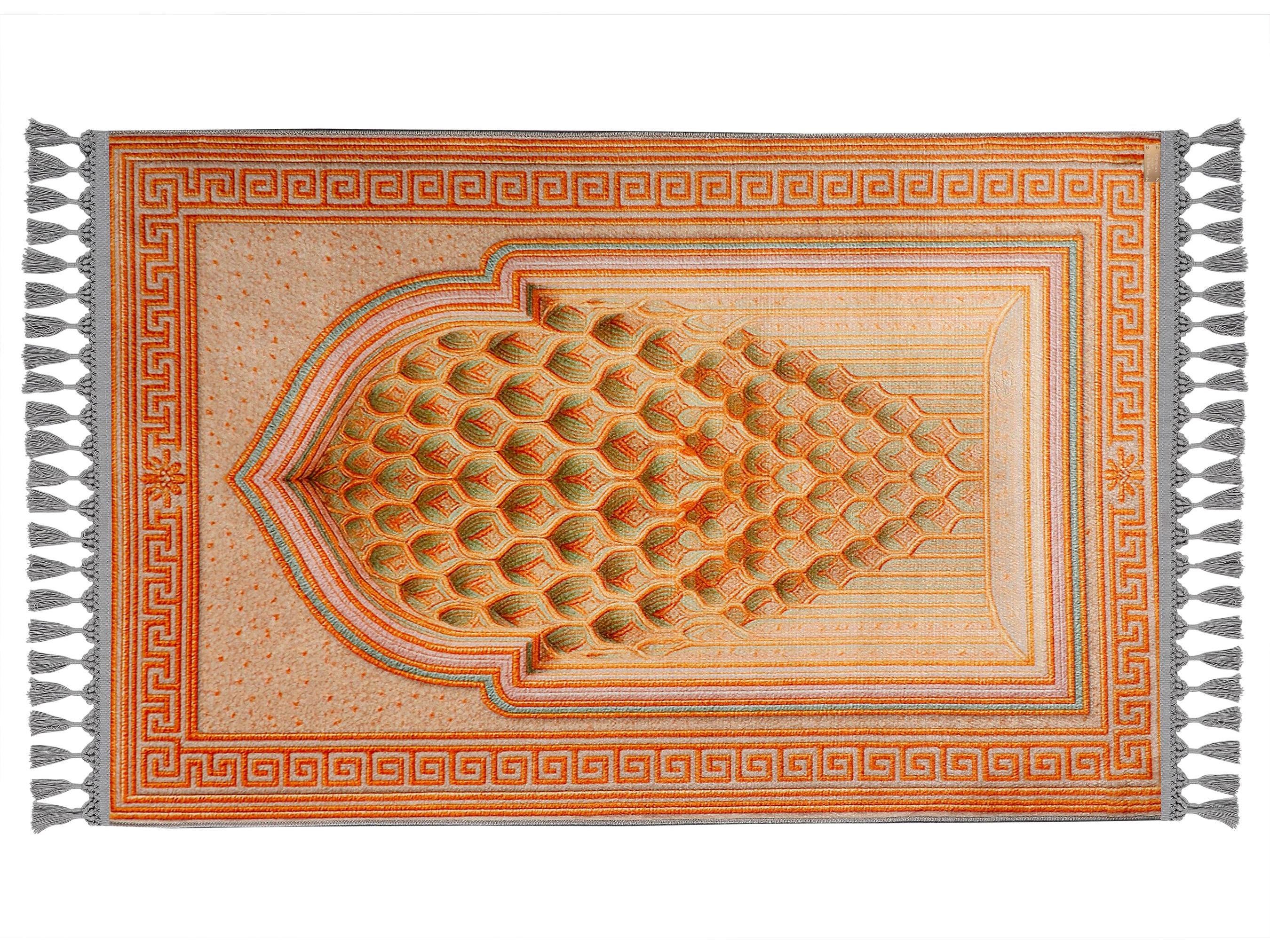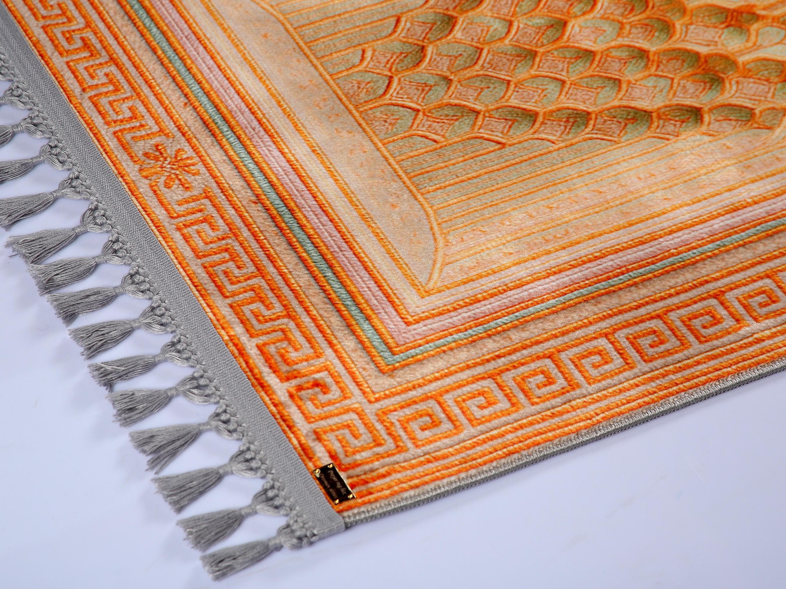 Luxury Prayer Rug & Wall Hanging – Beige Orange Islamic Carpet for Prayer Room & Home Décor