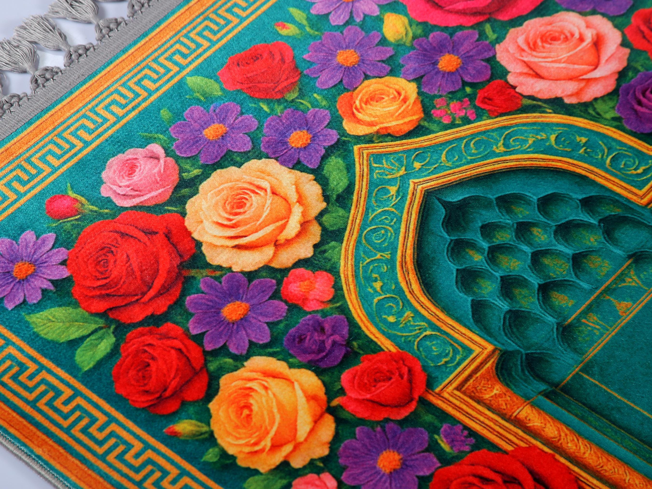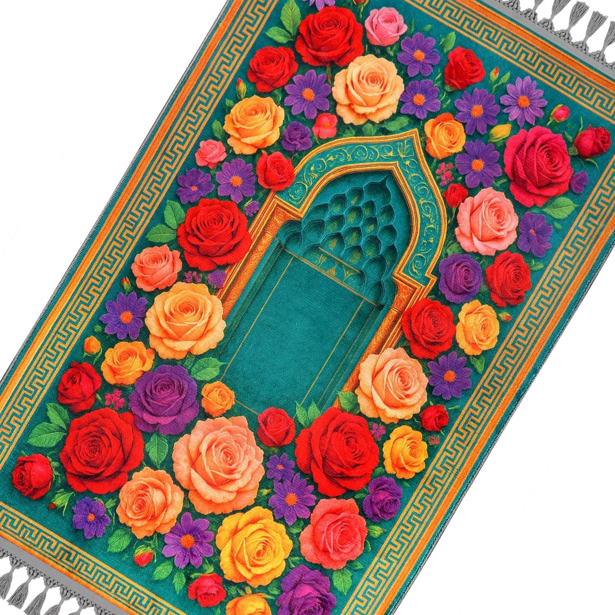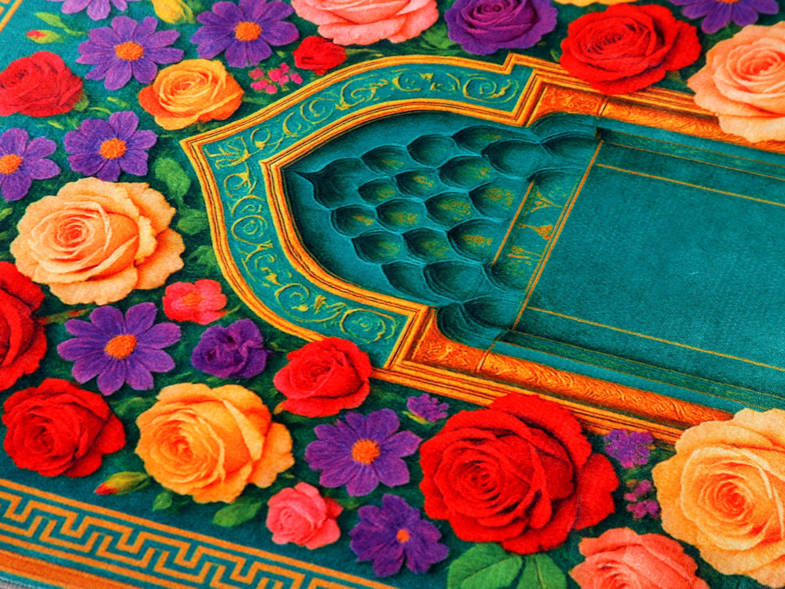 Luxury Prayer Rug – Turquoise Floral Islamic Carpet for Home & Prayer Room