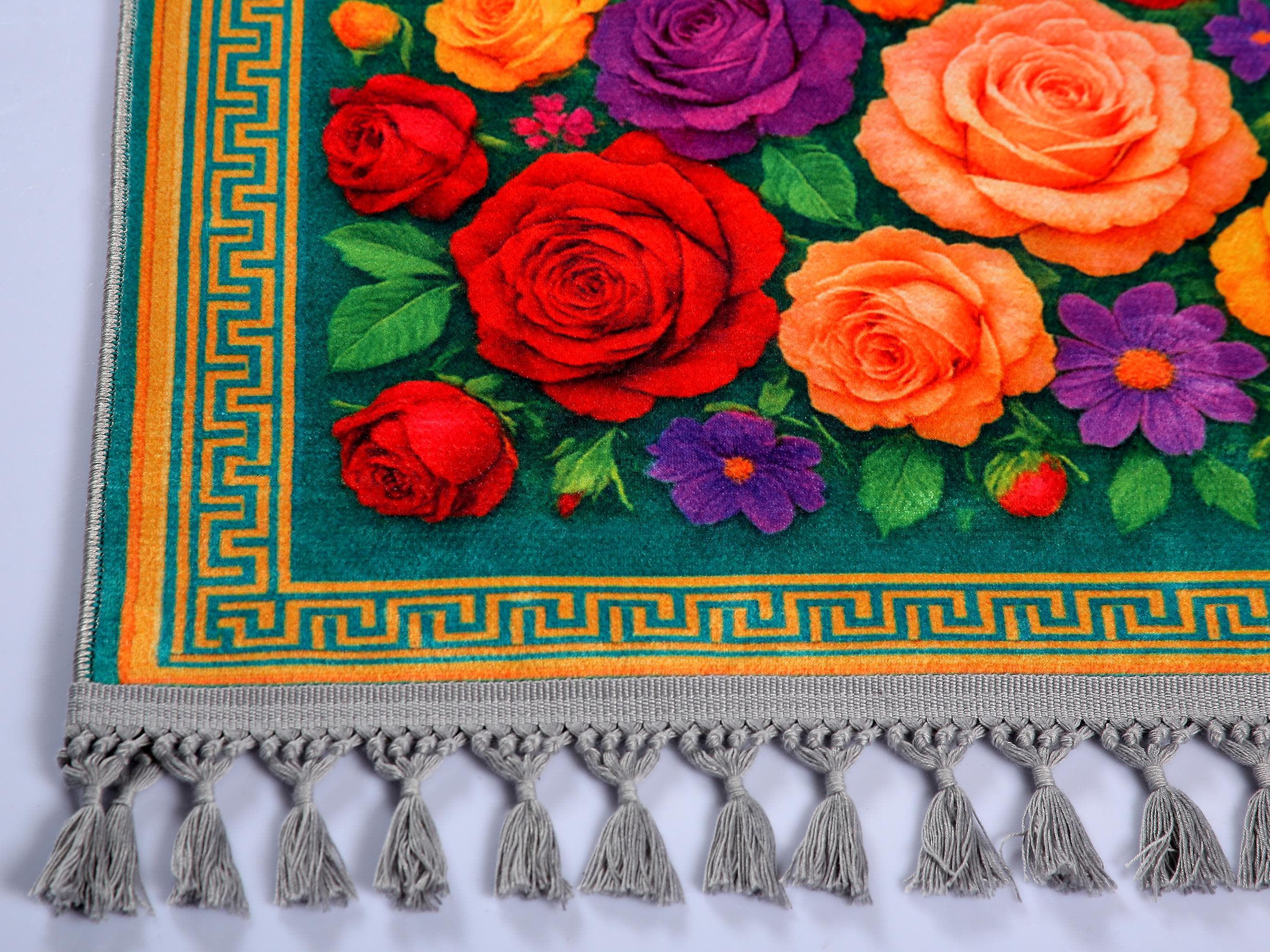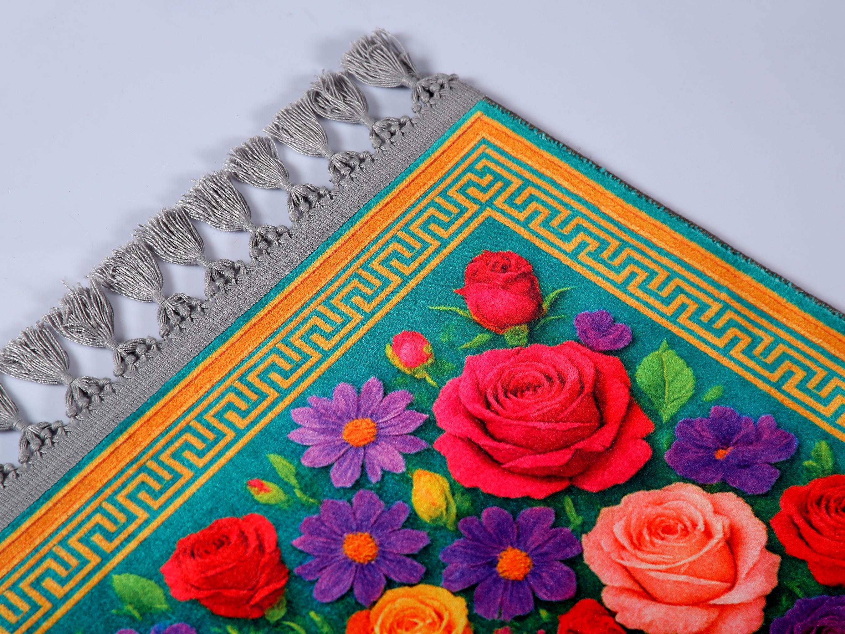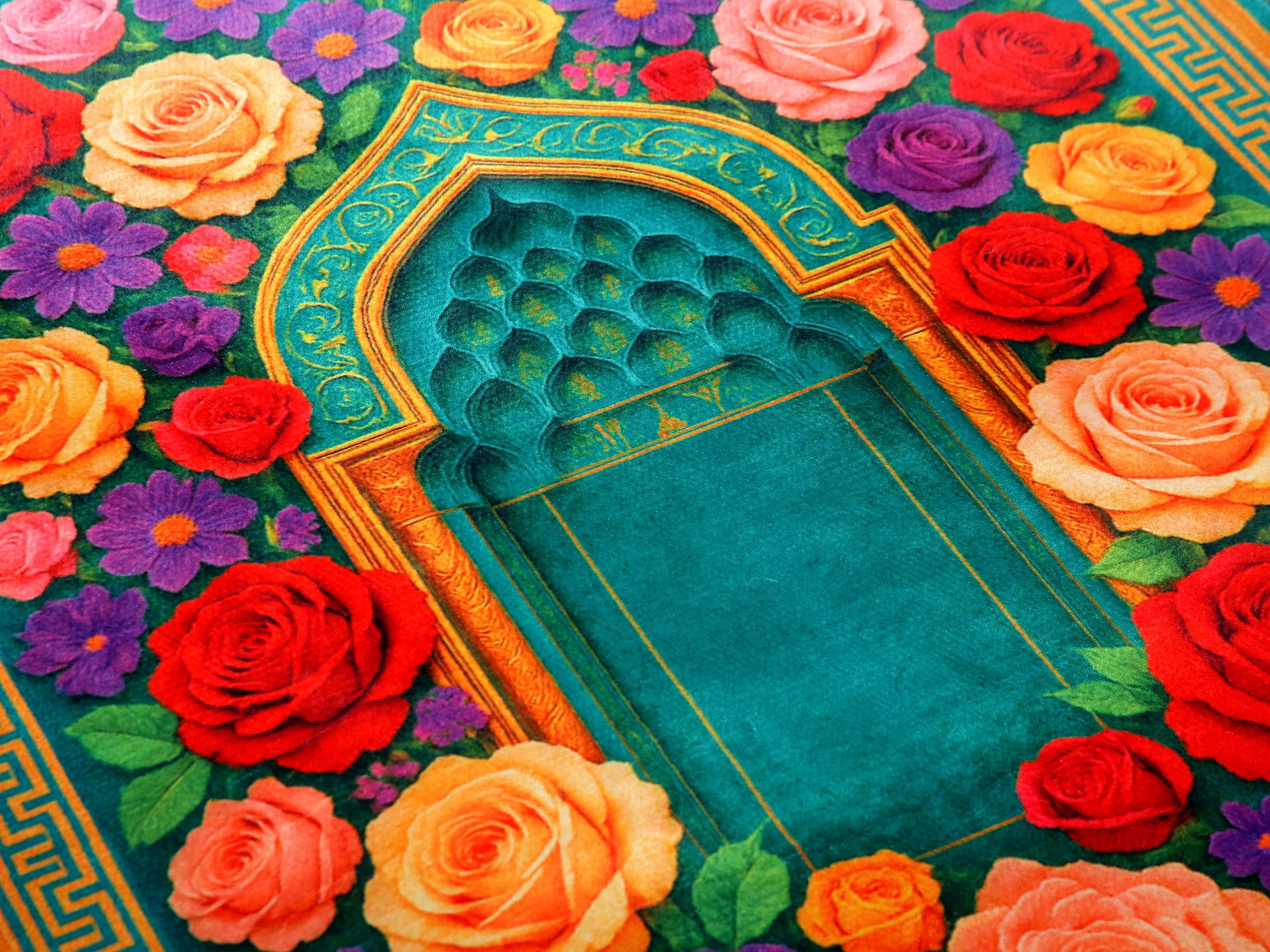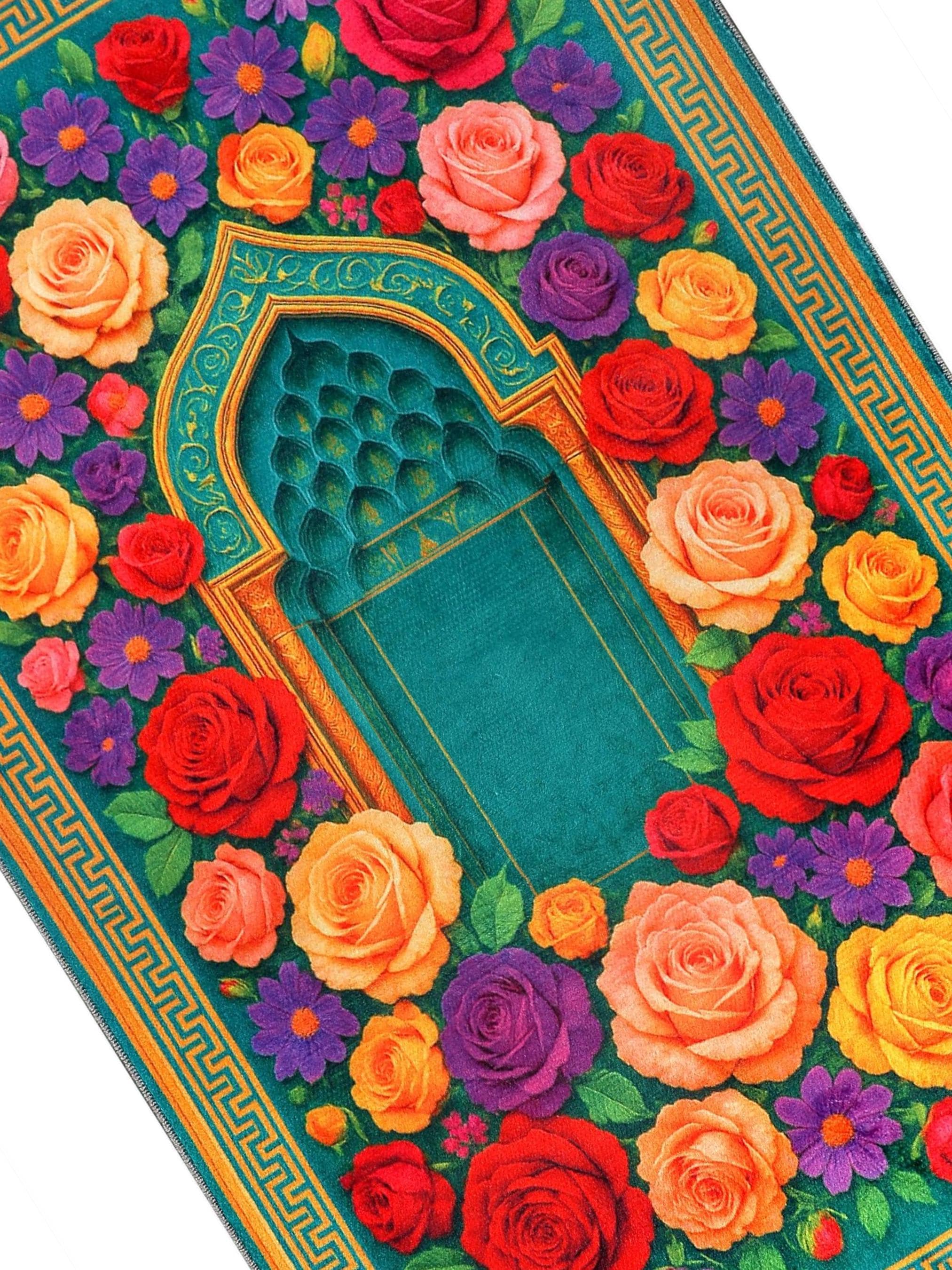Luxury Prayer Rug – Turquoise Floral Islamic Carpet for Home & Prayer Room