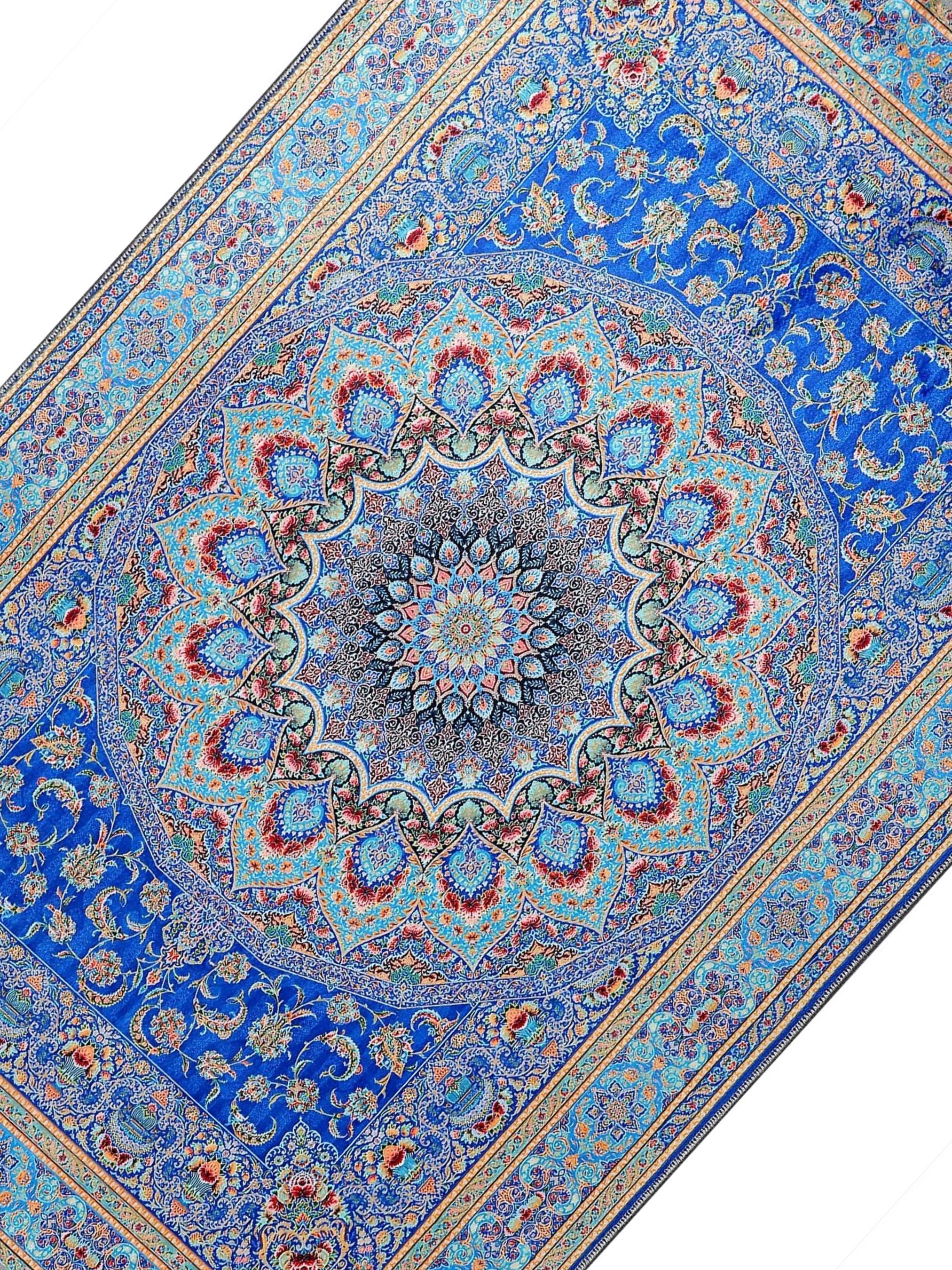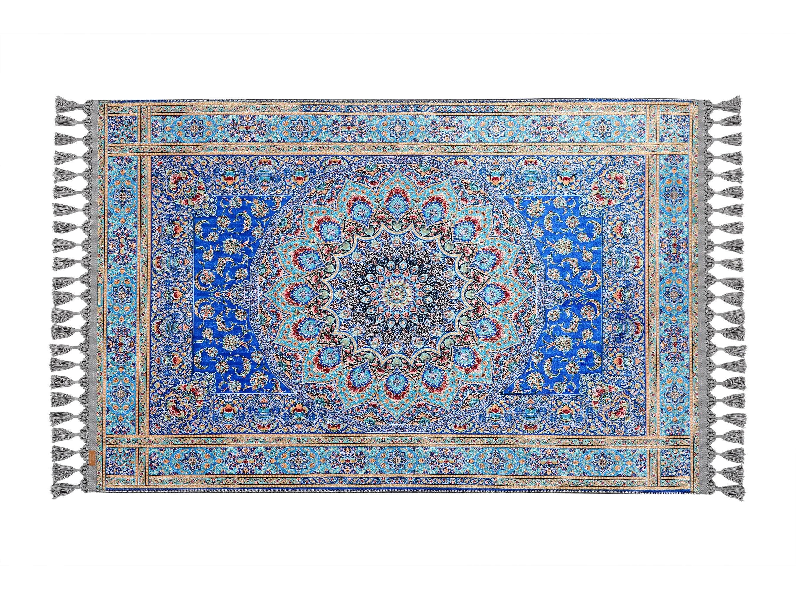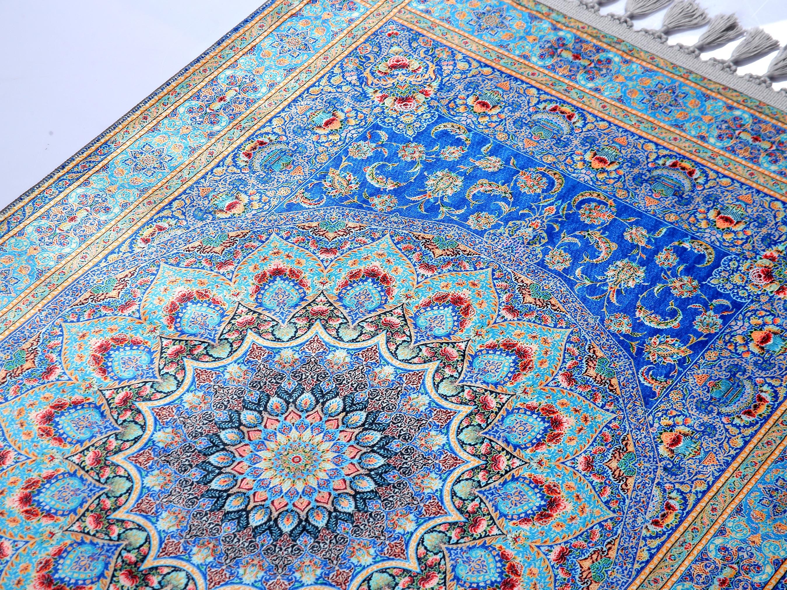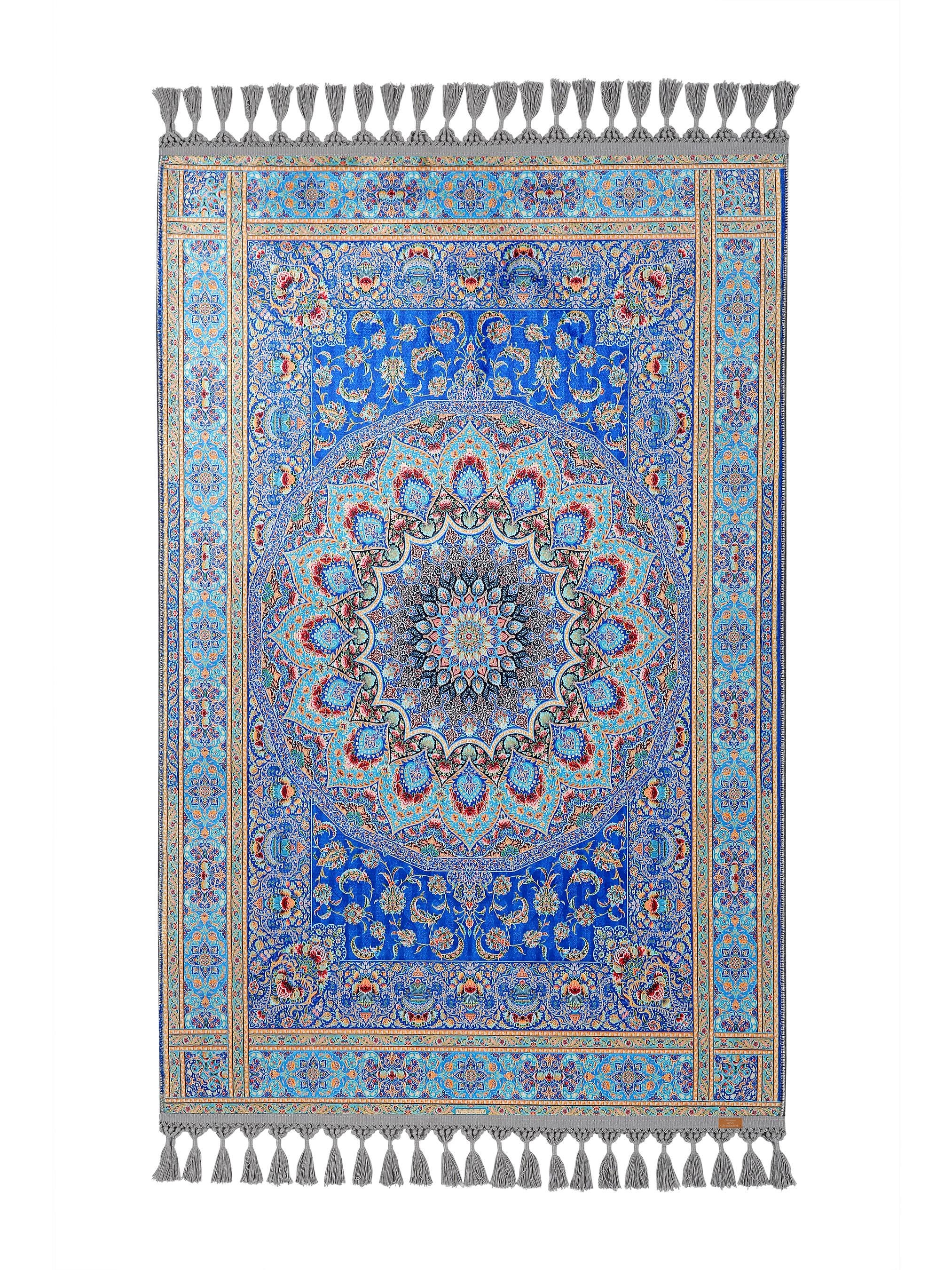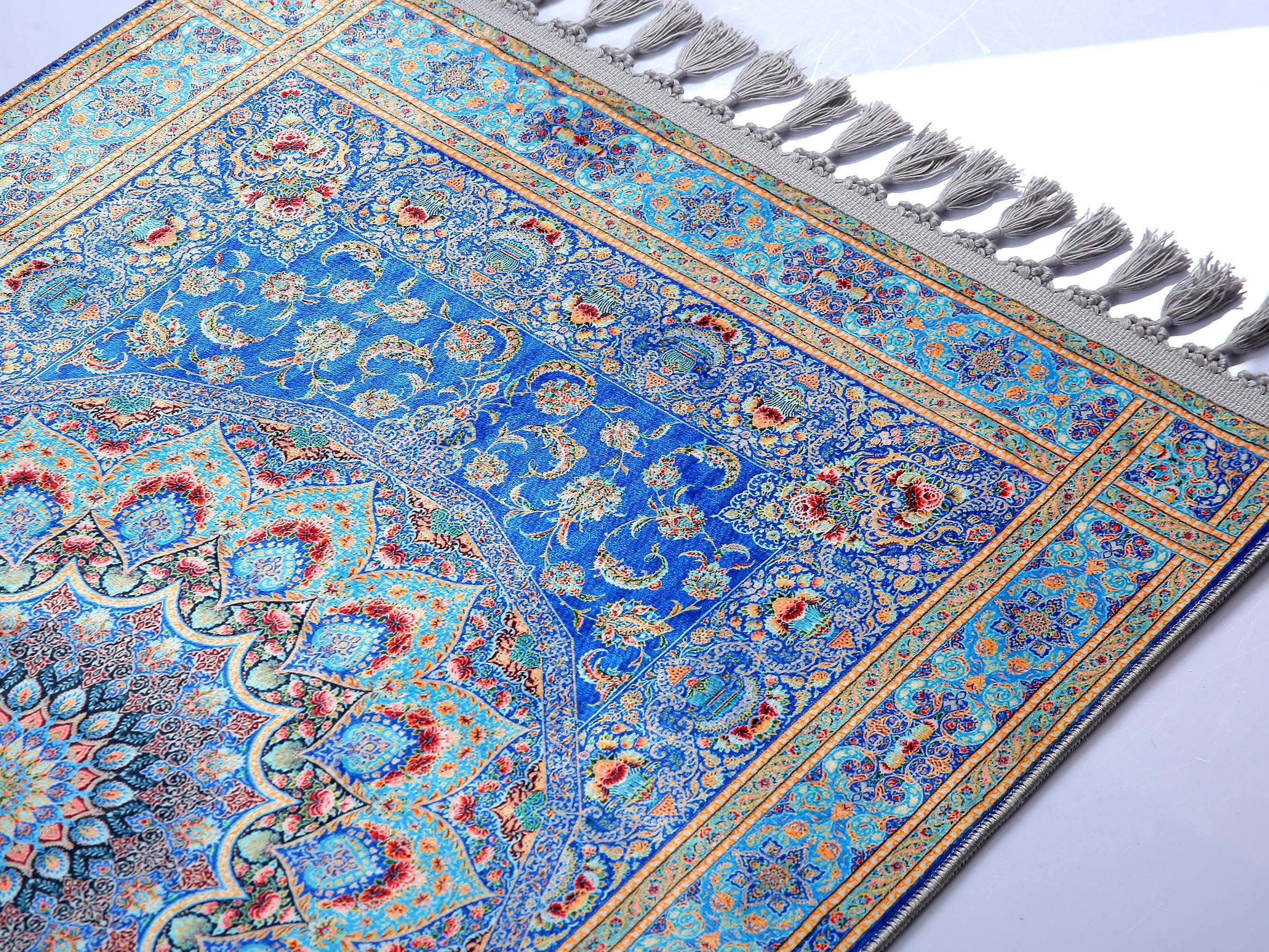 Soft Blue Prayer Rug with Low-Pile Textured Surface | Non-Slip Base | Machine Washable