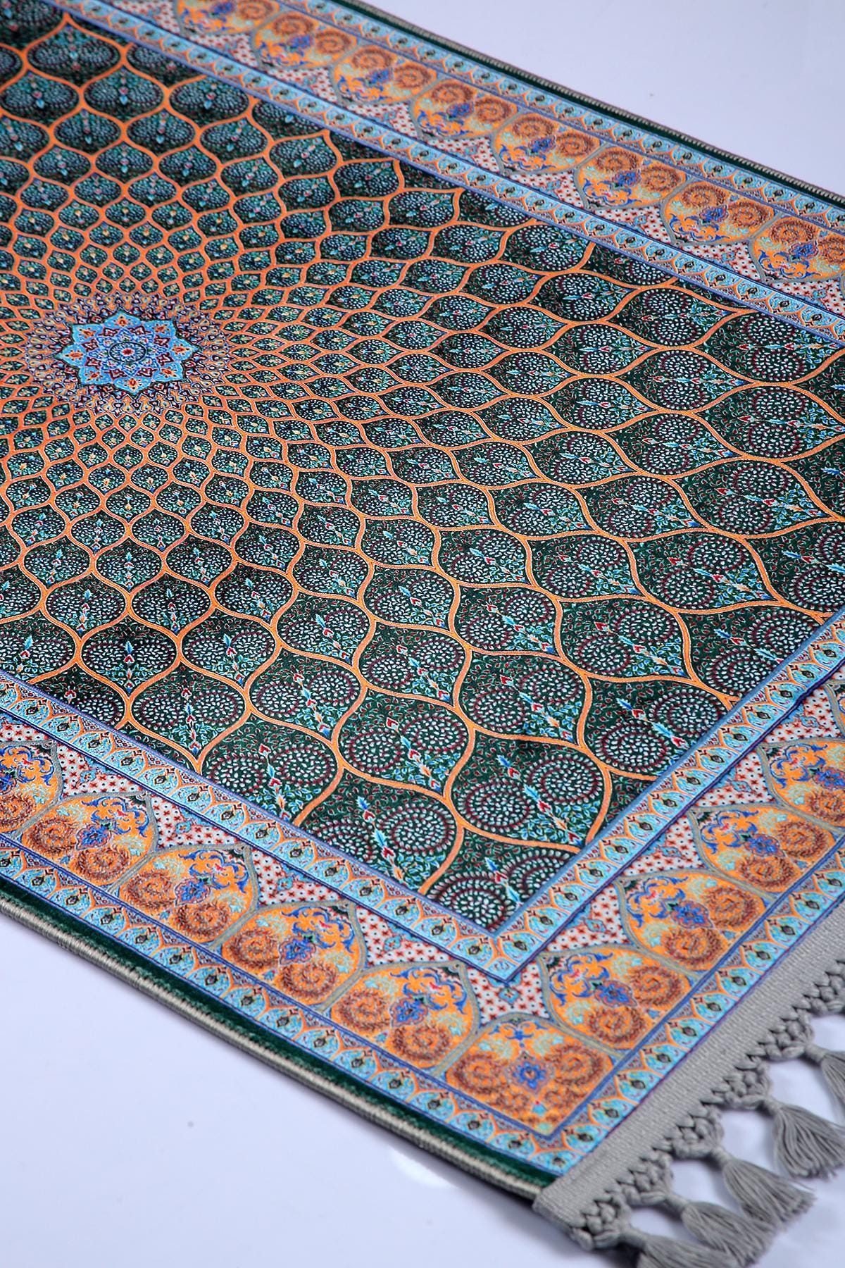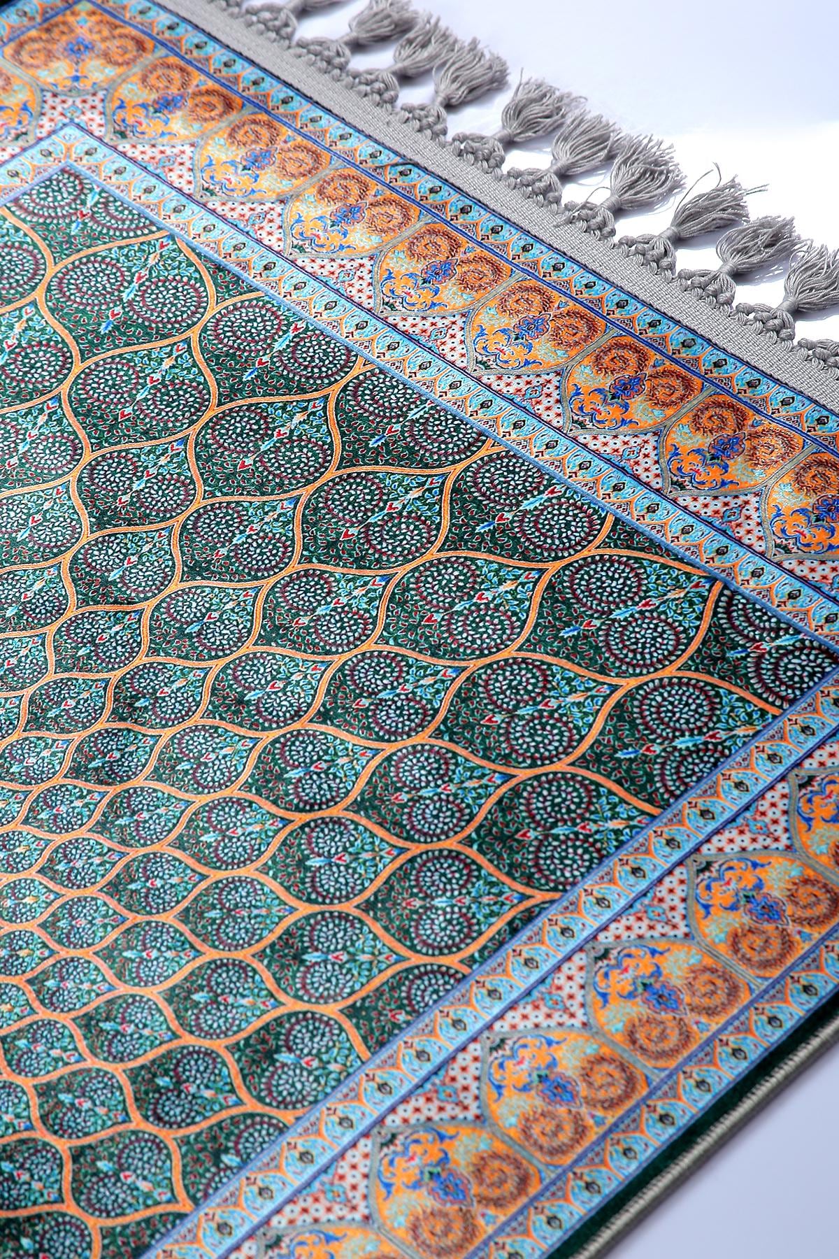 This soft green Turkish prayer rug combines comfort, elegance, and durability. Designed with a non-slip cotton base, it stays secure on any floor type, making it ideal for bedrooms, entryways, kitchens, and kids’ rooms. Crafted with premium materials, it offers a gentle, supportive surface for daily salah while enhancing your home décor.