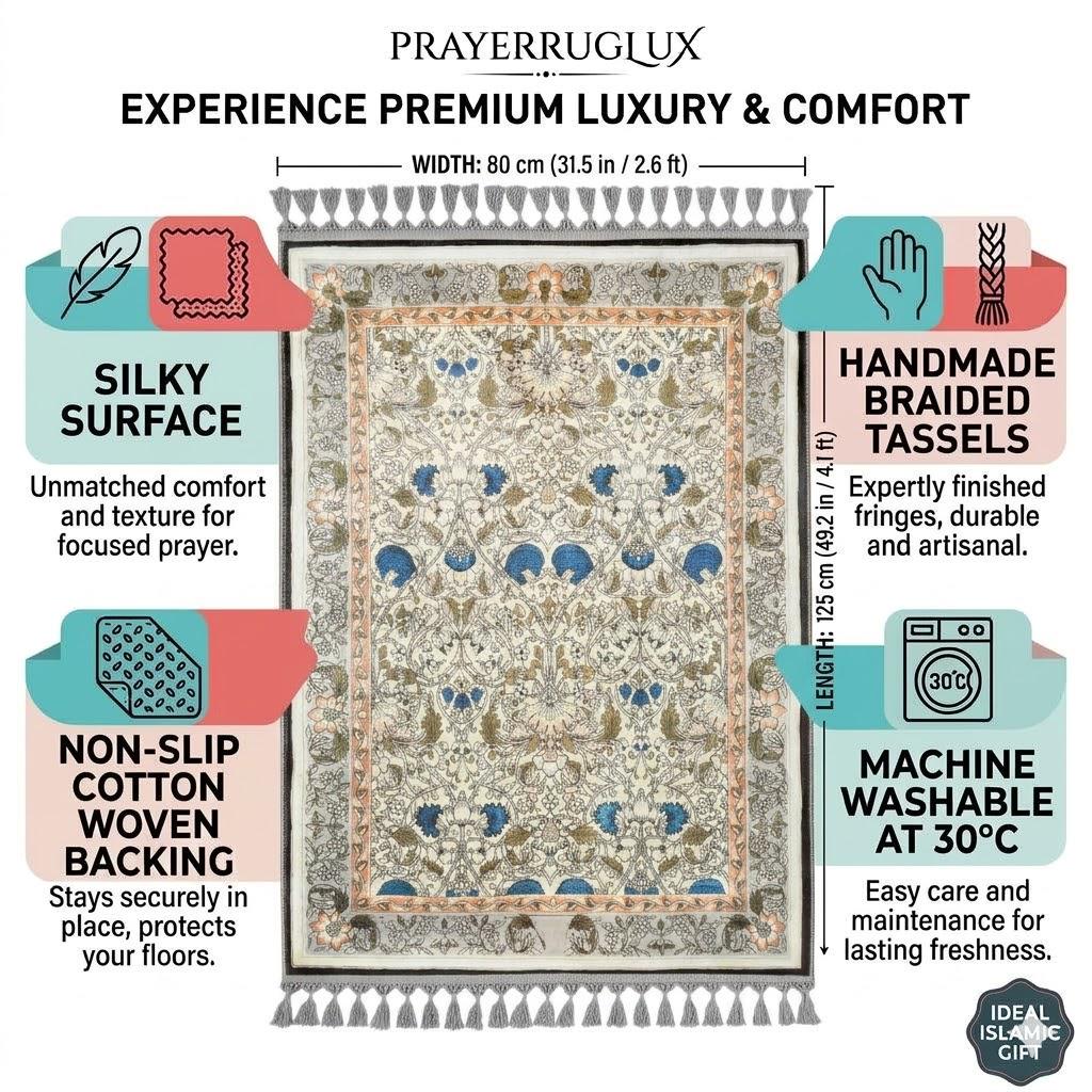 ☁️ Soft silky surface ensures a comfortable and serene experience during every prayer.