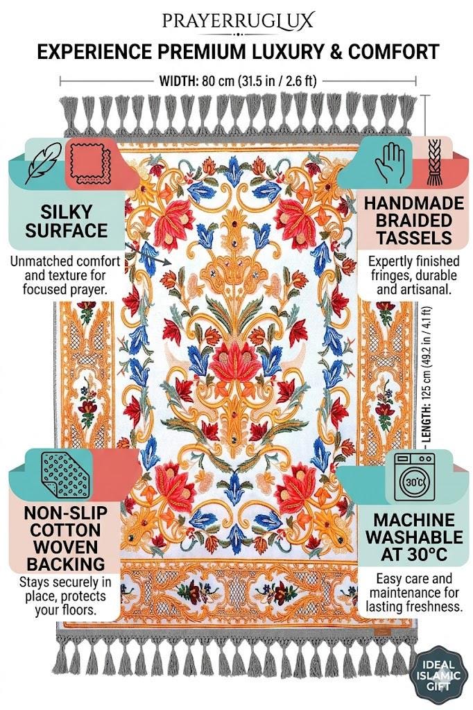 We offer wholesale pricing for bulk Turkish prayer rug orders — perfect for mosques, events, retailers, and Islamic gift shops. Contact us for rates, production time, and customization options.