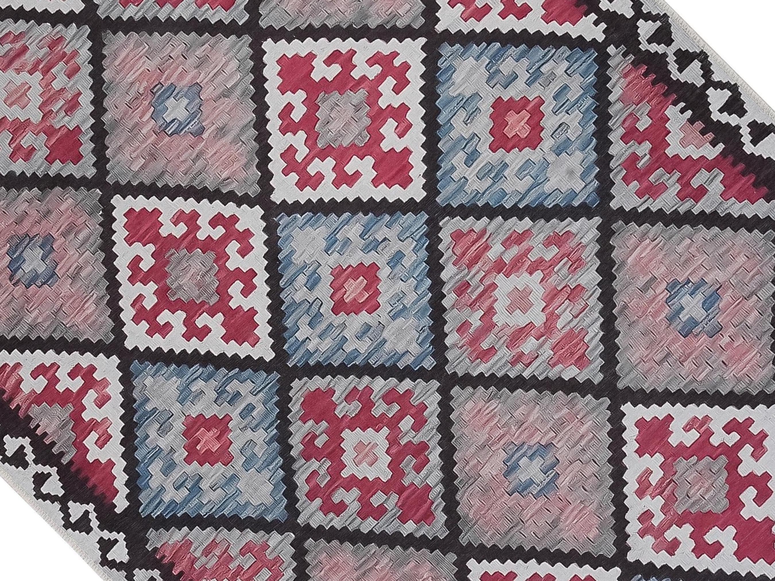 Bring timeless elegance to your home with this red and blue Turkish kilim style rug. Featuring intricate Anatolian geometric patterns, it blends cultural heritage with versatile design. Perfect for living rooms, bedrooms, entryways, or as a decorative wall hanging, this rug is both a stylish statement piece and a practical choice for everyday living.