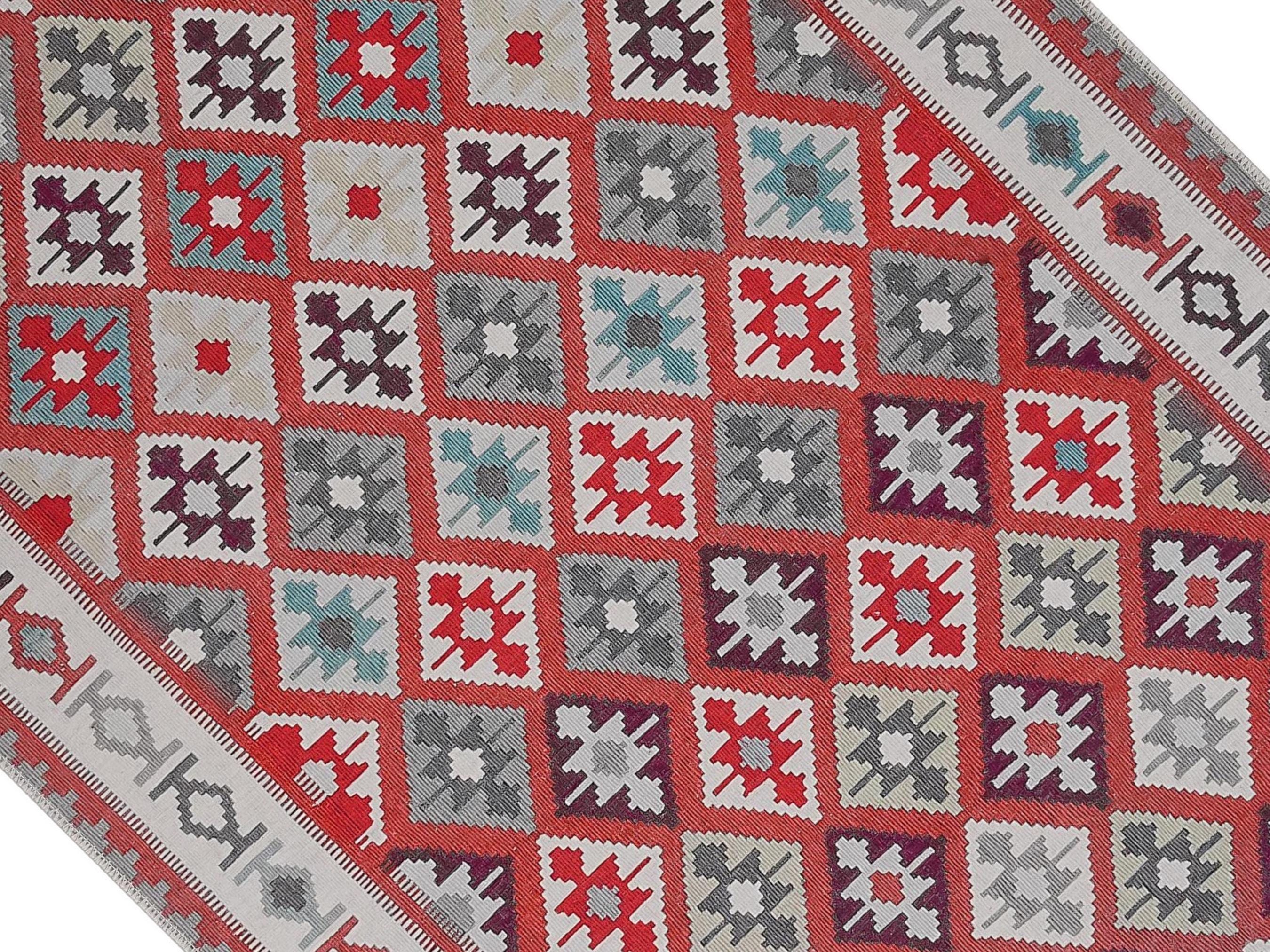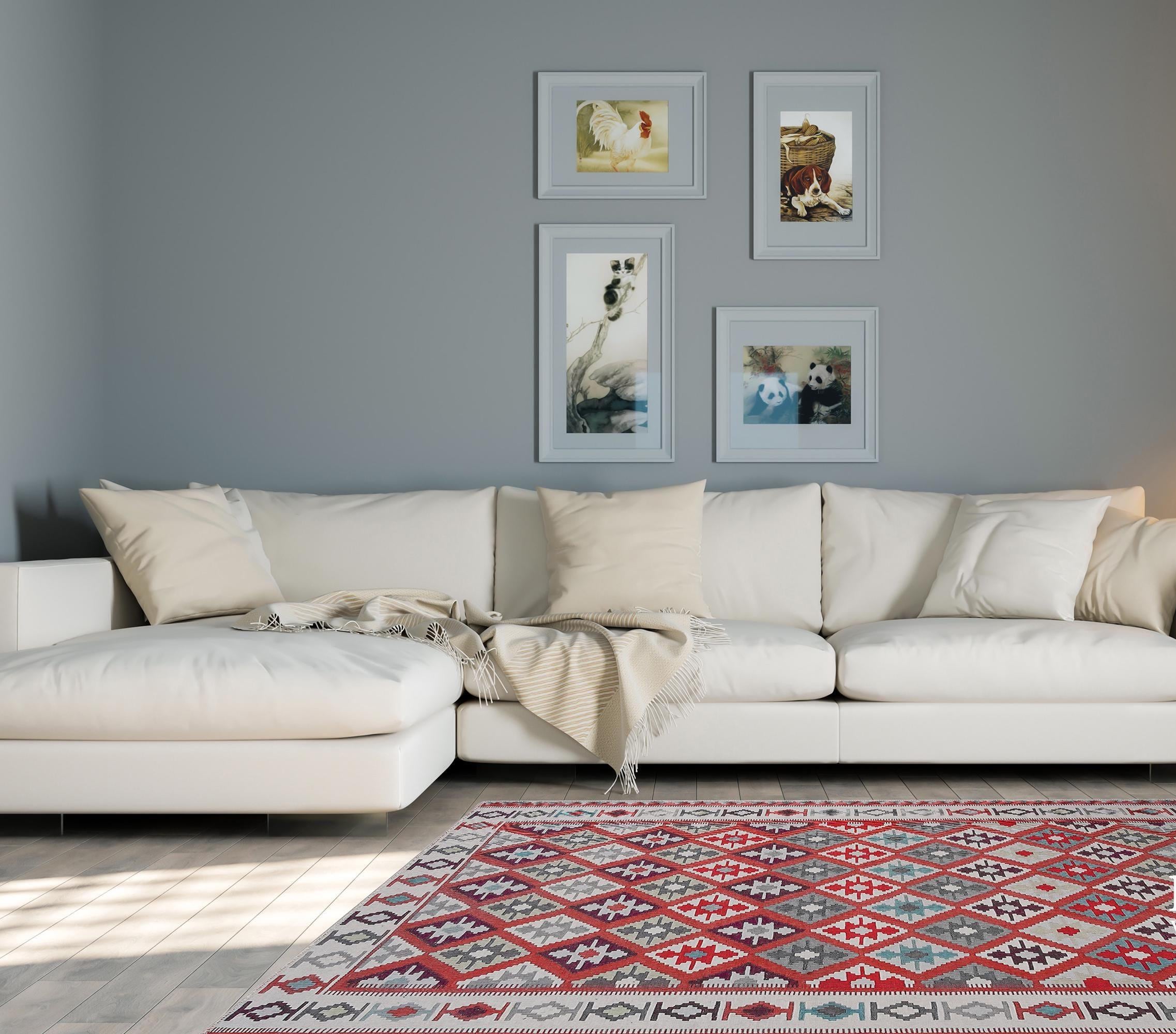Bring timeless elegance to your home with this red and blue Turkish kilim style rug. Featuring intricate Anatolian geometric patterns, it blends cultural heritage with versatile design. Perfect for living rooms, bedrooms, entryways, or as a decorative wall hanging, this rug is both a stylish statement piece and a practical choice for everyday living.