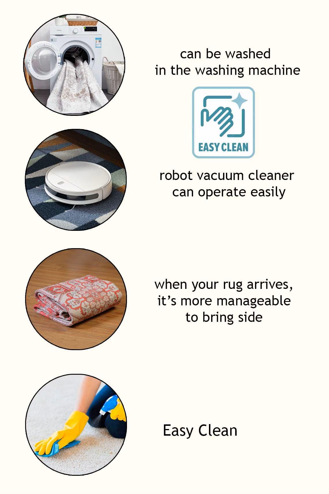 🧼 Cleaning: Machine washable at 30 °C – Robot vacuum compatible