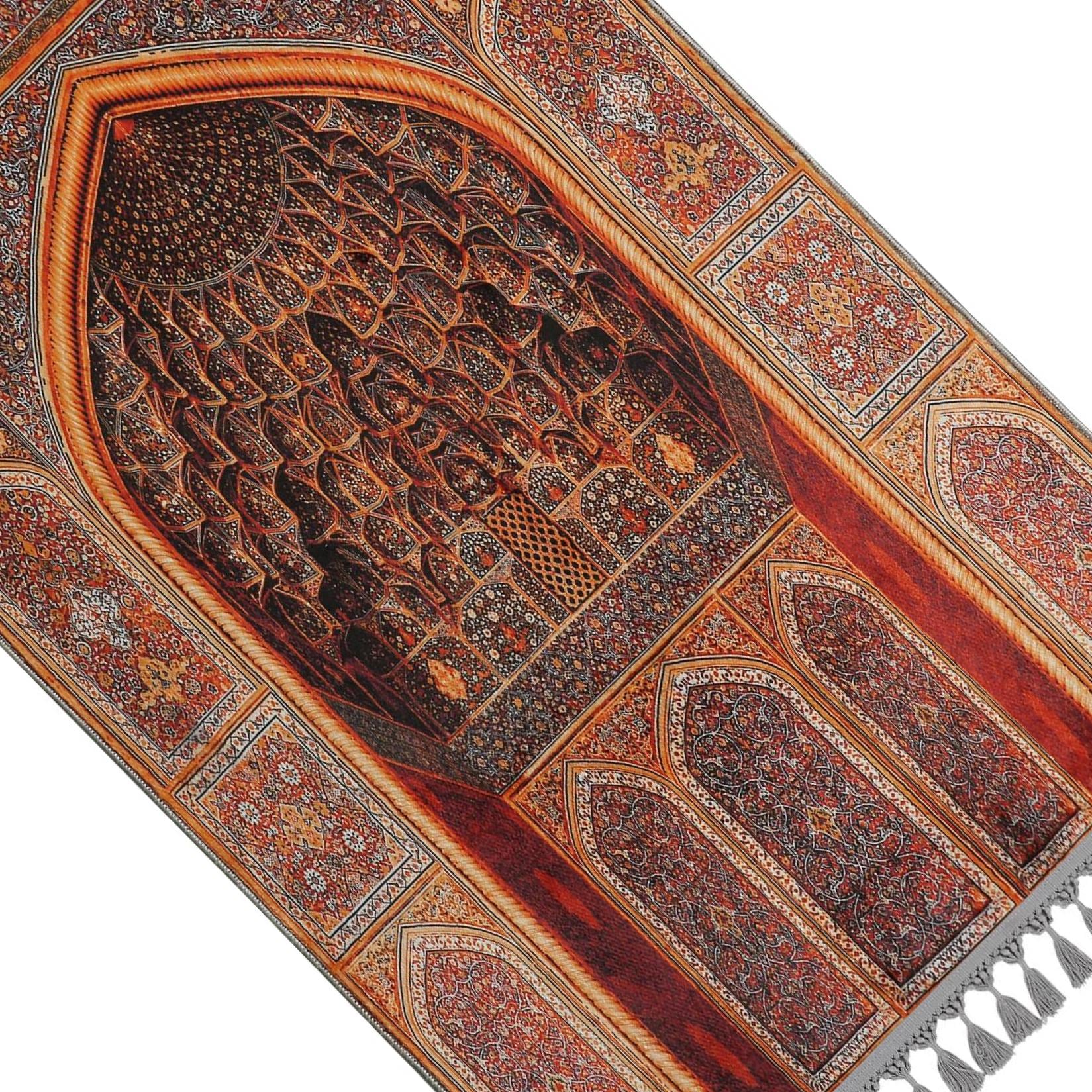 🧡 Prayer Rug : Turkish Orange Anatolian Pattern Mihrab, Islamic Prayer Mat Eid Ramadan Gift