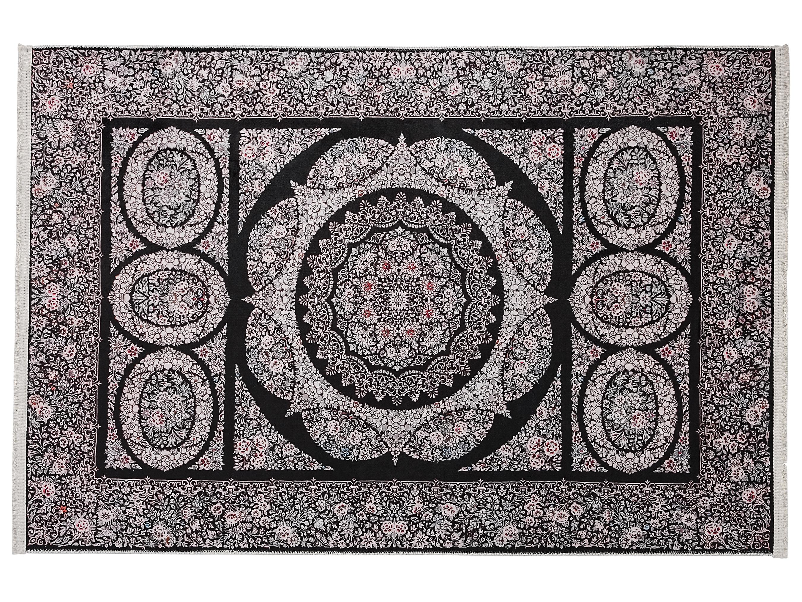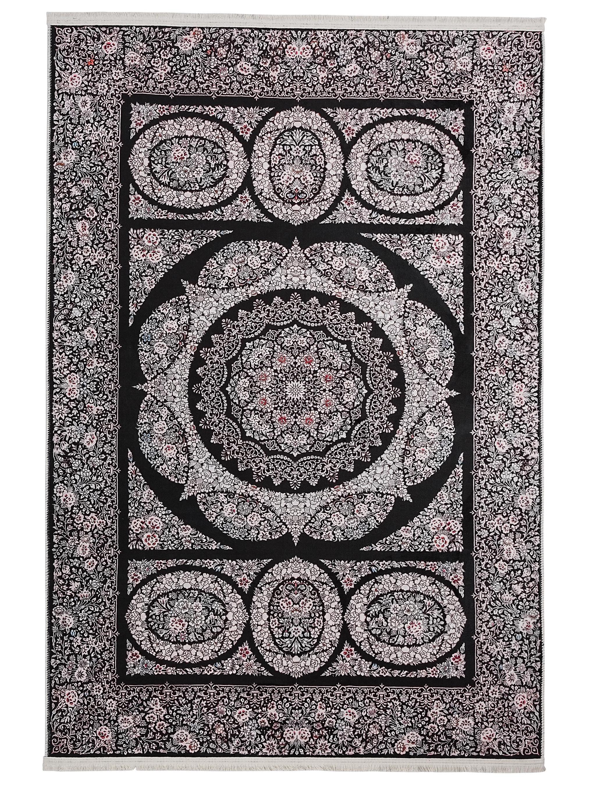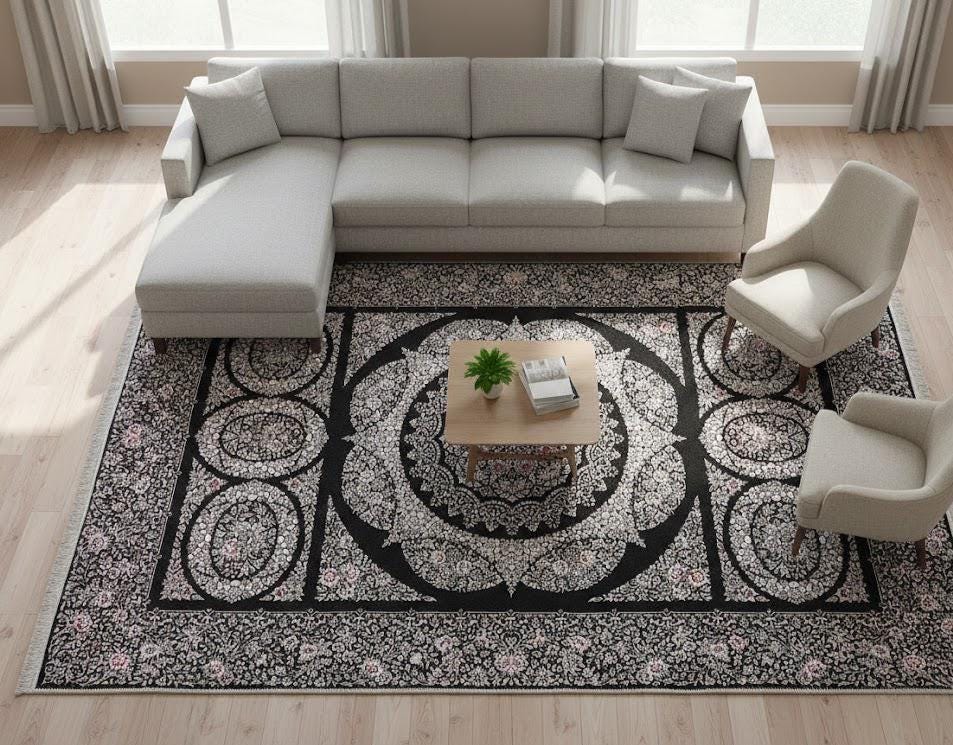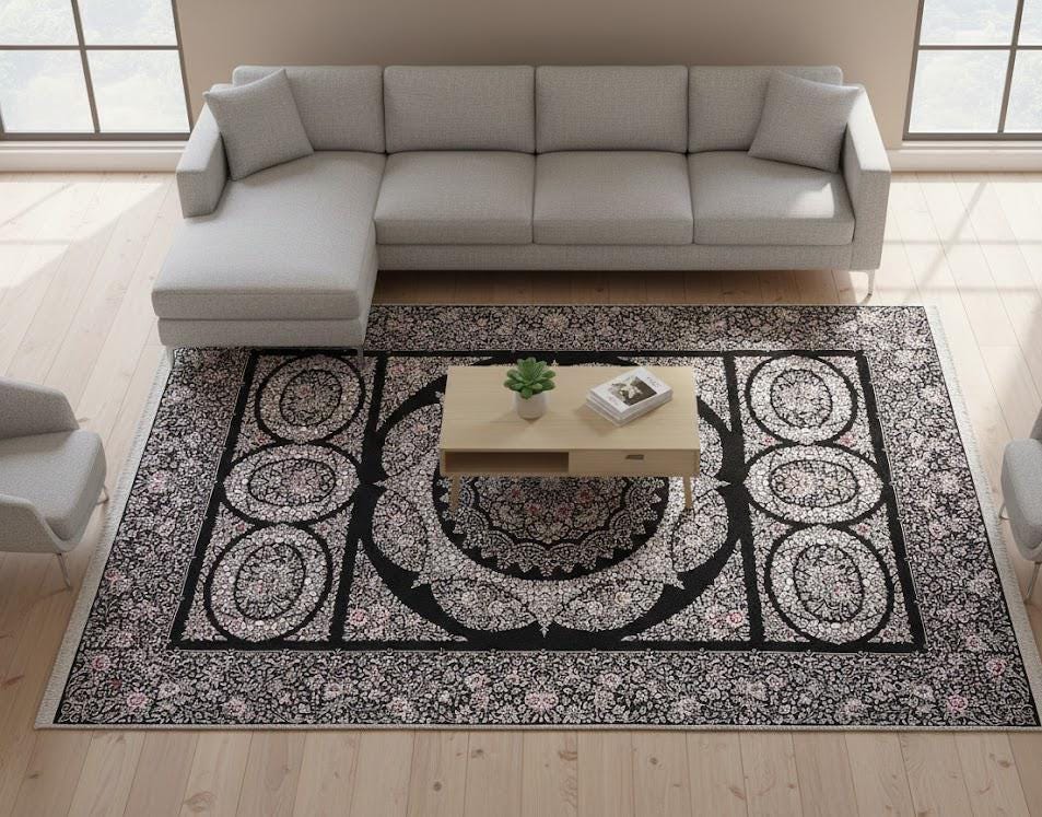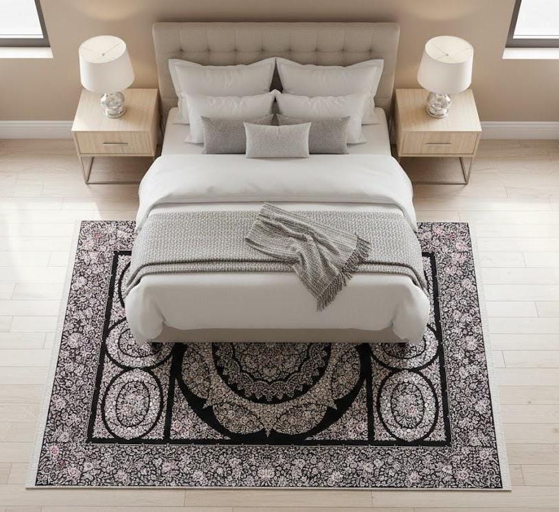 🖤 Black Floral Turkish Soft Silky Rug : 15 Sizes, Elegant Botanical Area Rugs