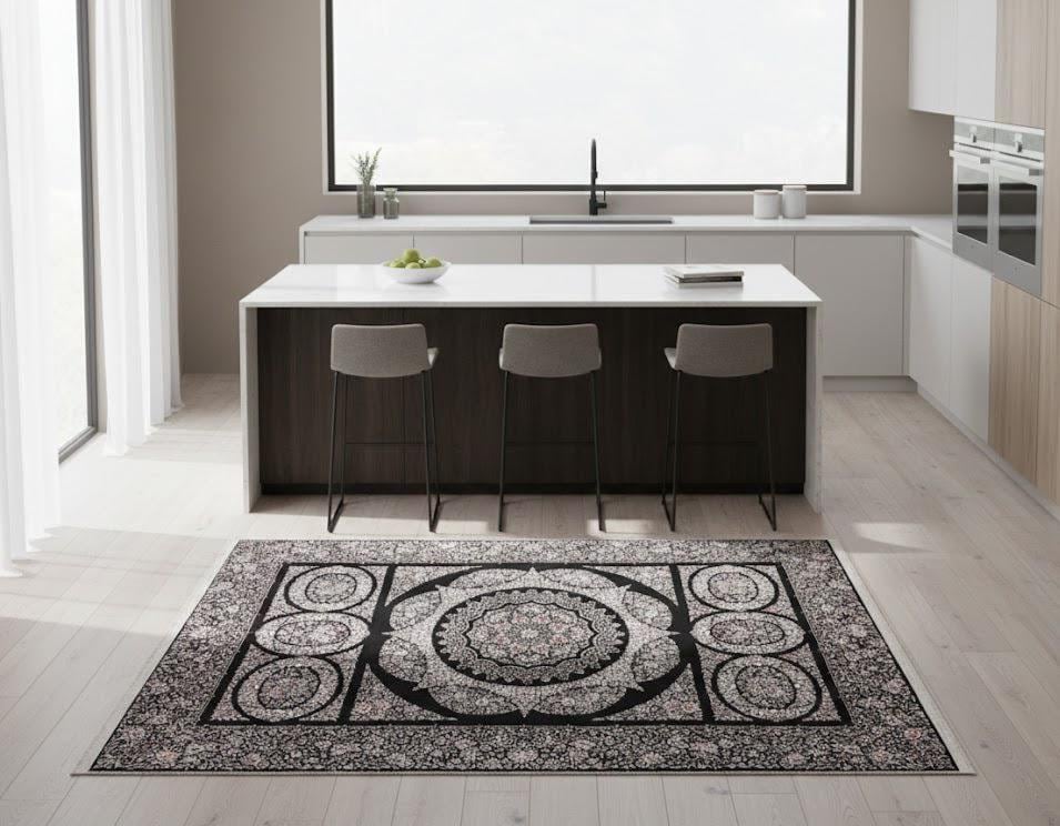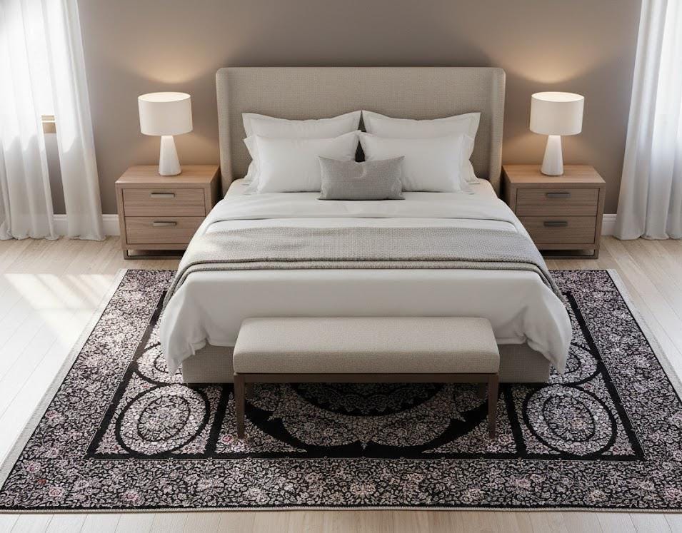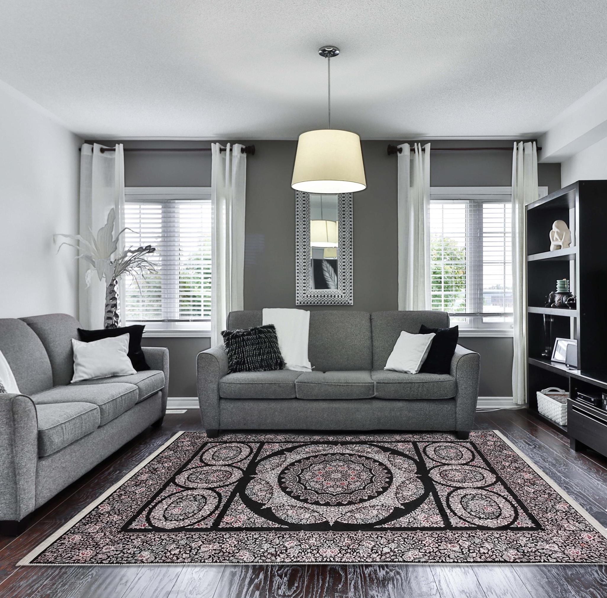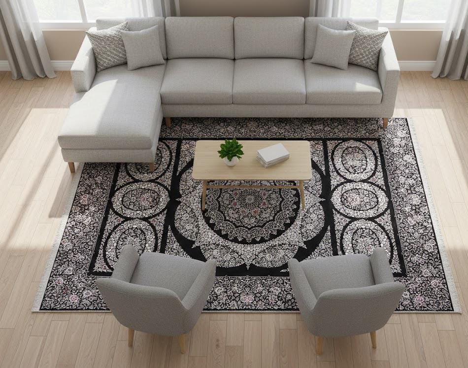 🖤 Black Floral Turkish Soft Silky Rug : 15 Sizes, Elegant Botanical Area Rugs