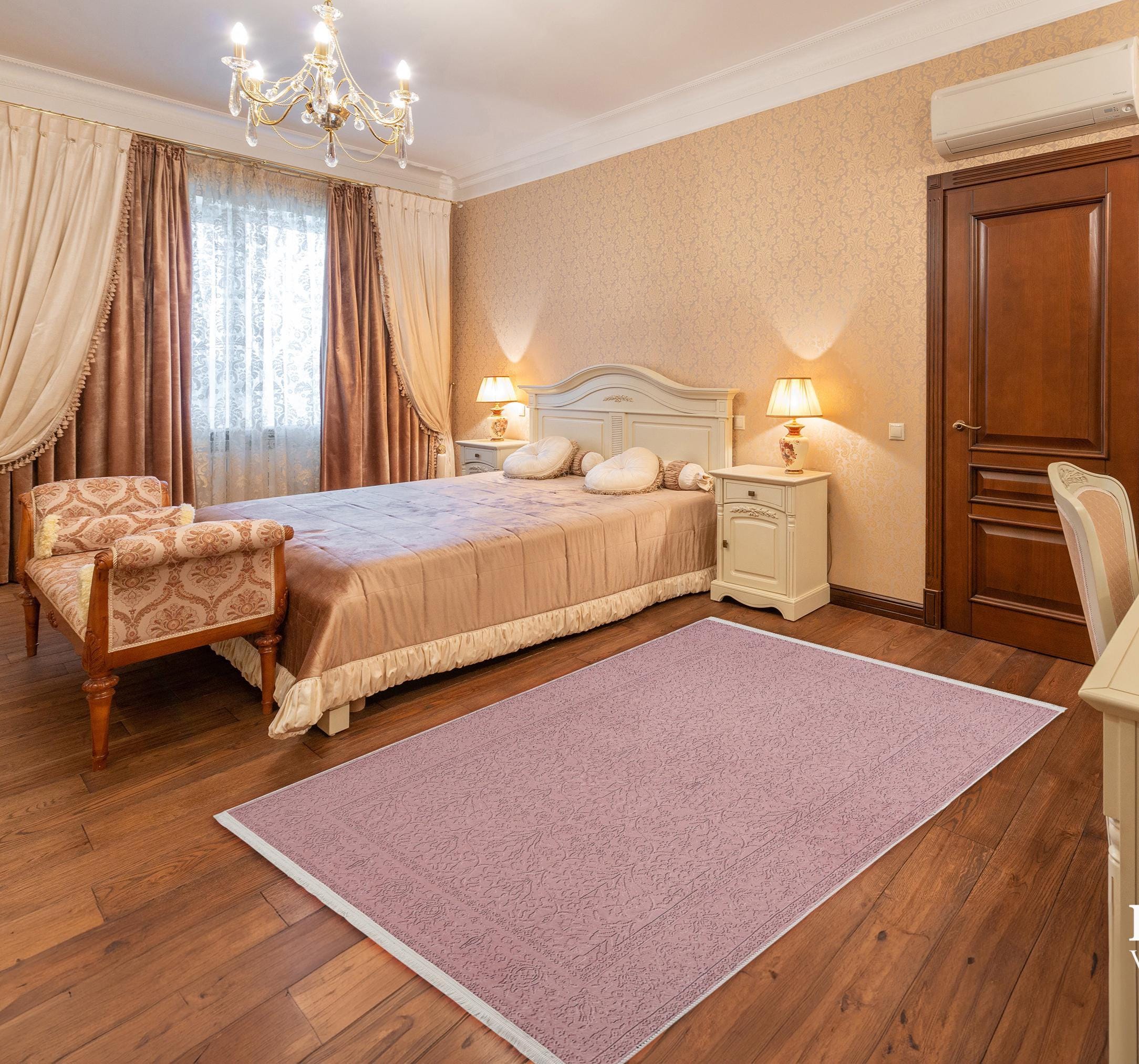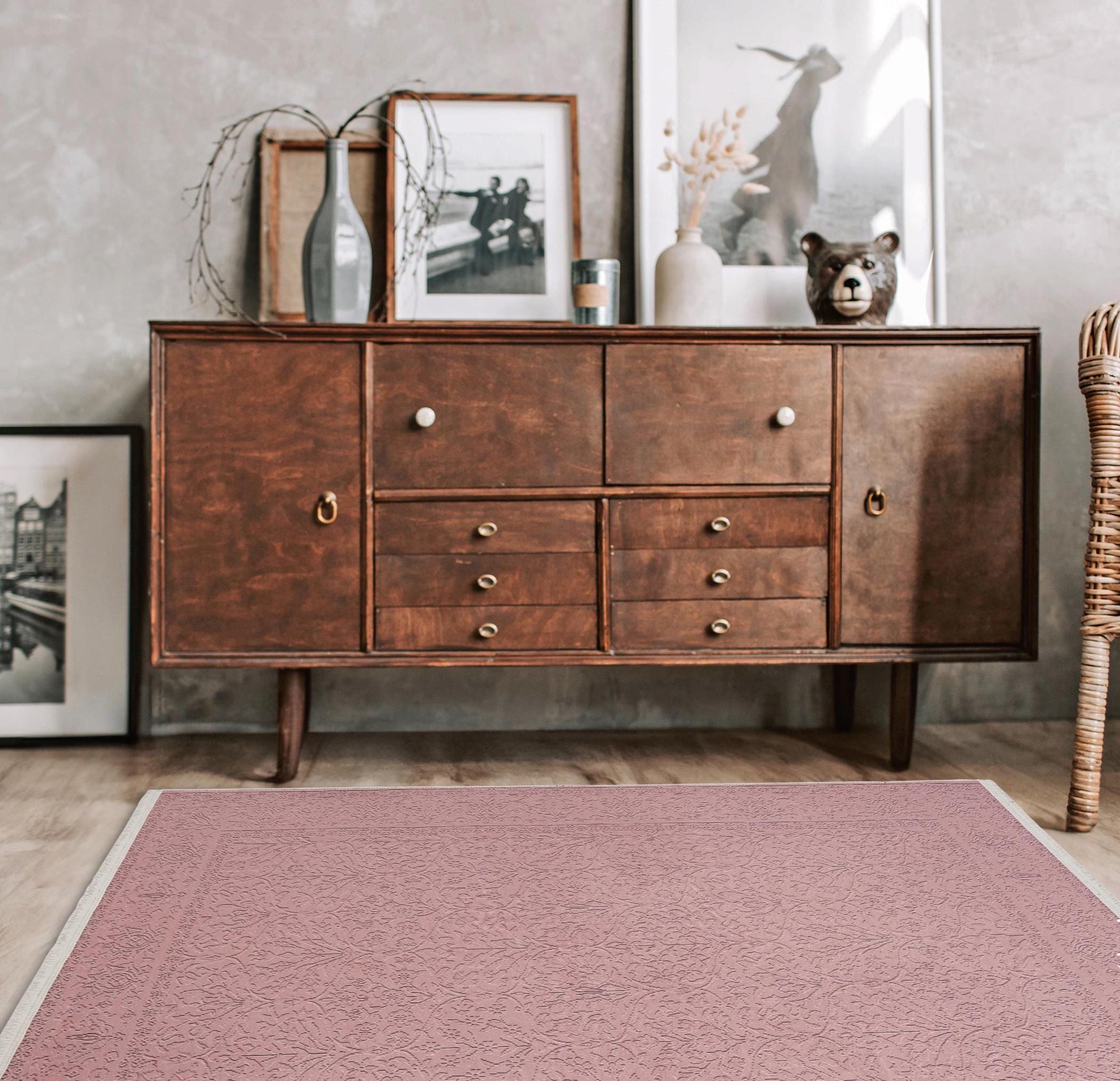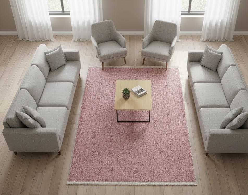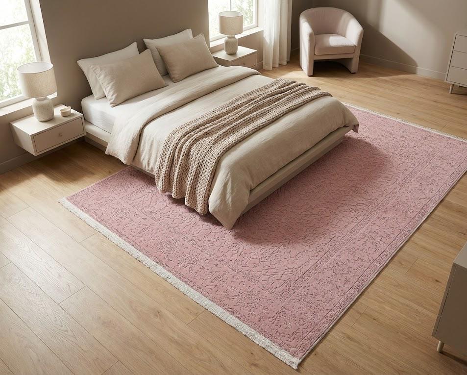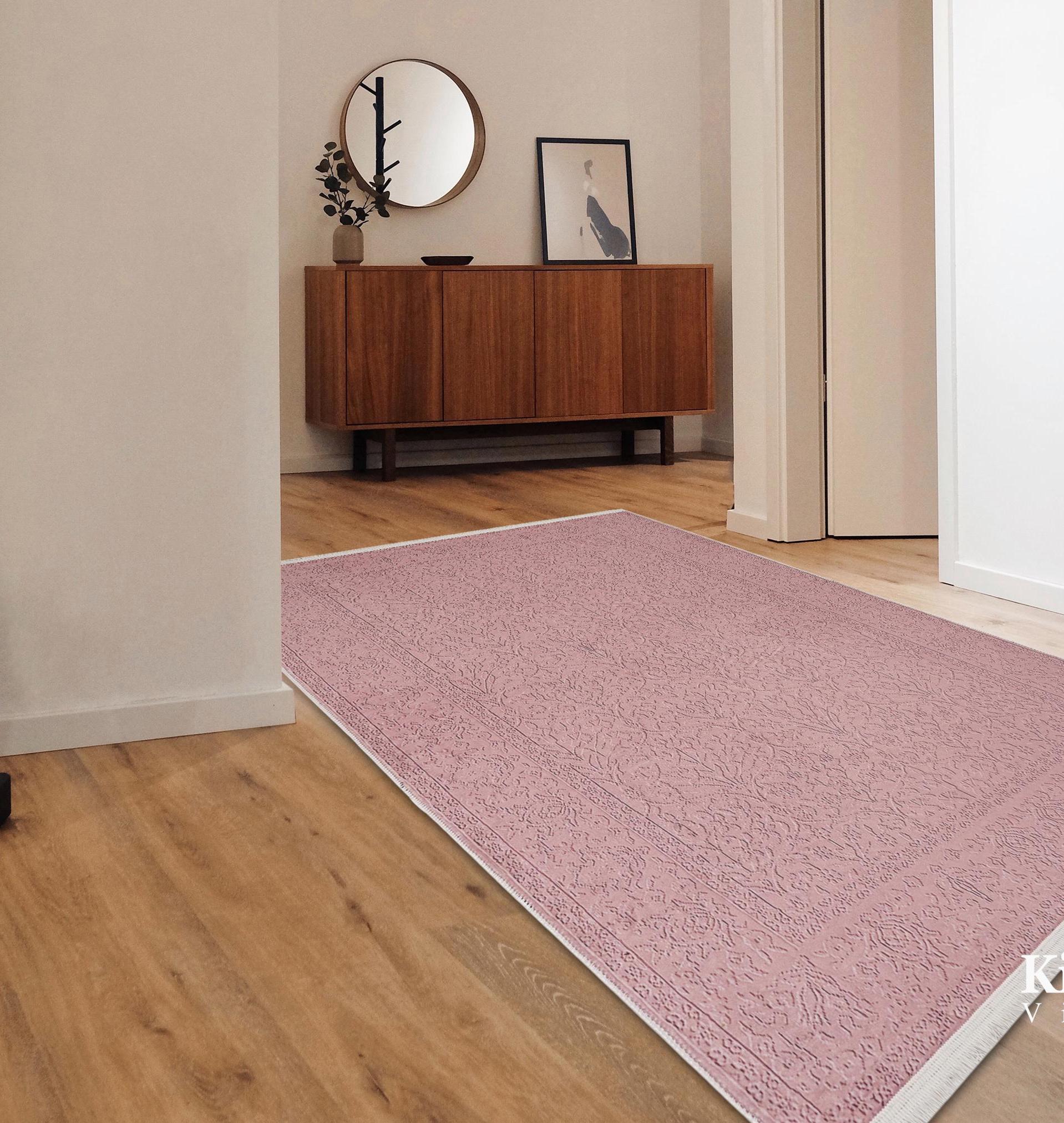 This elegant Pink Floral Turkish Rug brings a touch of modern aesthetics to your home with its Silky Soft Surface and vibrant patterns, perfect for any living space.